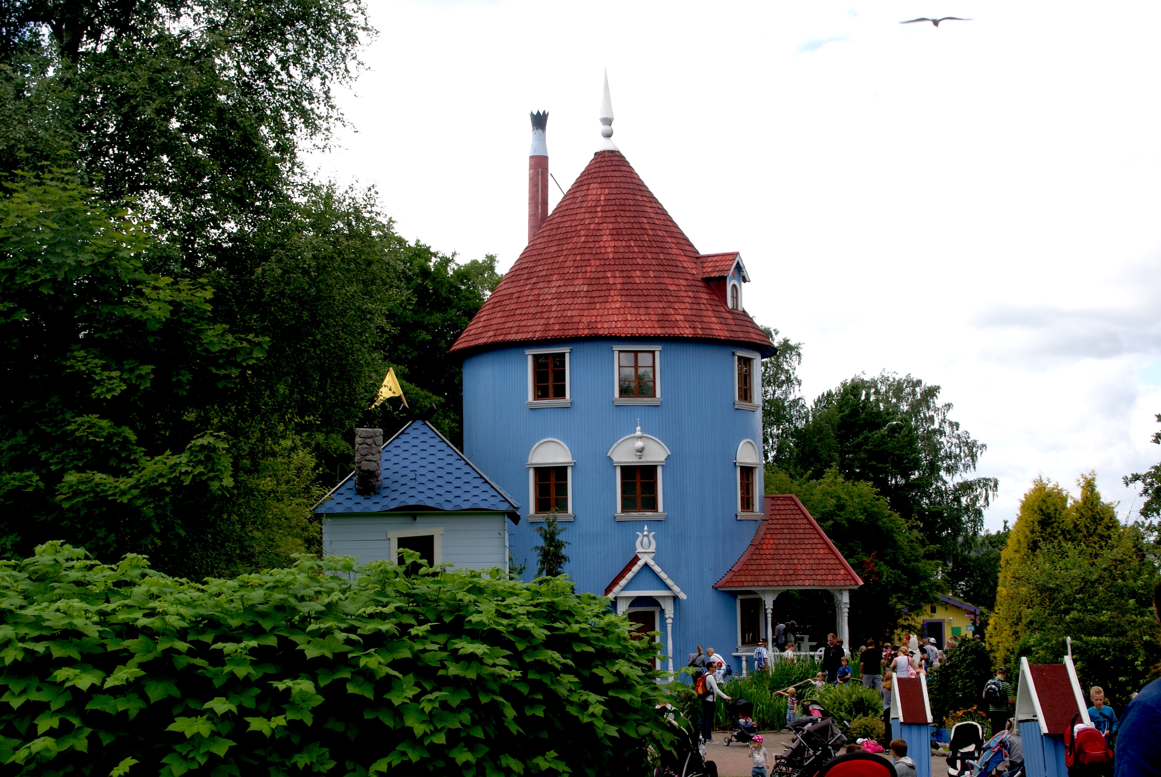 Och Mumins värld på en holme utanför är precis lika mysig med vackra små trähus i olika färger.