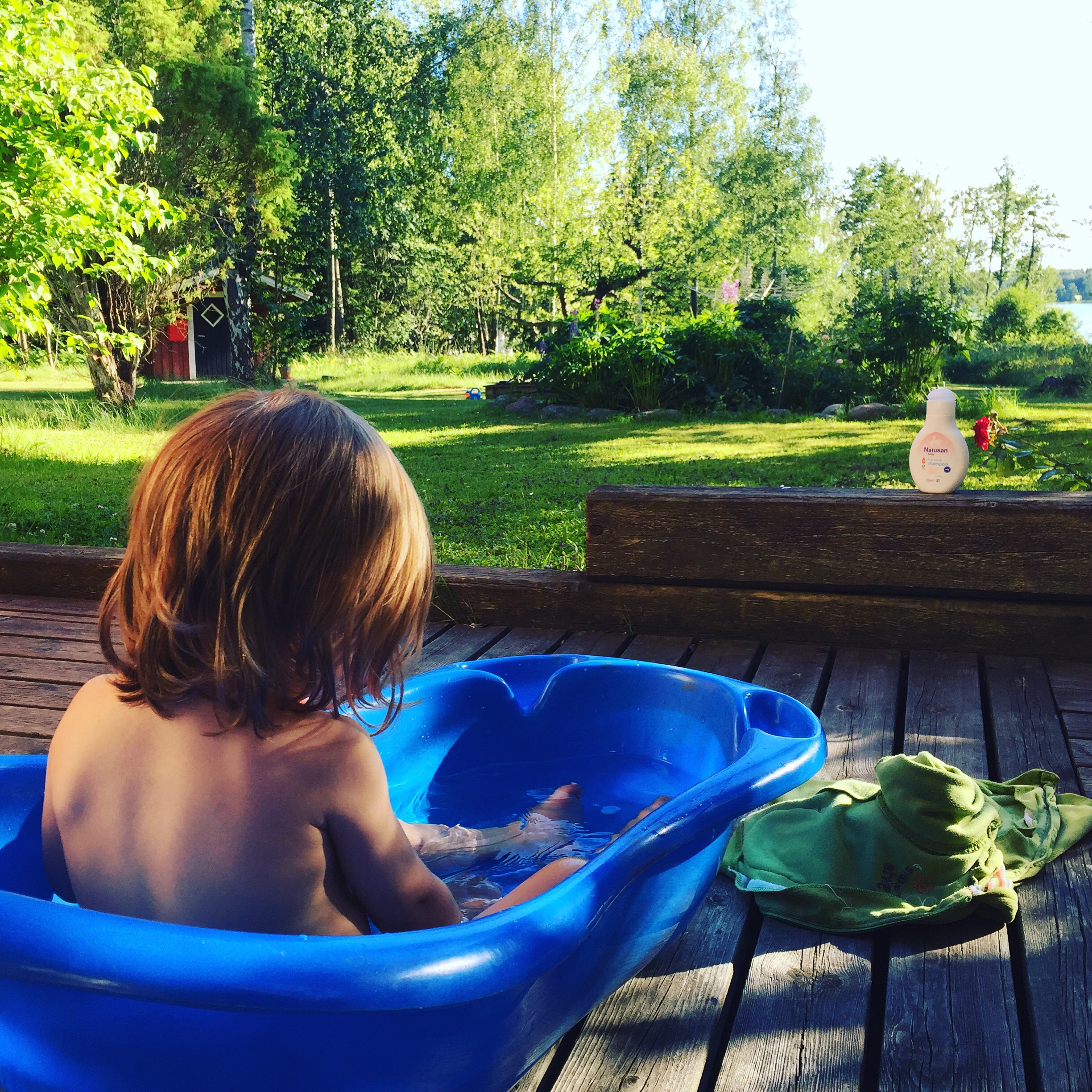 badade på kvällarna ute på altan,