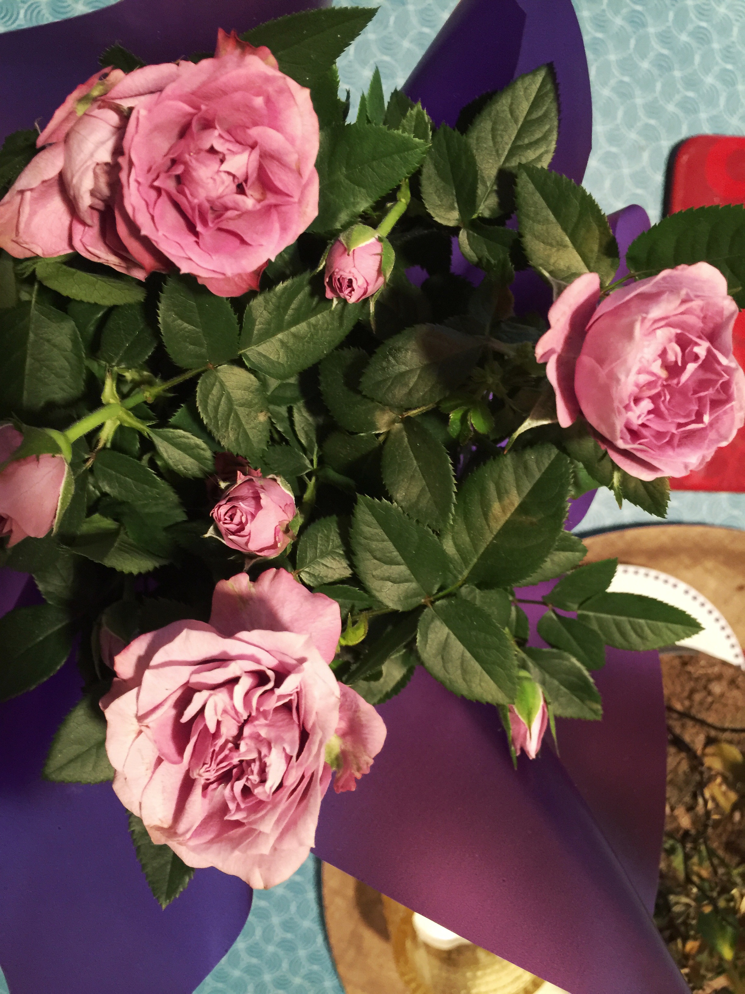 Den här rosen av Nora väntade på mig när jag klev upp efter att jag fått frukost på sängen av Juni och Edu. Så fint!