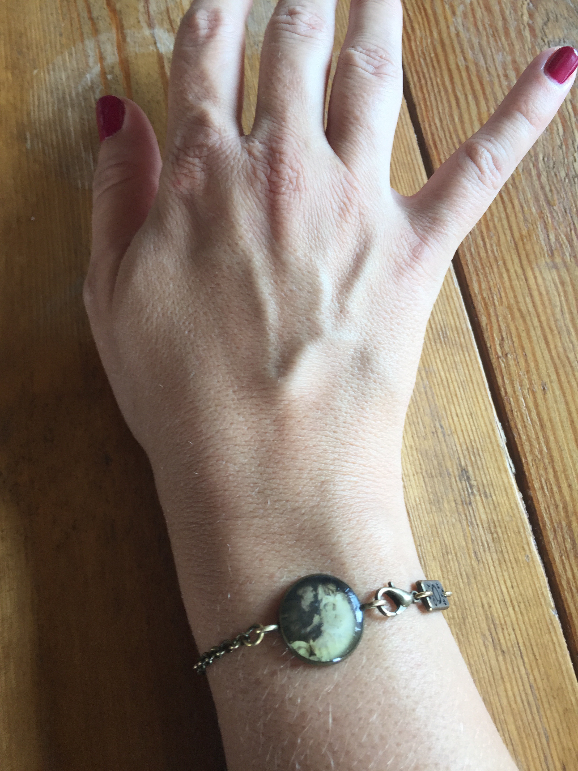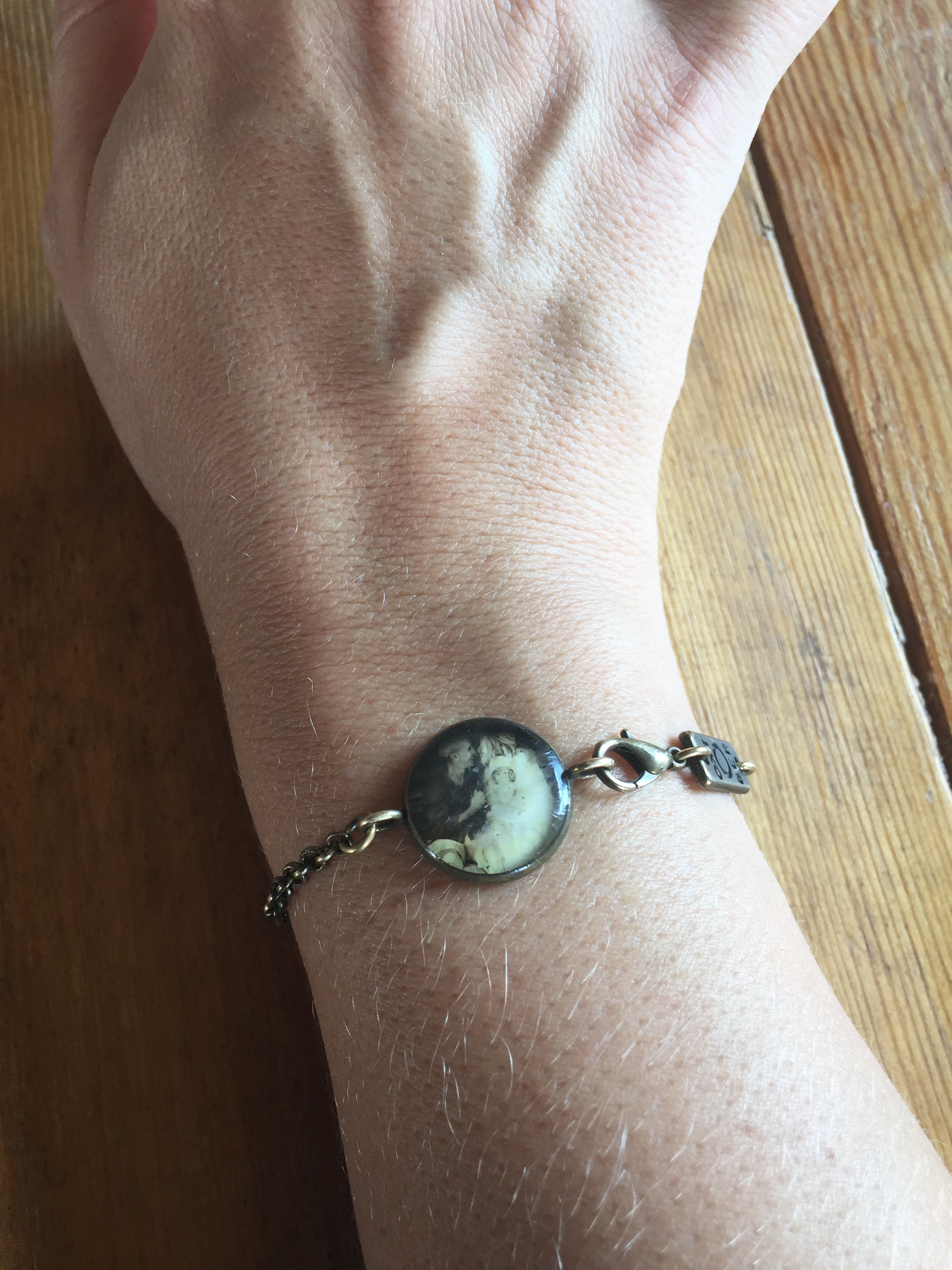 Titta vilket fint armband jag har på mig och ser ni vad det föreställer?