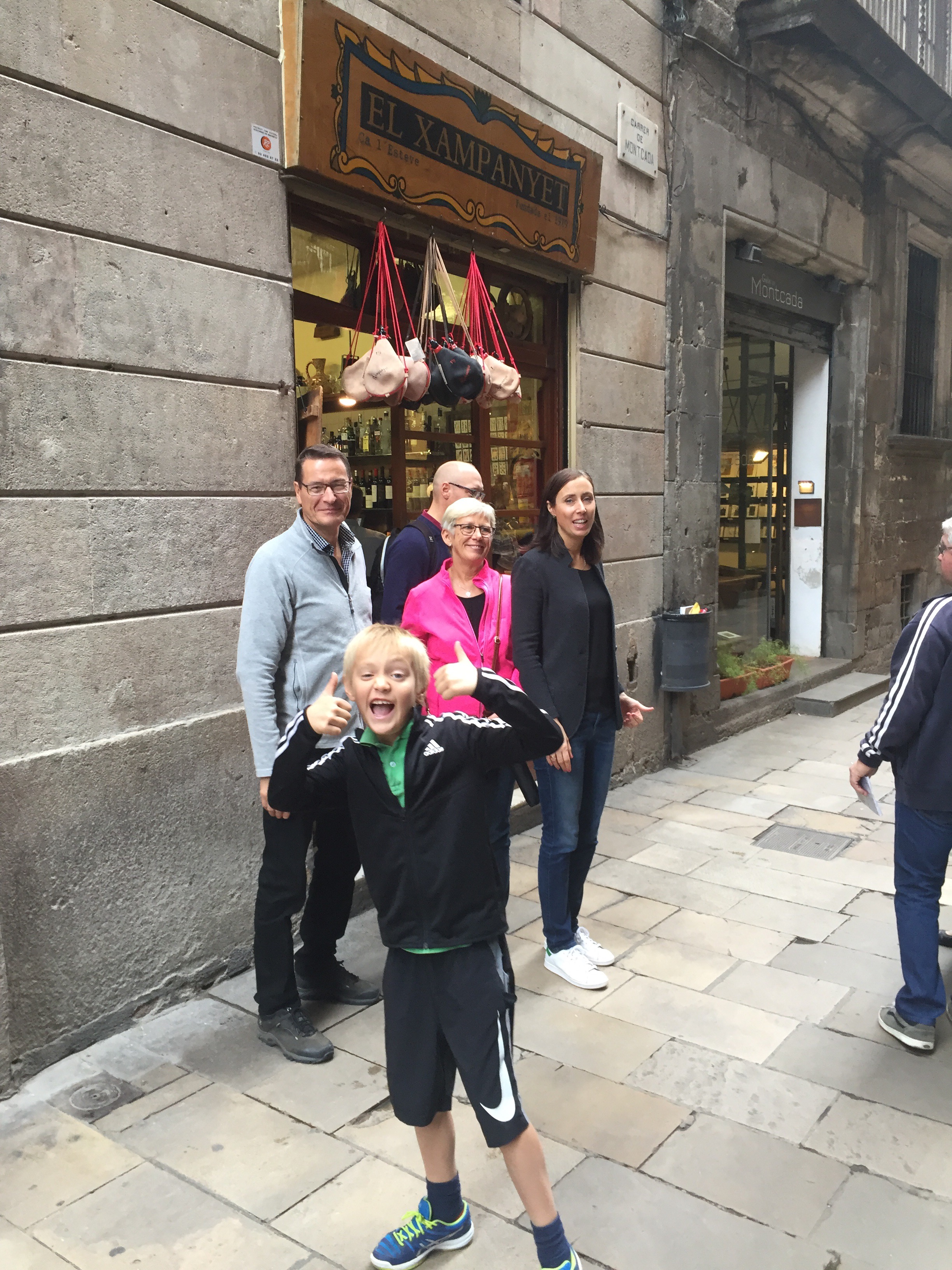 Hela familjen är med och Juni är så glad så hon bara studsar fram. Jag med! ❤️ Idag tog vi med gänget på en lång tapasrunda med ostar, cava, skinka, korvar, en massa pinxtos och sedan italiensk glass på det.