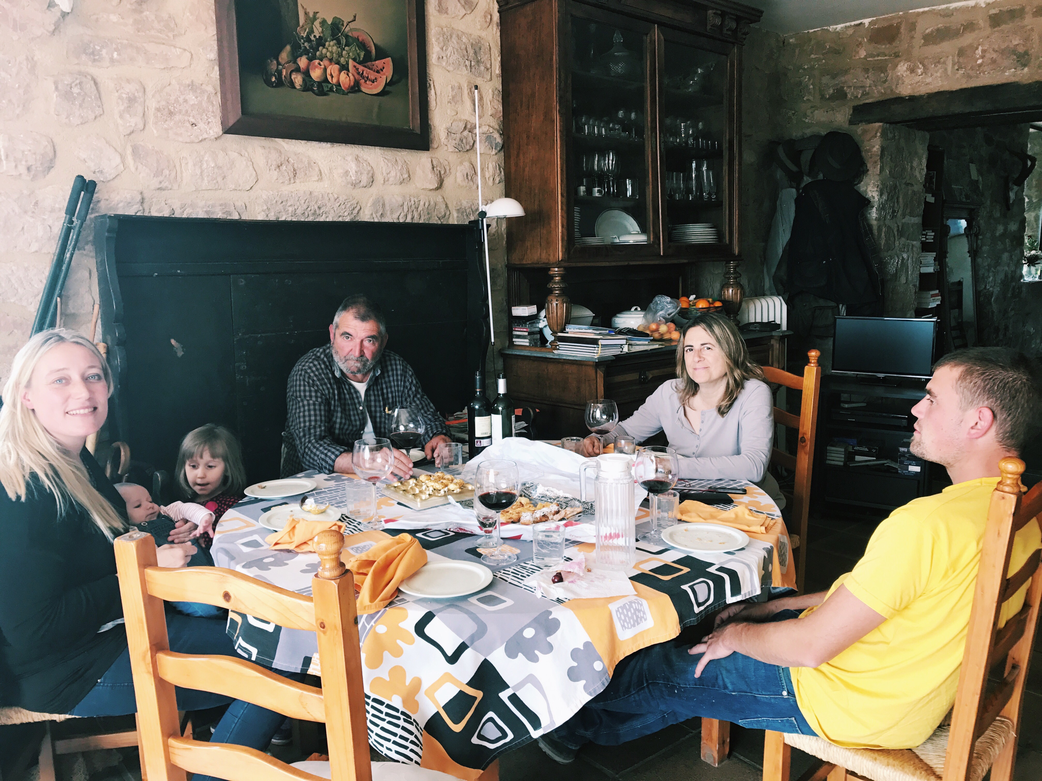 Följande dag på lördagen packade jag och Edu barnen in i bilen och körde upp i bergen ungefär en timme ifrån stan. Där bor Edus pappas kompis Joan och vi blev bjudna på en lång lunch med ost, korvar, skinka, cannelloni och grillat lamm. Så mysigt och gott.