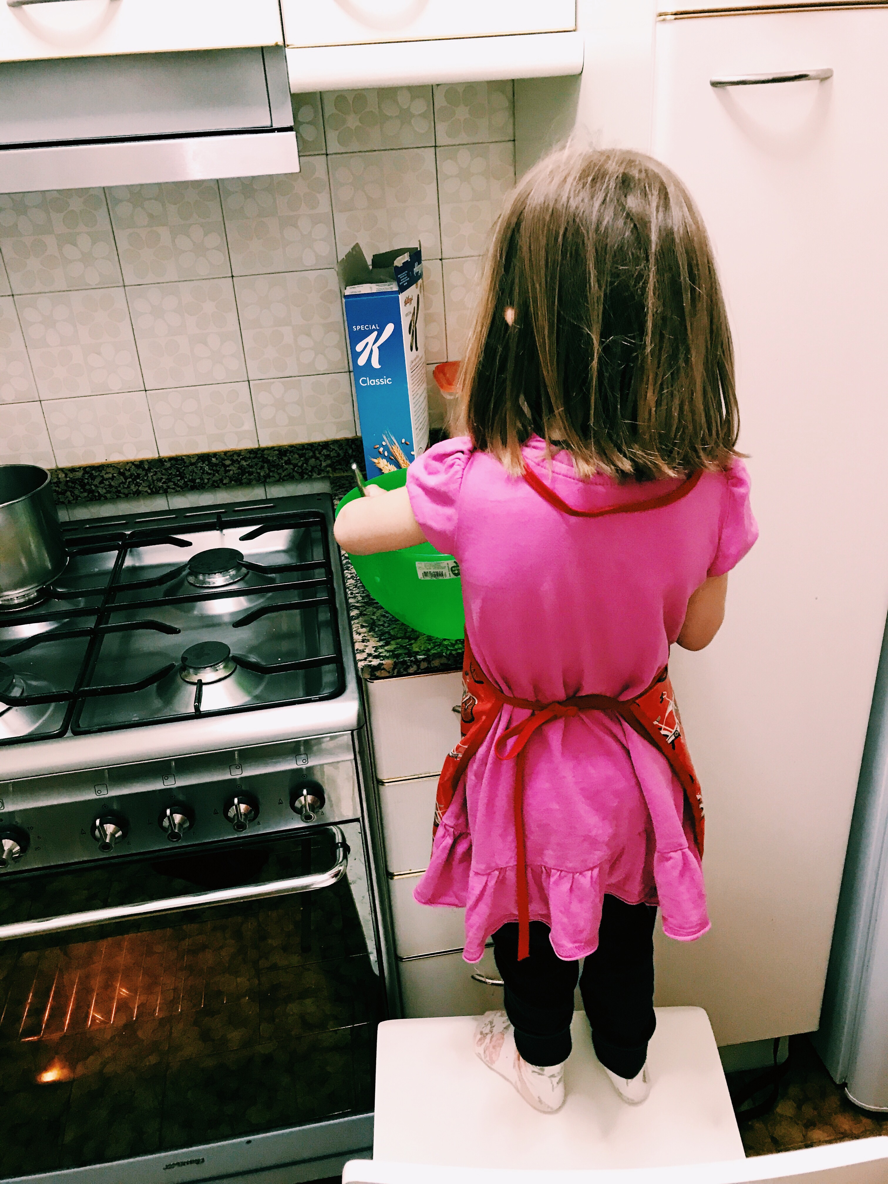 Men först några glimtar från förra veckan. Här står Juni och jag och bakar kolasnittar