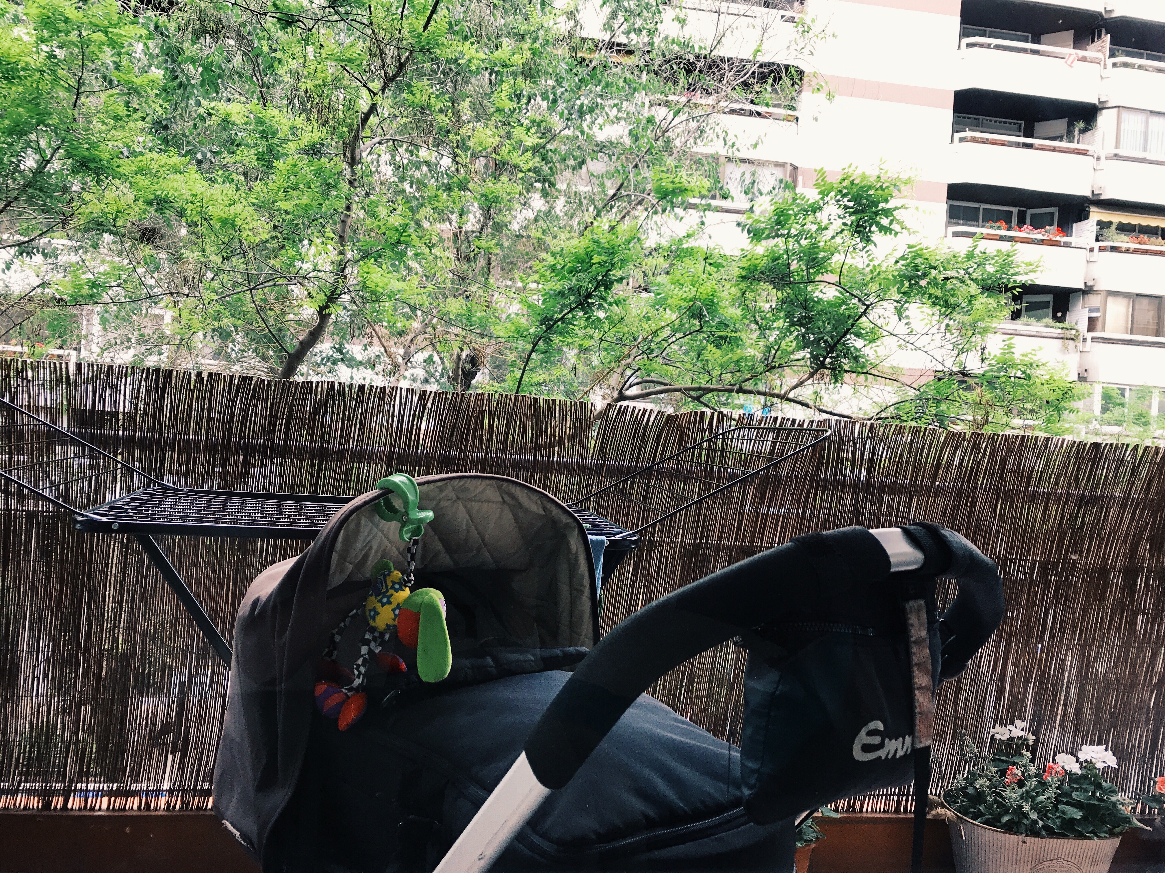 Medan Hjalmar sover i vagnen ute på balkongen.