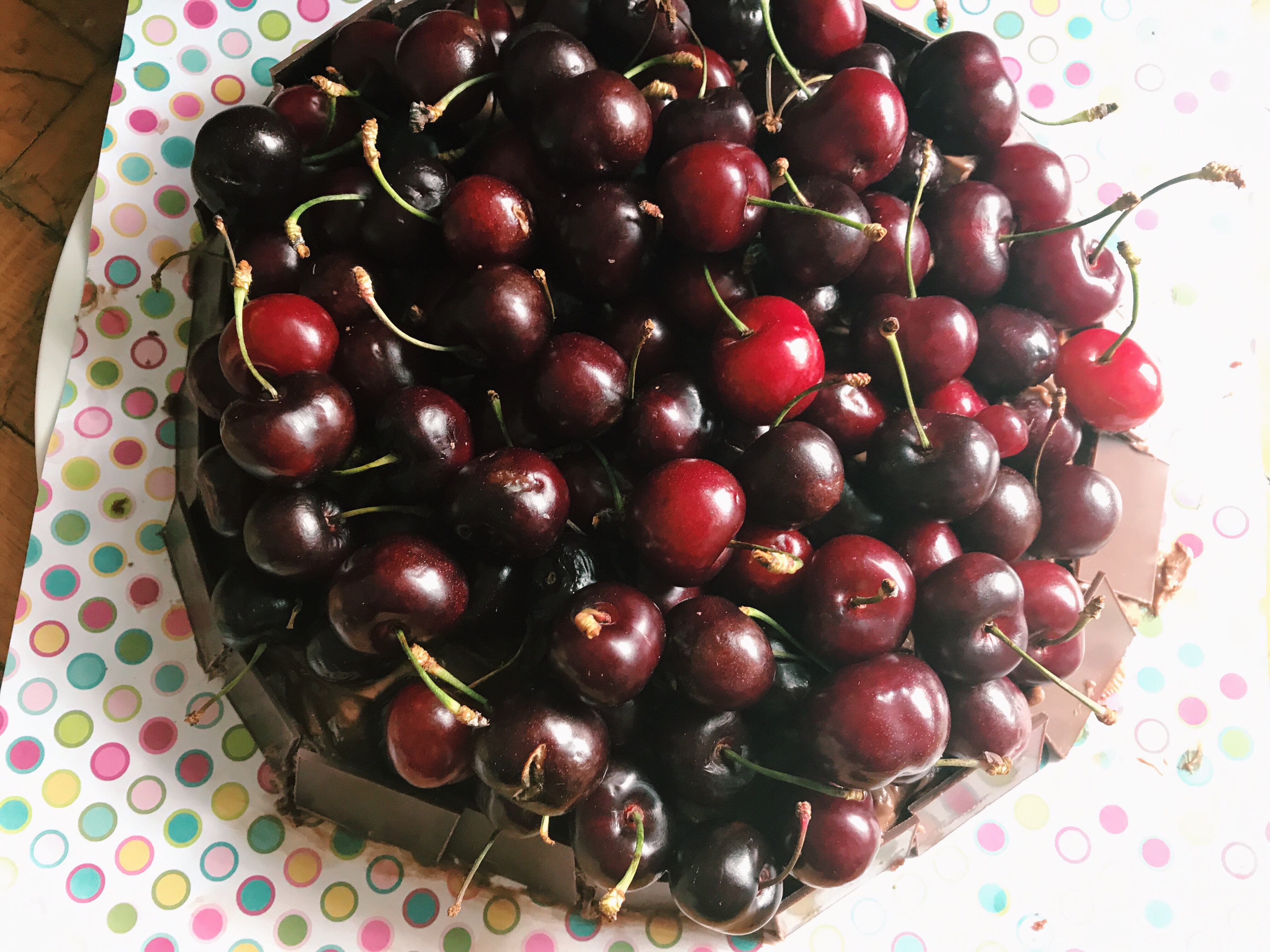 Sedan lagade jag denna lite mer vuxna tårta med tanke på alla föräldrar. Jag älskar kombinationen körsbär och choklad och eftersom det är säsong på dessa vackra bär just nu så passade det ju perfekt!