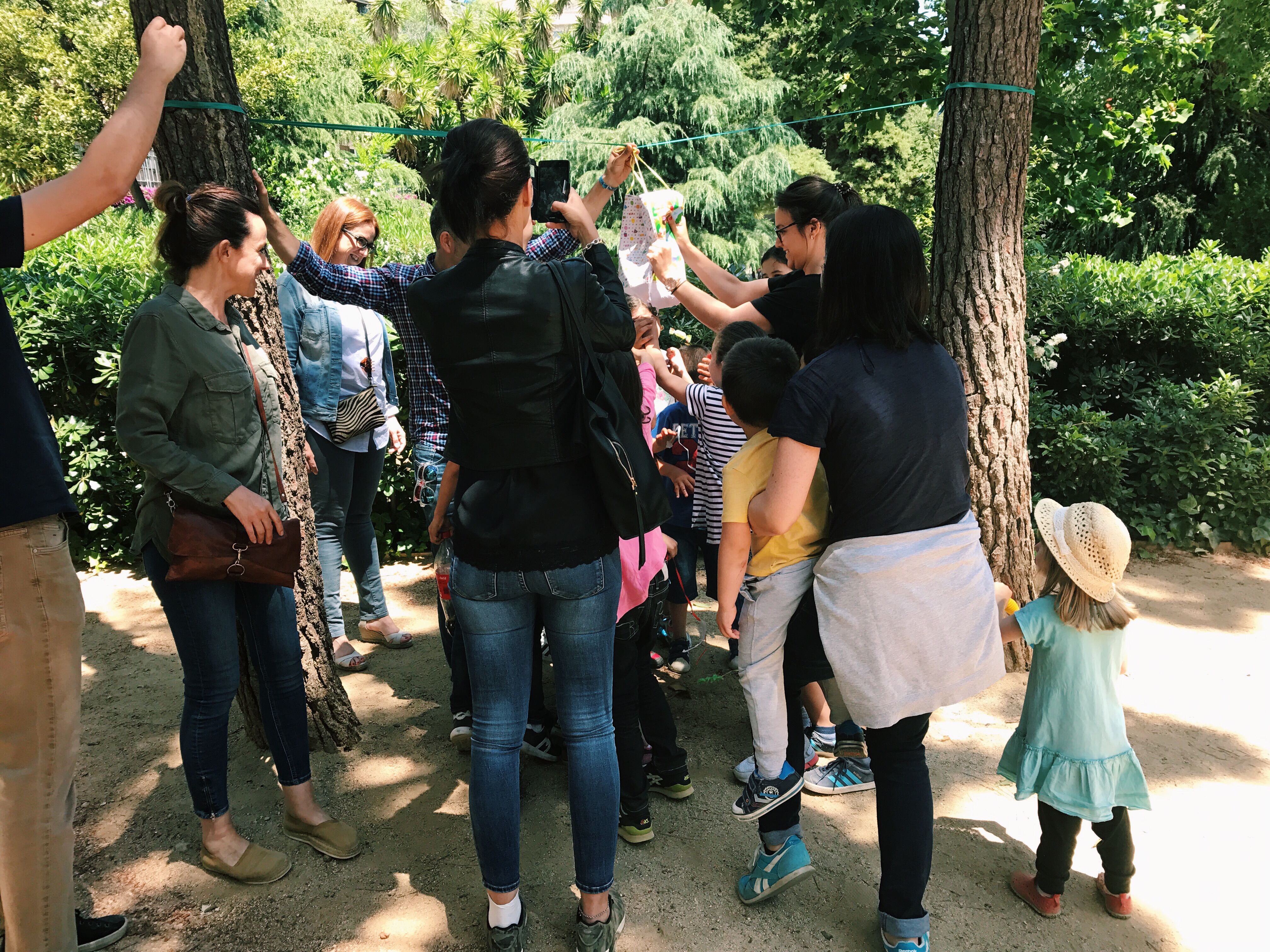 Efter tårtorna blev det ännu mer godis när barnen slog på en piñata som Noemi hängt upp i ett träd. Det är vanligt på barnkalas här. En färgglad påse fyllt med godis eller små roliga saker som barnen sedan slår på med pinnar och käppar