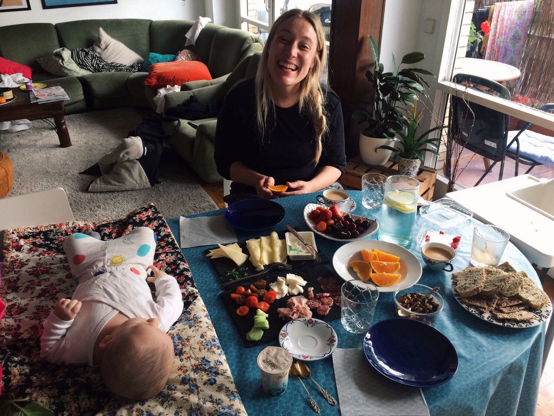 Som ni ser har varken min förkärlek för frukostar eller kuddarna i soffan ändrats så mycket. Inte heller frisyren så mycket eller min trötta jag-har-inte-sovit-ordentligt-på-tre-månader-uppsyn. Det är bara bebisen som är utbytt och antalet rynkor kring ögonen som blivit fler. 💋