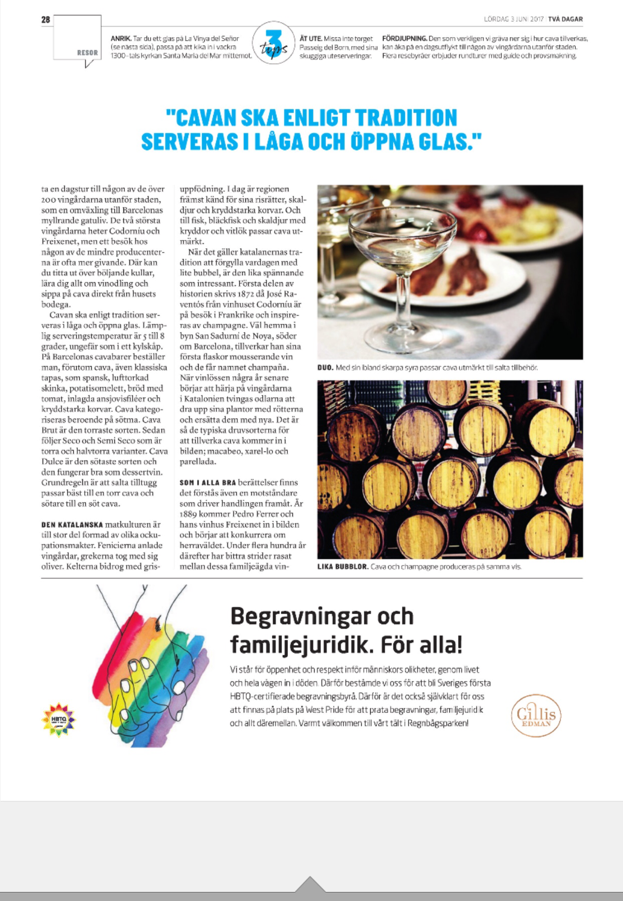 Nu kan alla som är sugna på cava och Barcelona lära er allt om cava i lördagens nummer av Göteborgs-posten. Där skriver jag om historien och stadens intima förhållande till den bubblande drycken men jag delar även med mig av mina favoritbarer när det kommer till cava.