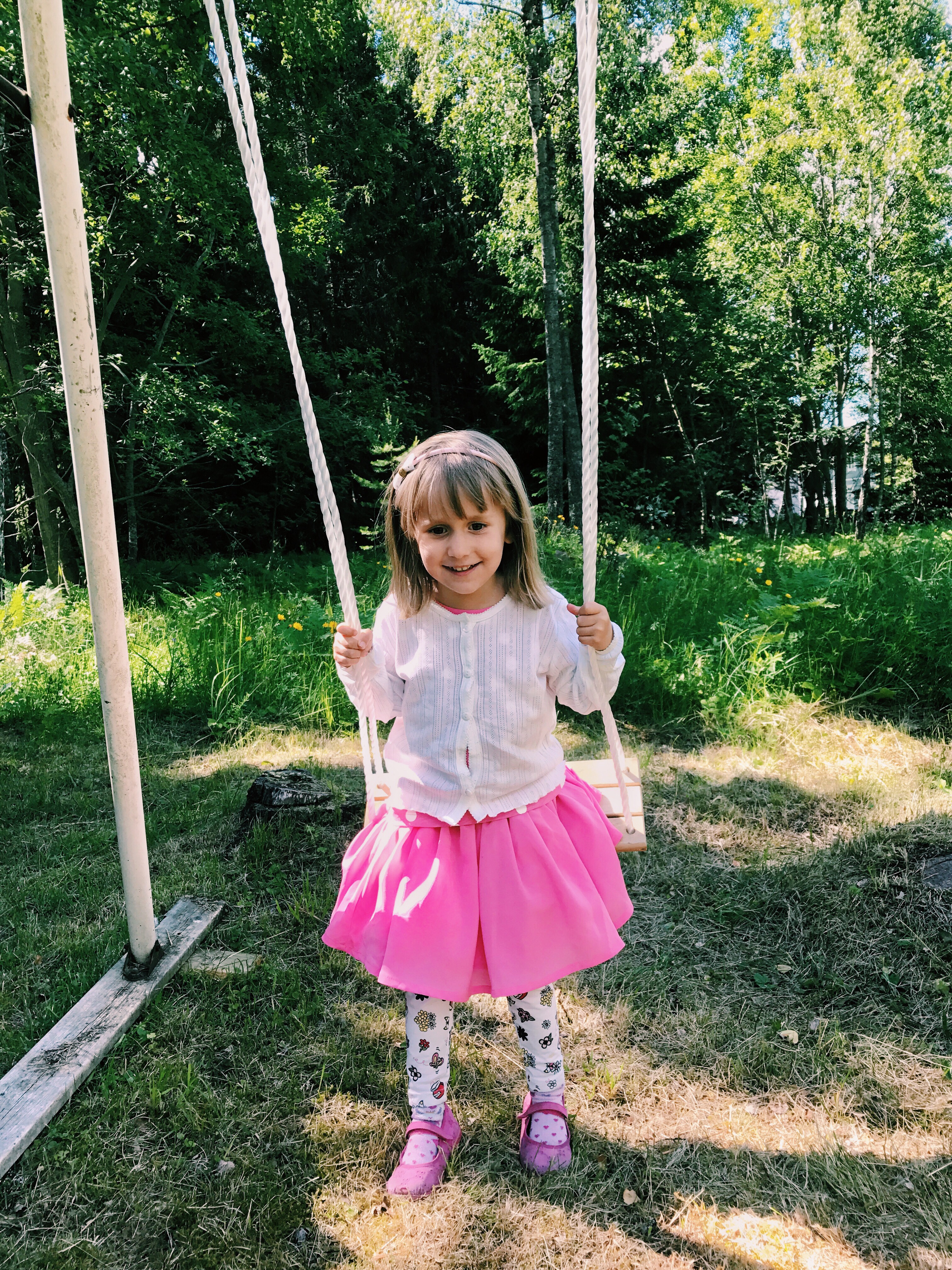 Och här är hon vår härliga 3-åring i kläder hon fått välja själv. Det viktigaste var kjolen. ”Danskjol som Malva”, skulle det vara.