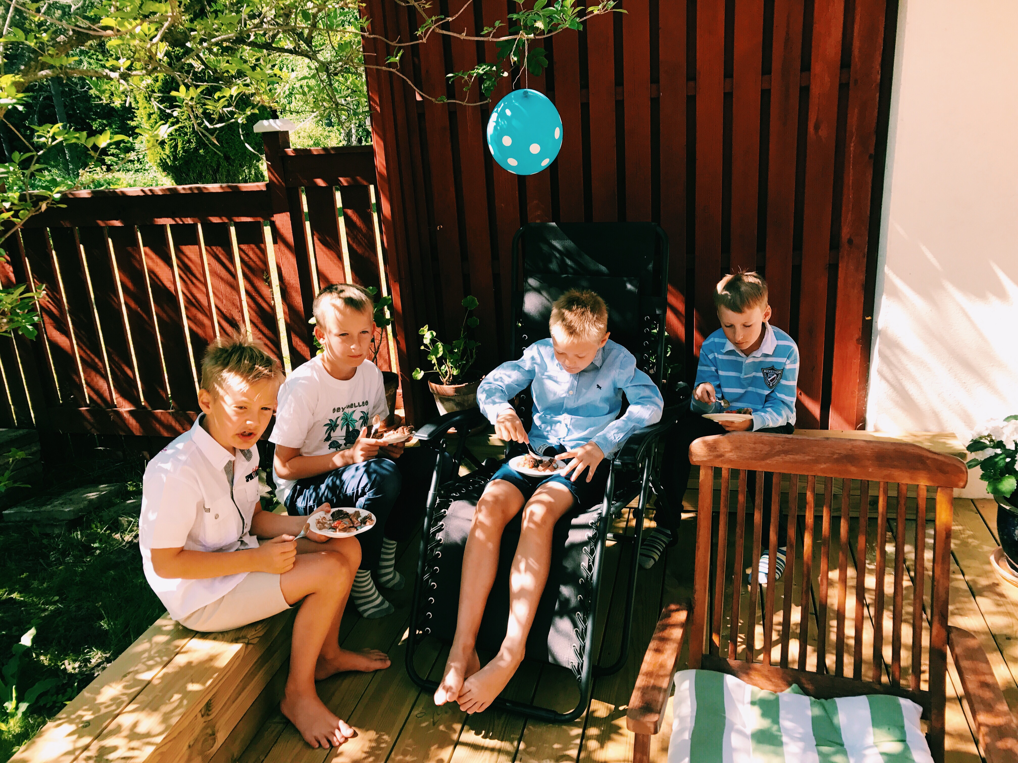 Fyra av Junis kusiner: Melker, Otto, Olle och Axel. Tårtgänget!