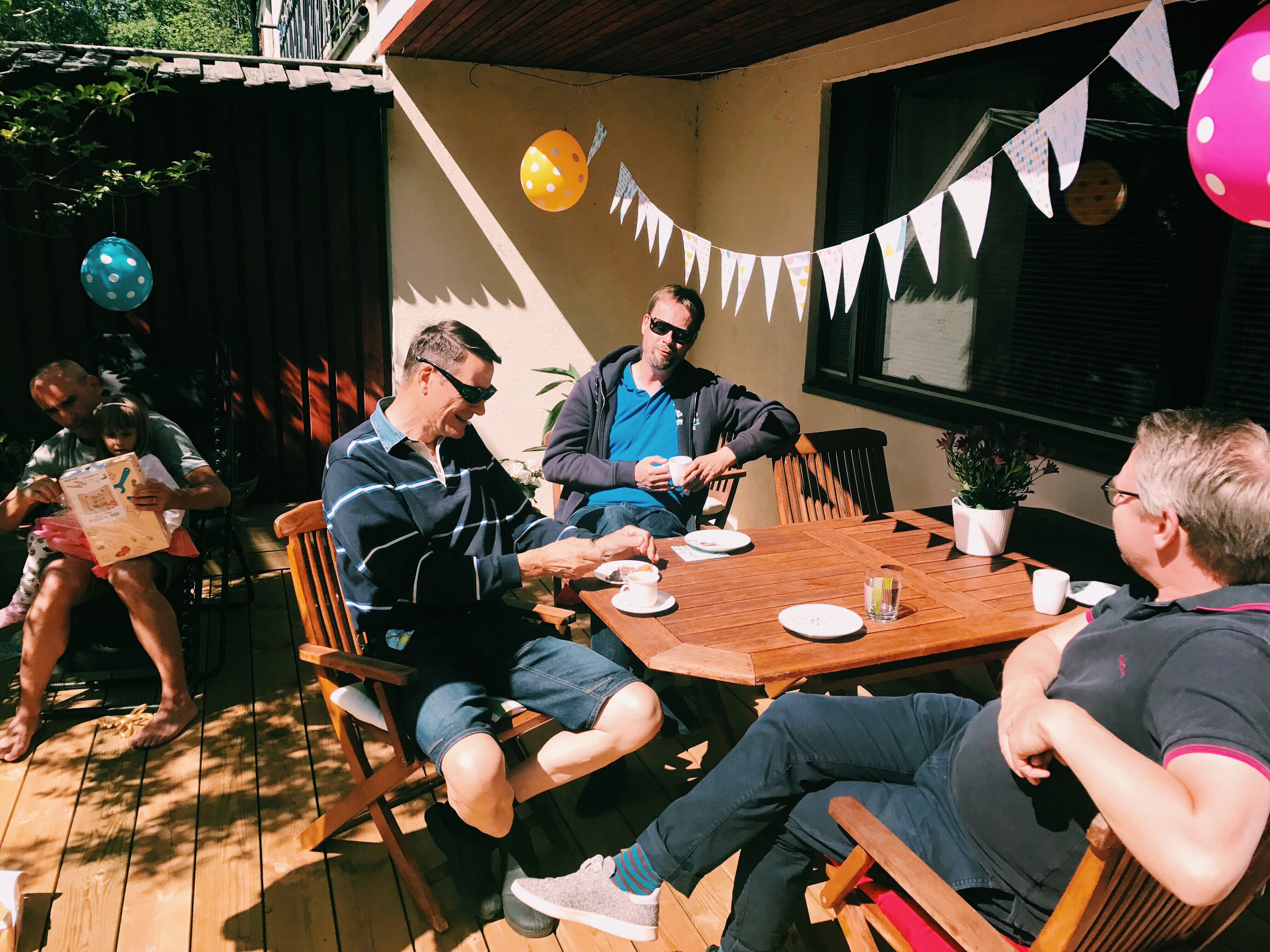 Och så drog kalaset igång! Jag hade pyntat med ballonger och vimplar på mamma och pappas altan och bjudit in både stora och små vänner och alla syskon och kusiner så klart!