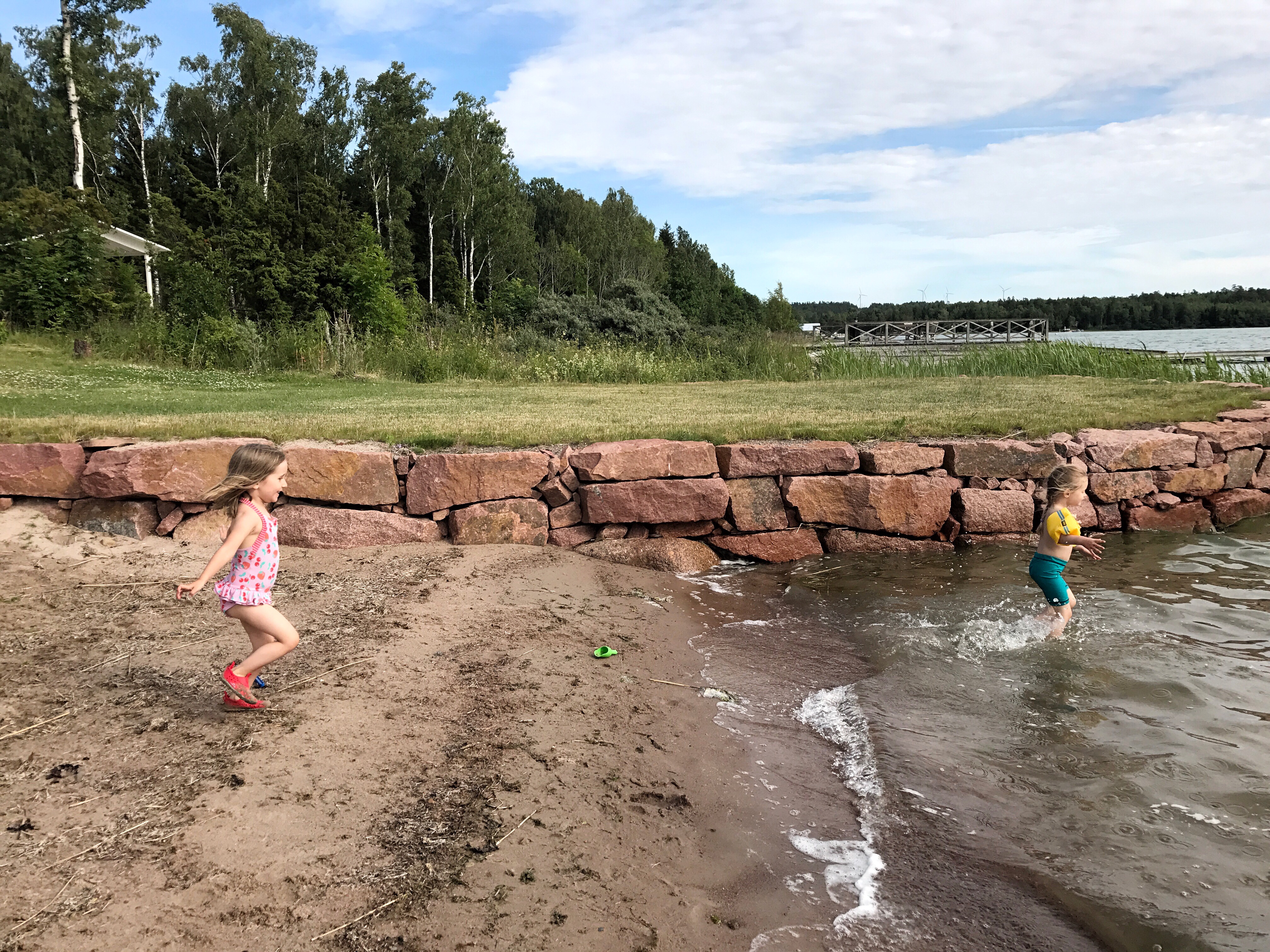 Juni och Mirjam sprang i vattenkanten, plaskade