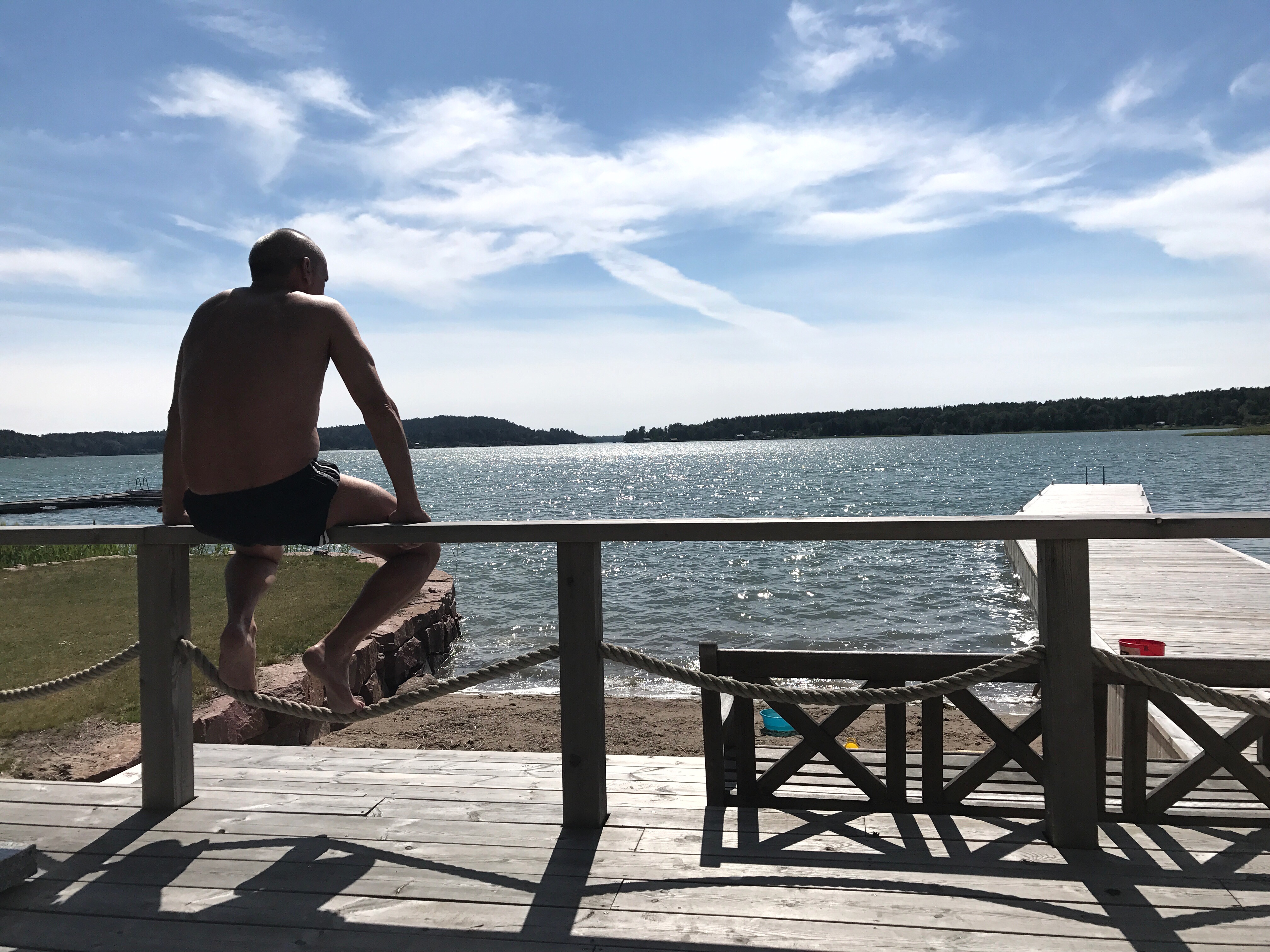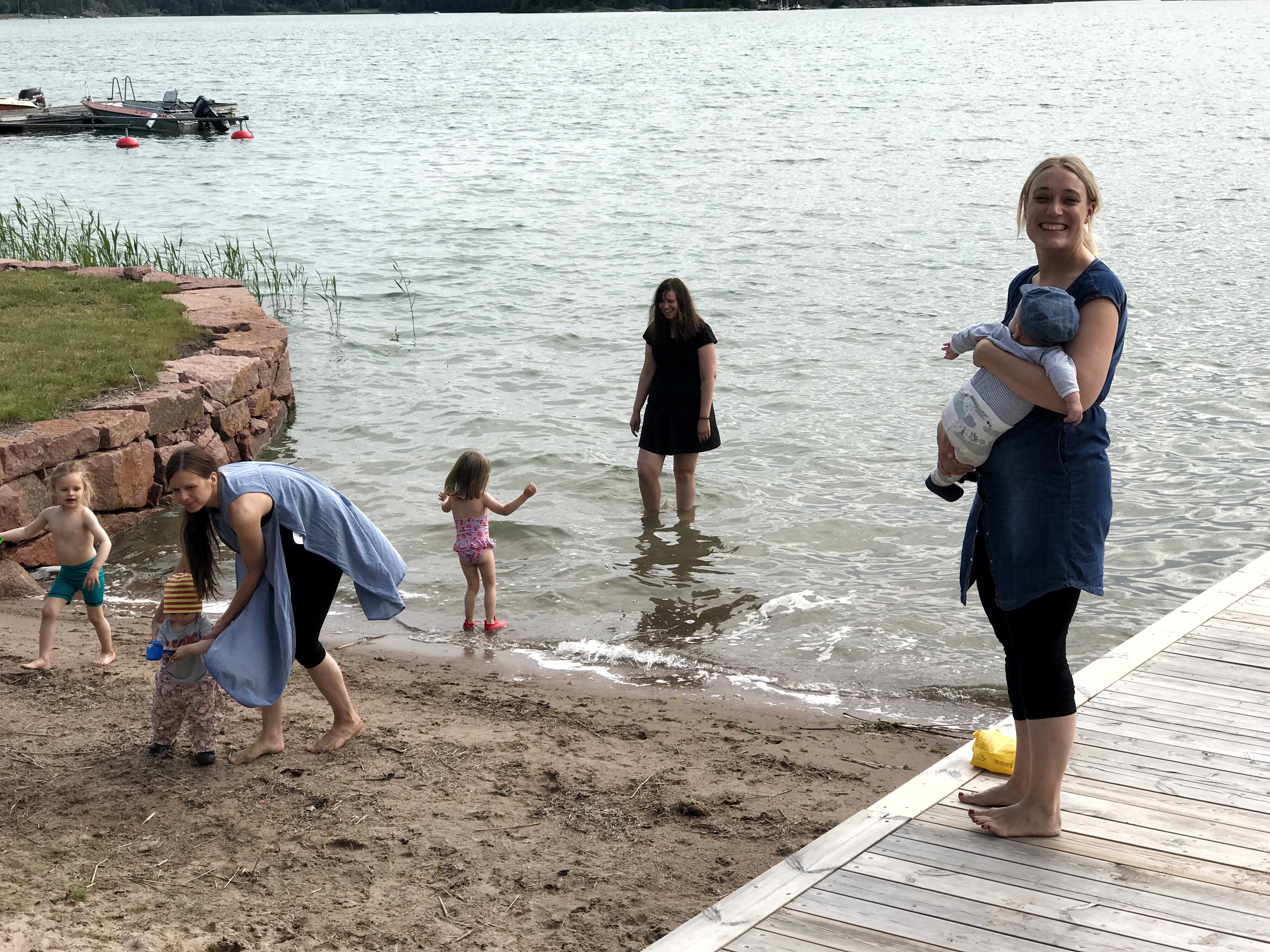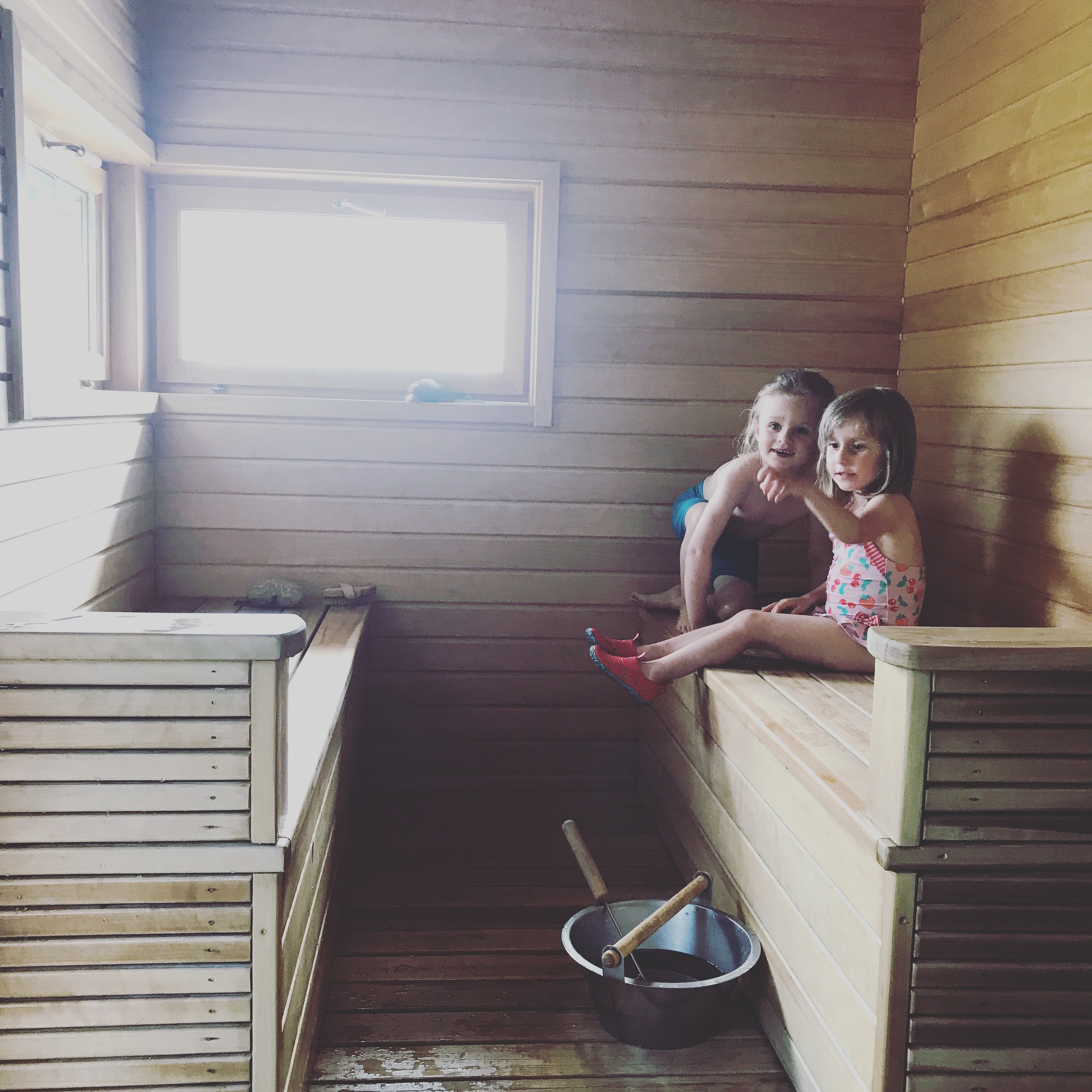 och gick sedan in i bastun för att värma sig. För mig är det verkligen sommar att få bada bastu på det viset. När vi var små brukade jag och mina systrar och kusiner göra det dagarna i ända så det var så nostalgiskt att nu se Juni springa där fram och tillbaka. Bäst av allt är att då spelar det ingen roll om det är varmt eller kallt ute. Det är sommar ändå.