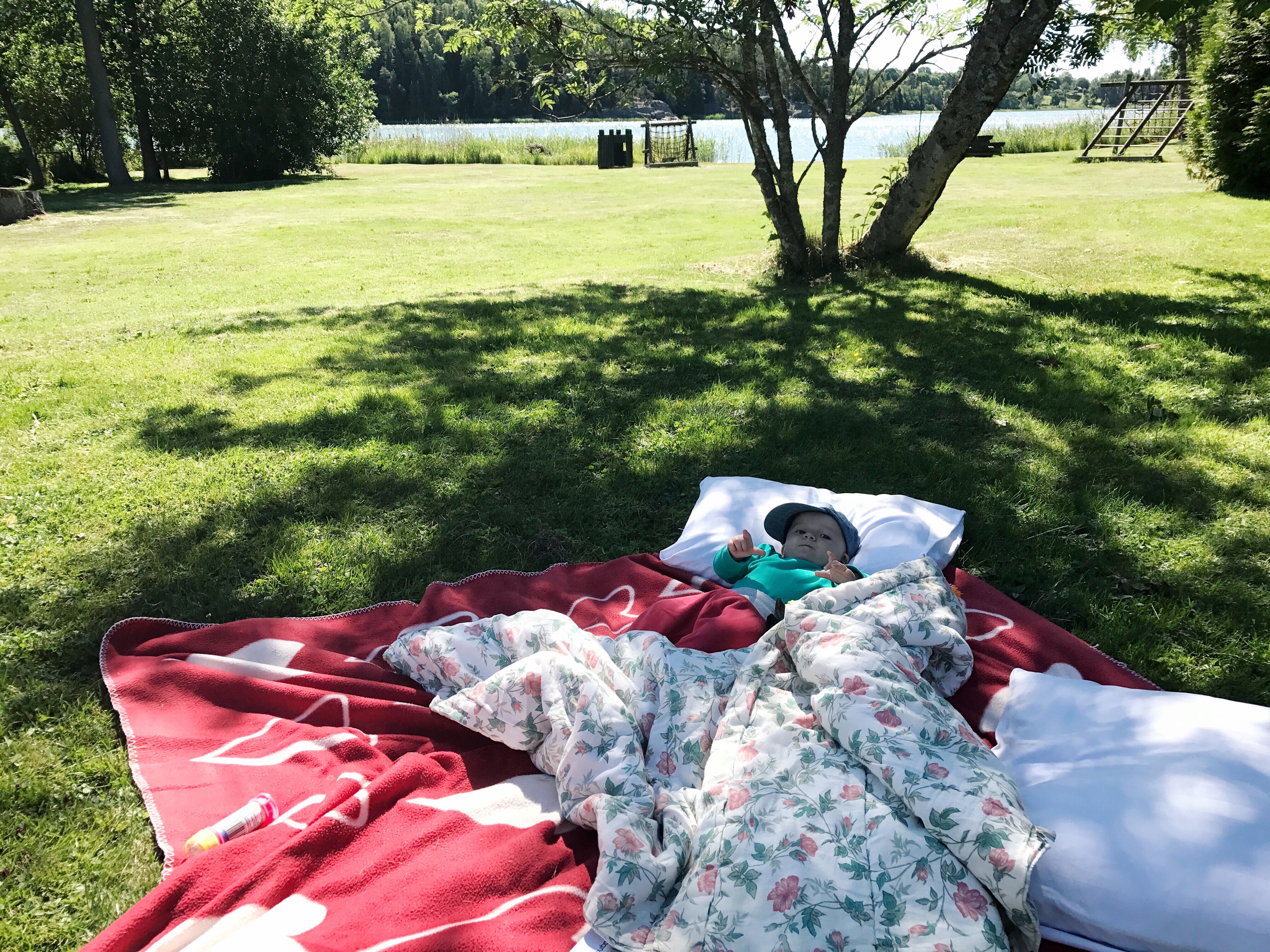 Sedan på fredagen var det en jättefin dag så vi la ut filtar och kuddar i gräset och bara njöt.