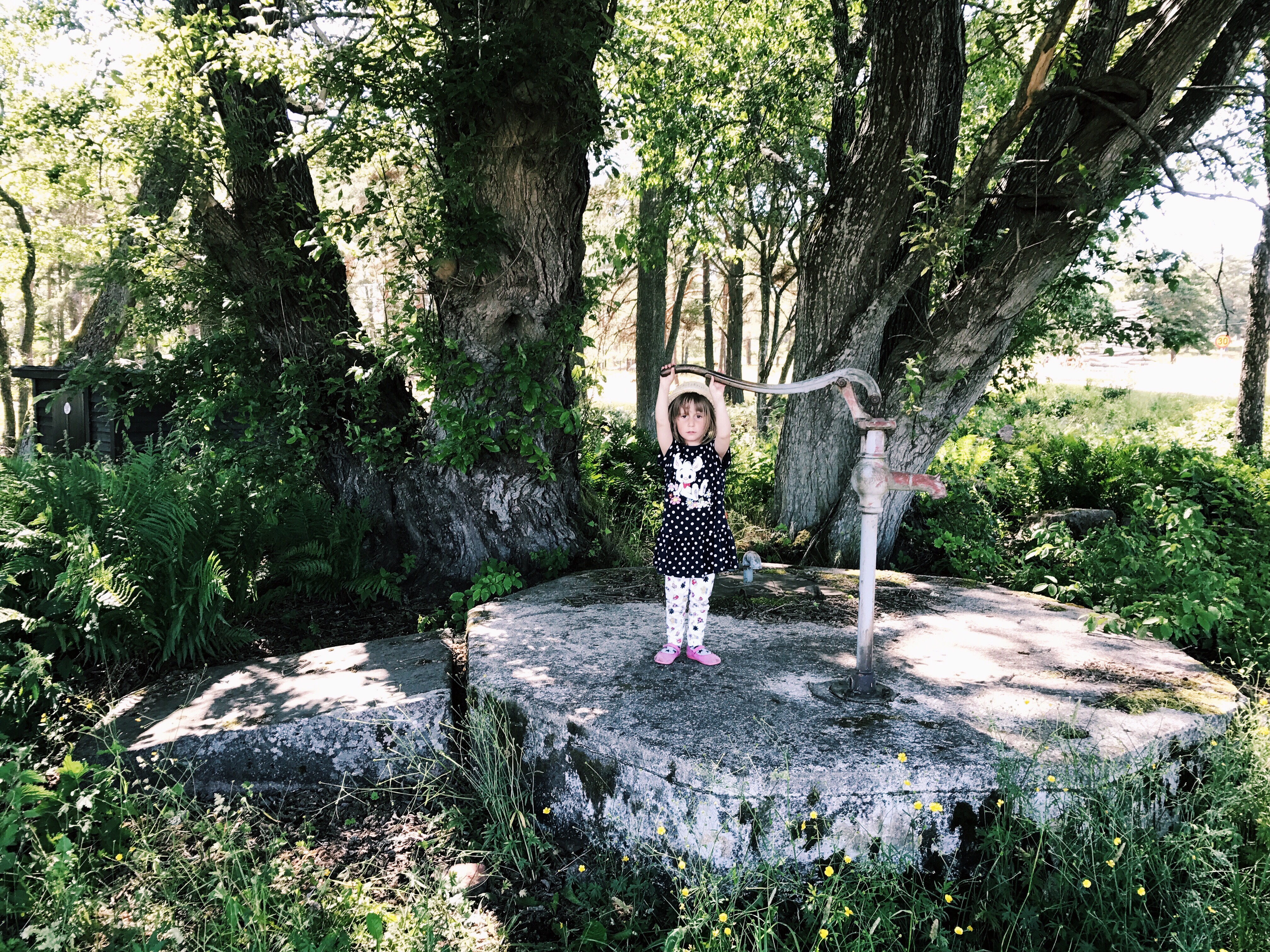 Sedan medan jag slog mig ner och ammade Hjalmar i gräset försökte Juni pumpa vatten