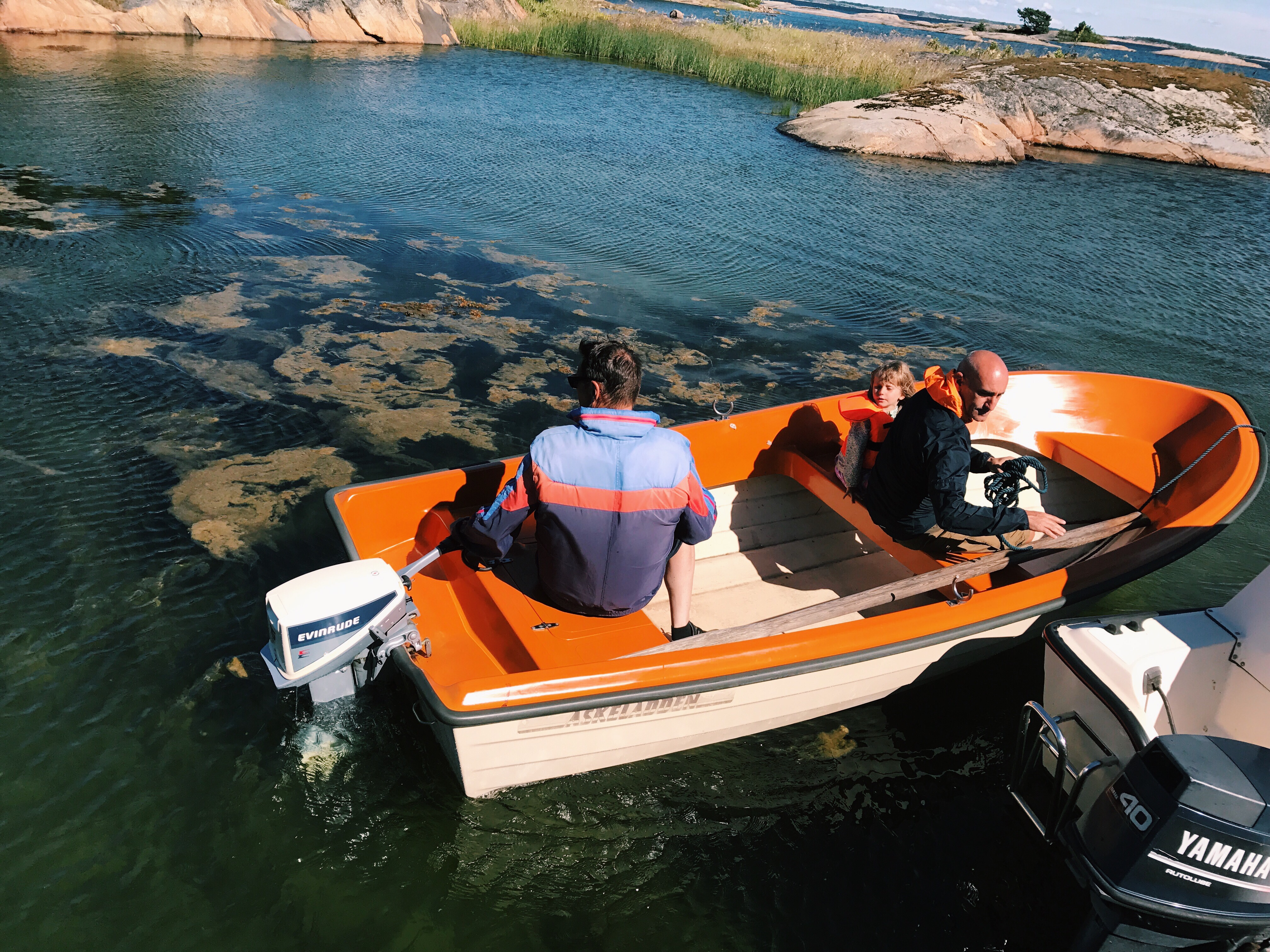 Häromdagen, sista dagen på stugan i Sund, var jag och Juni ute rodde en sväng. Jag kan sakna så ibland att ha tillgång till en båt. Det är en annan somrig grej jag njuter av och det är som ett annat Åland öppnar upp sig med båt, men att i alla fall få guppa fram på vågorna en stund gjorde susen.
