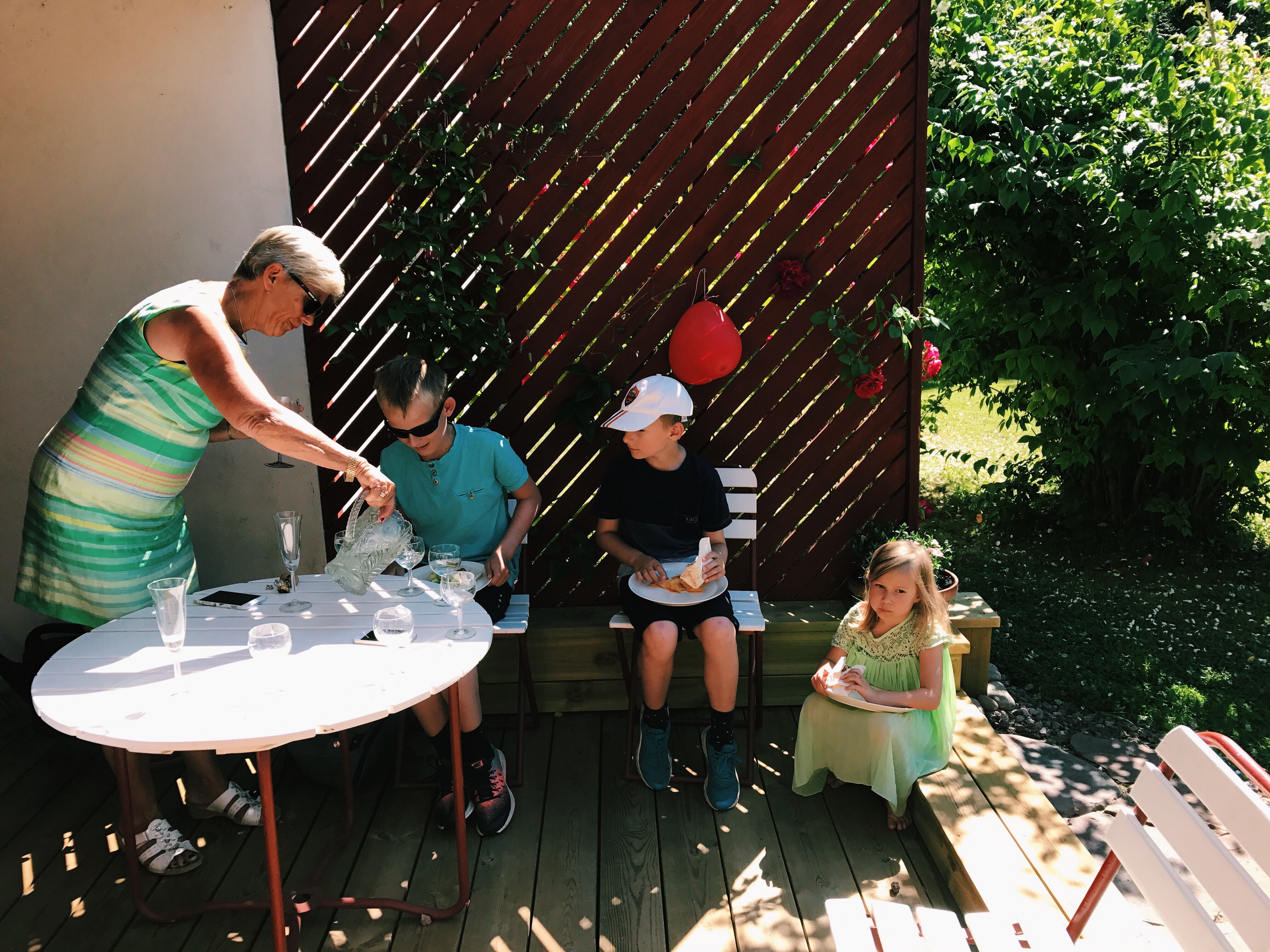 Vi började med sydamerikansk lunch, fläder och bubbel på mormor och morfars altan