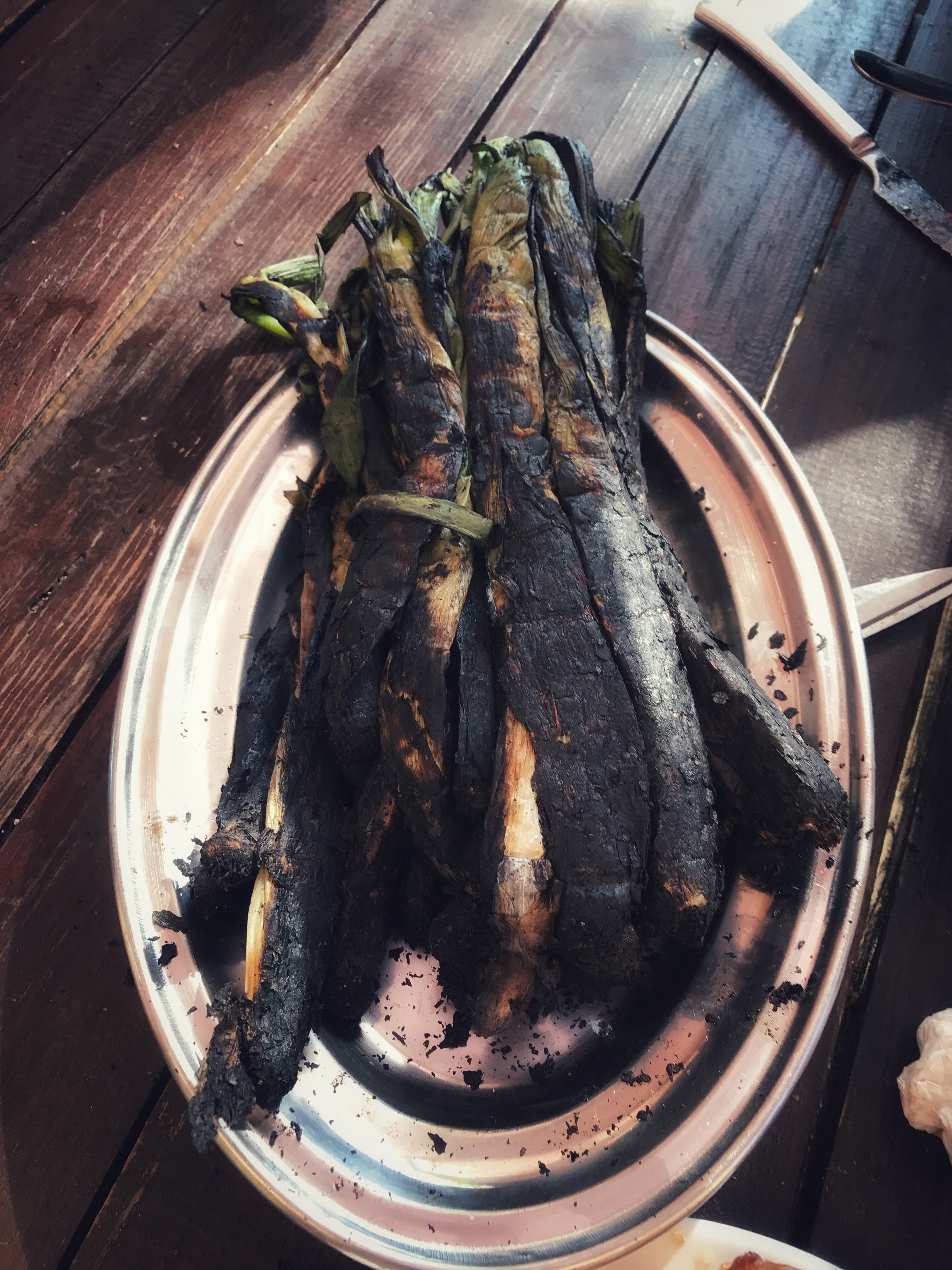 Ni som följt mig här tidigare vet att det är som små purjolökar som man grillar över öppen eld och sedan äter innanmätet av och doppar i en romescosås. Så gott!