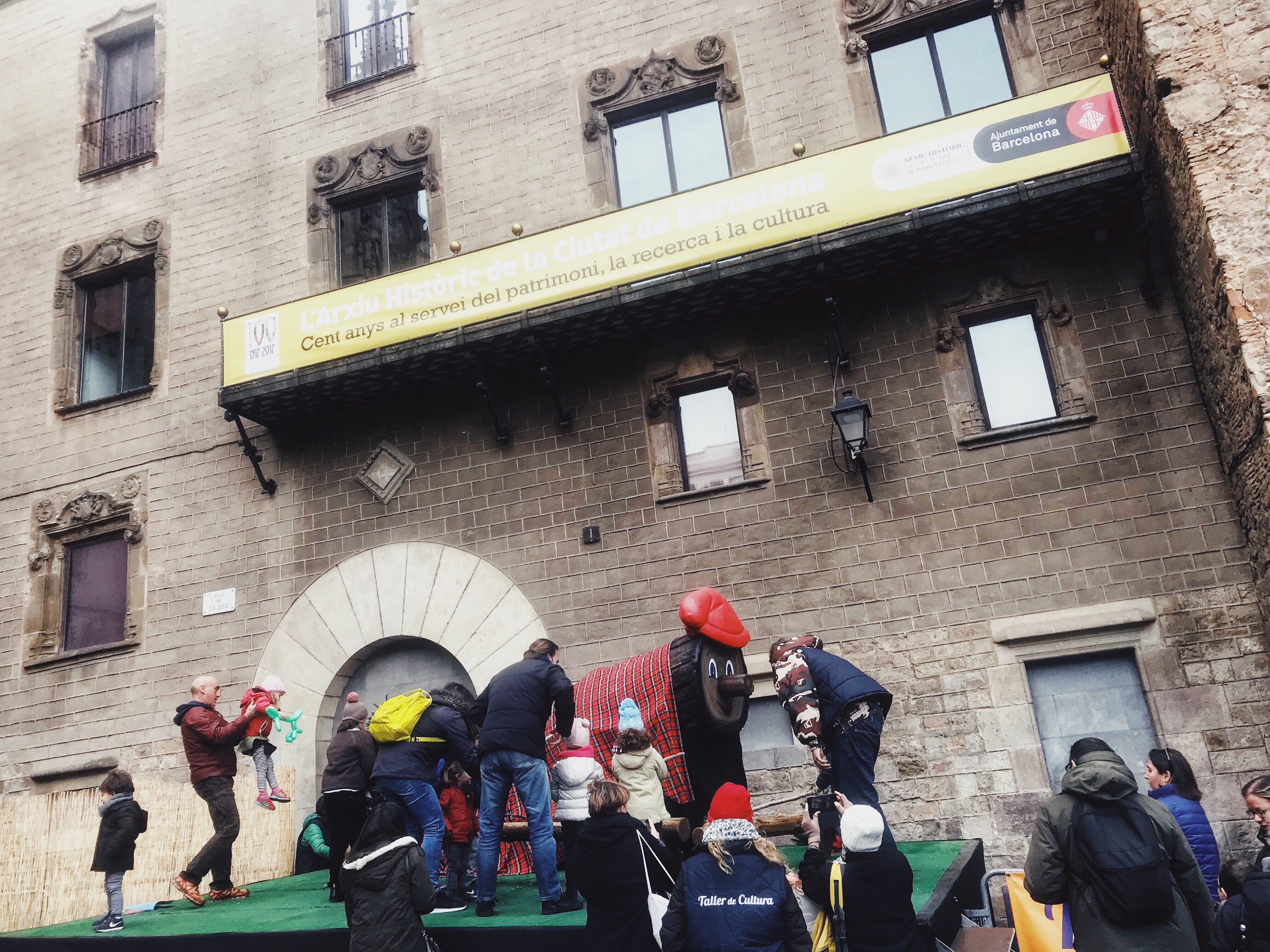 Här kommer lite bilder från helgen. Vi firade lilla jul och första advent och var ut på stan, handlade lite julklappar och träffade både tomtar och den katalanska Tio de Nadal, som ger julklappar till barnen. Juni var både lite blyg för tomten och i extas!