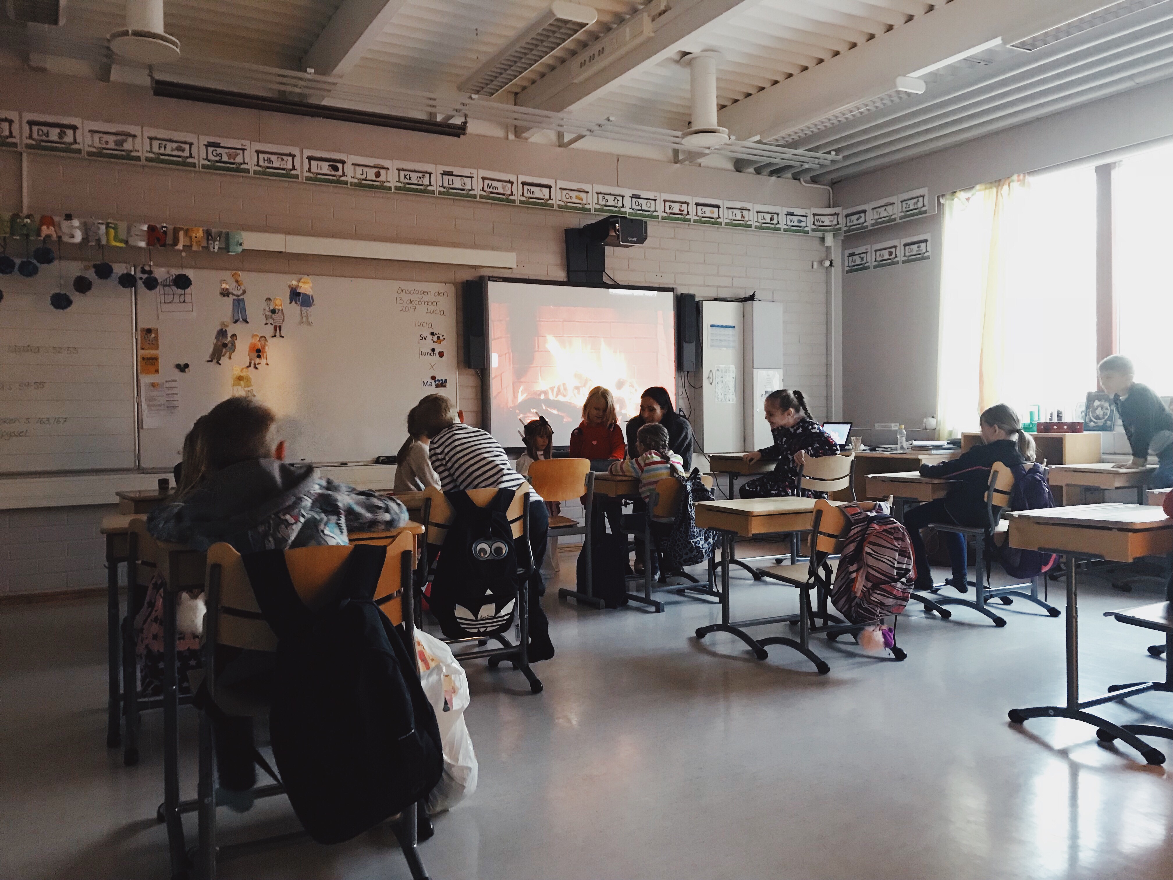 Efter en stund kom luciatåget även in och sjöng i klassrummet och vi fick en närmare titt på Malva.