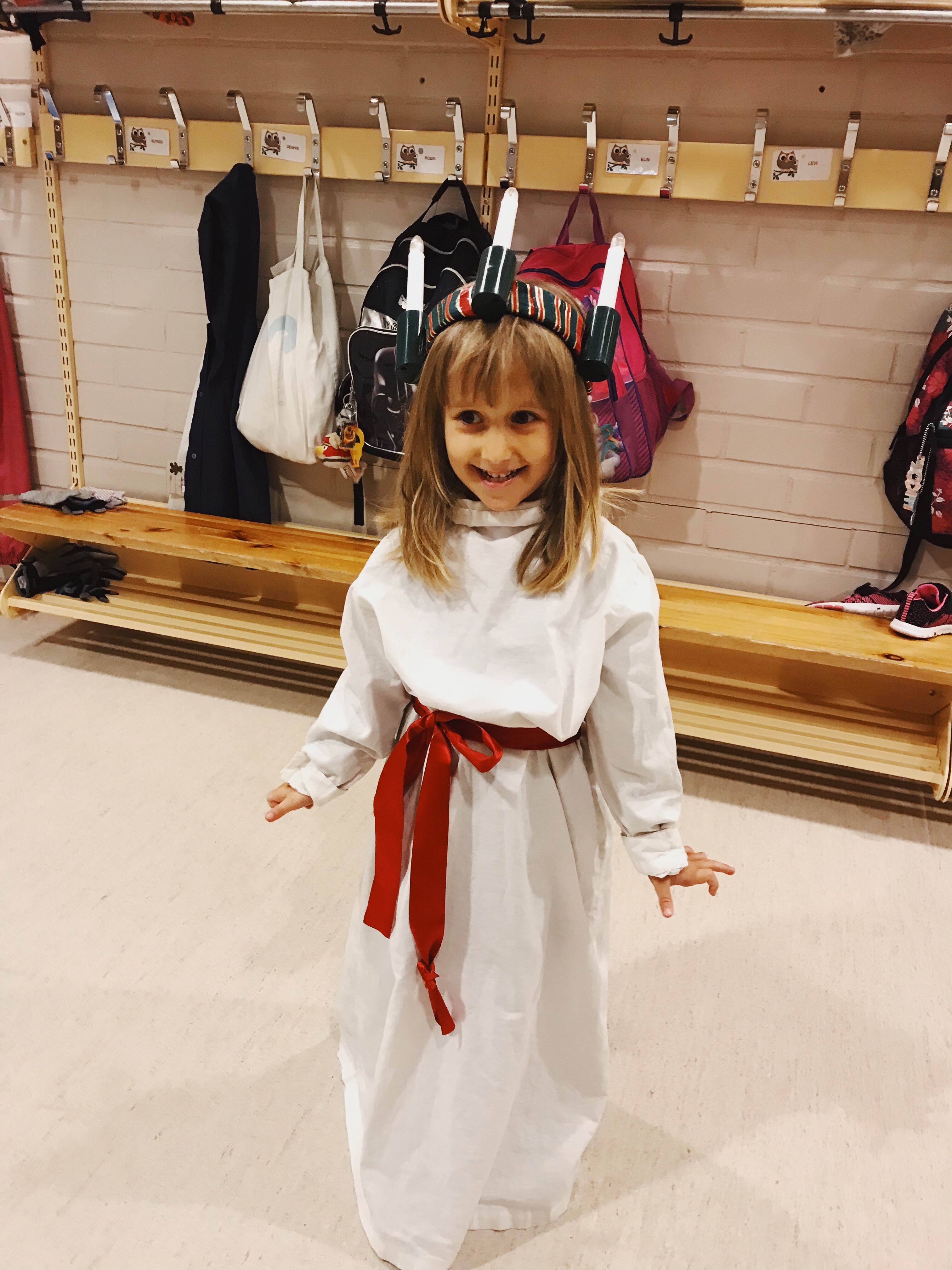 Juni var så exalterad och glad, klädd till lucia och allt.