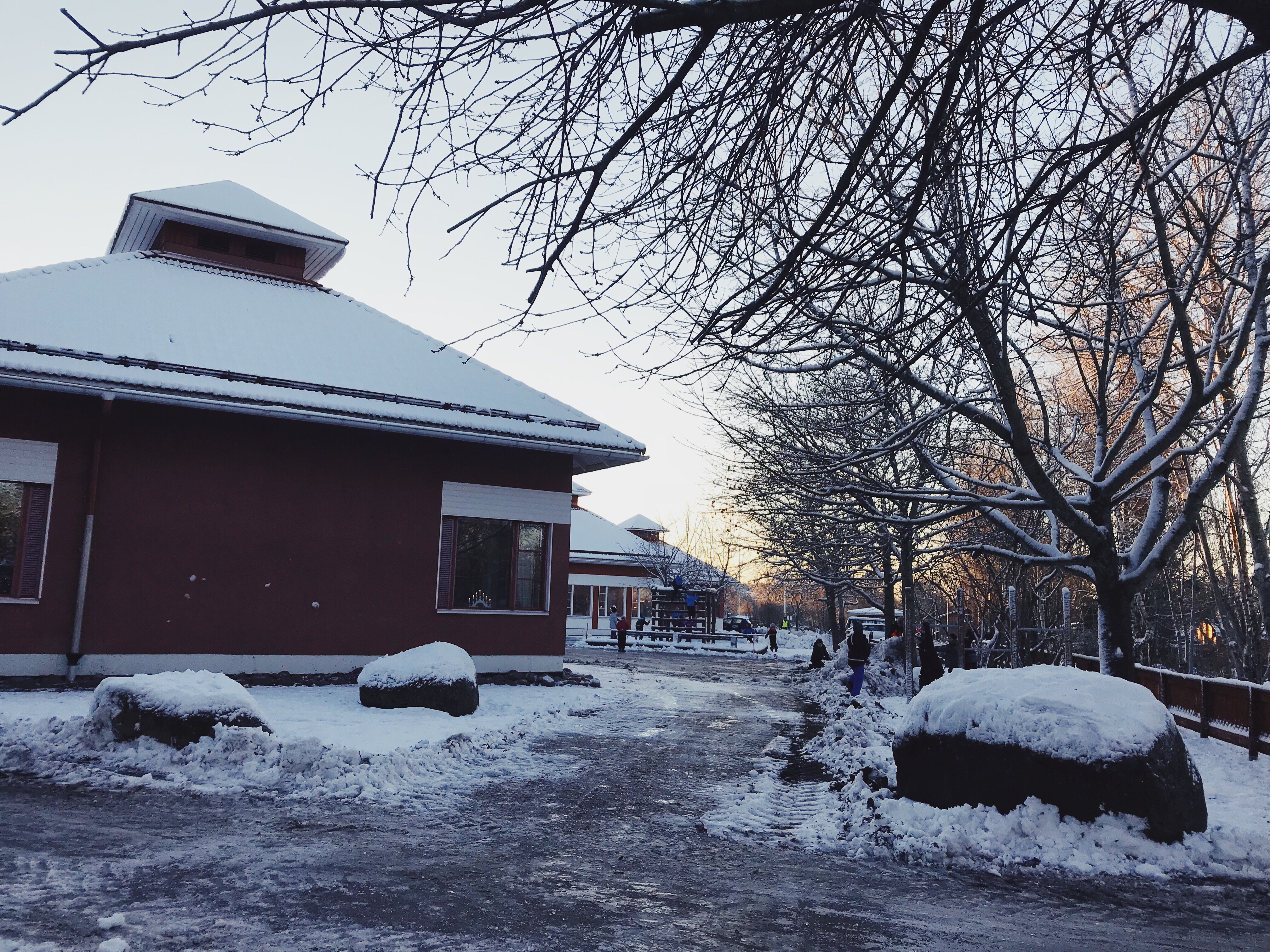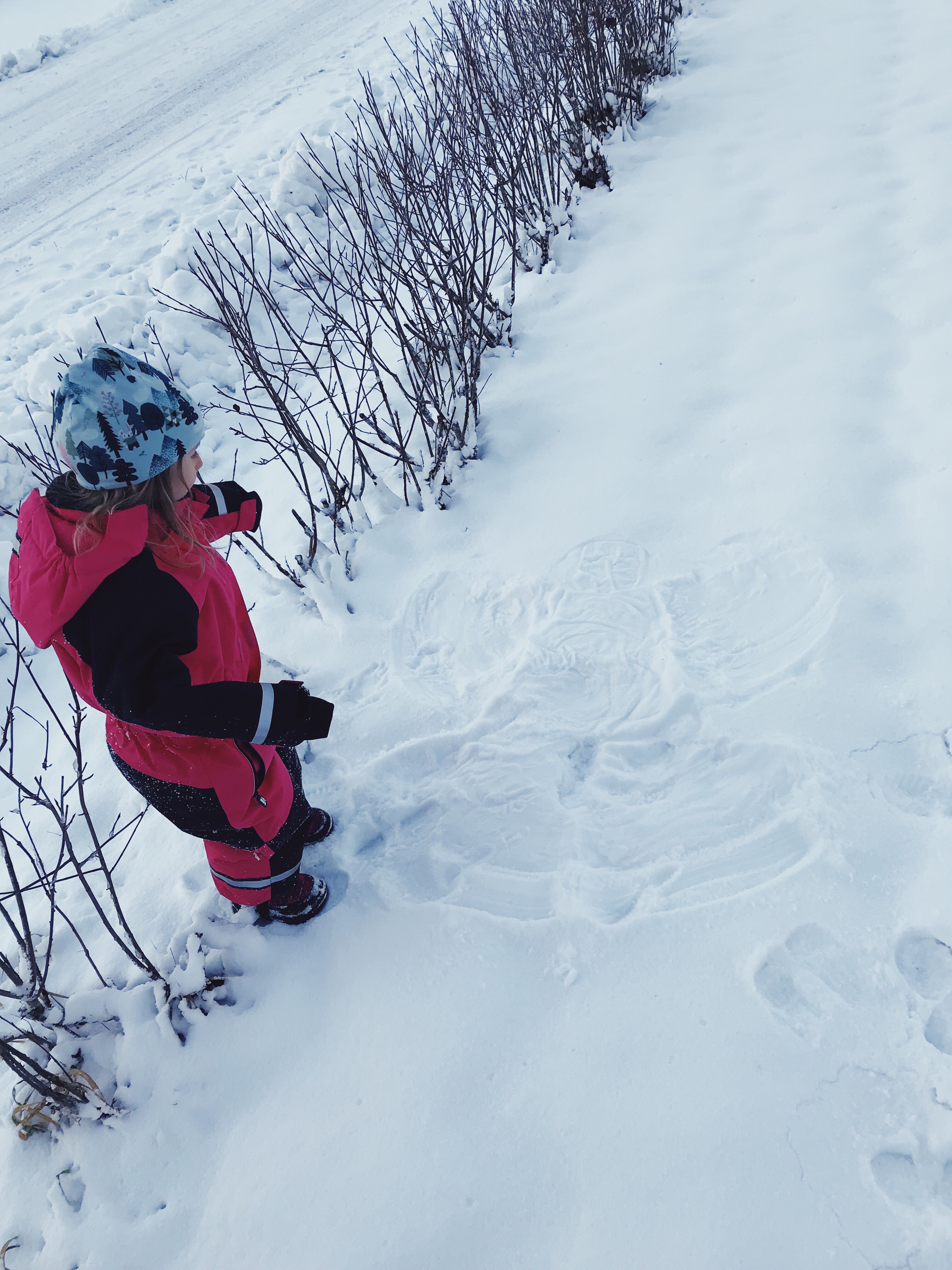 När vi kom ut igen hade solen gått upp och det var en jättefin morgon med både sol och snö så att man kunde göra snöänglar.