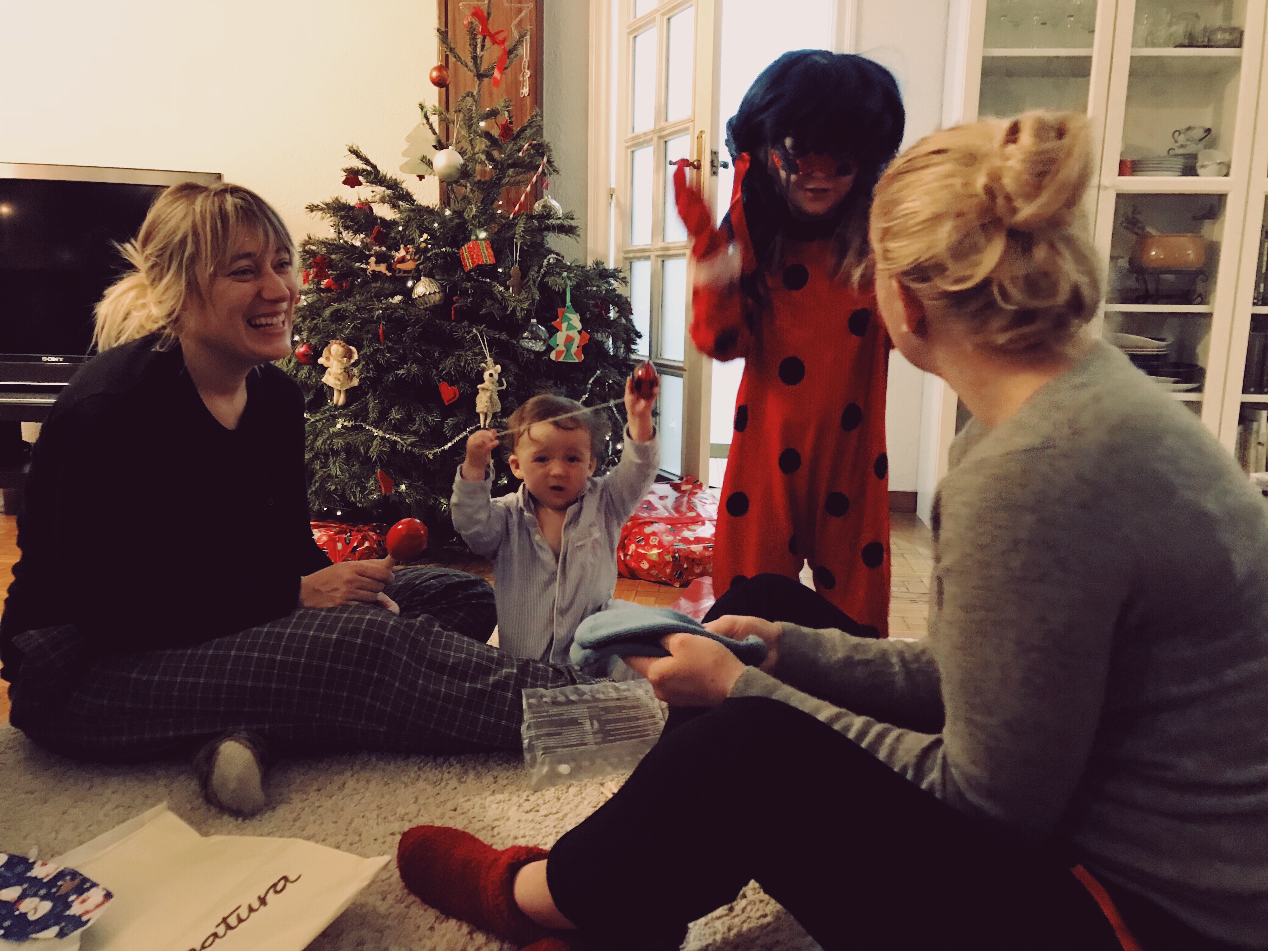 Så mysig morgon. Efter klapparna var öppnade drack vi varm choklad och åt croissanter.