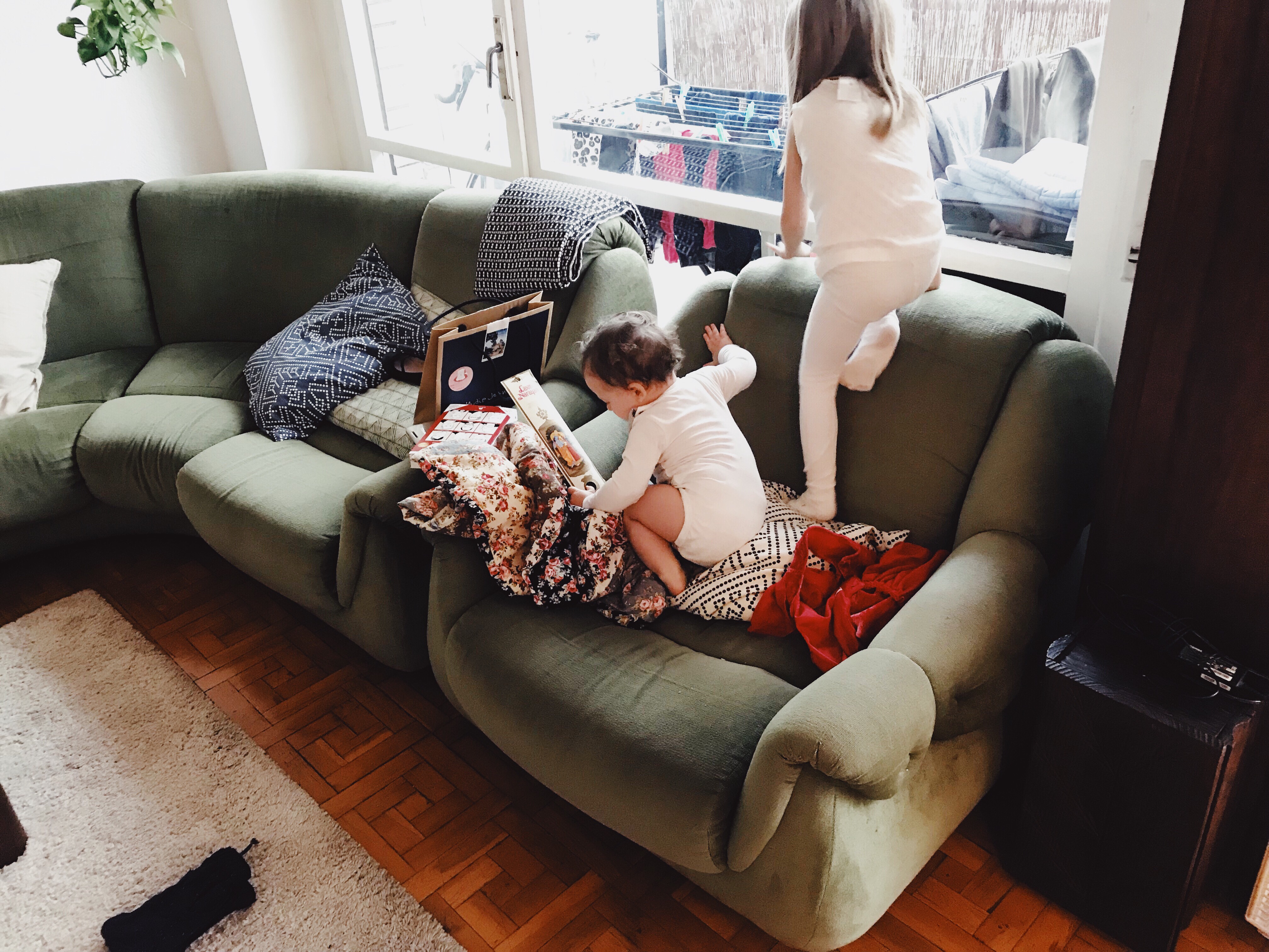 Hej på er! Hur är det? Söndagkväll och jag ligger ett hörn i soffan och försöker röra mig så lite som möjligt. Juni och Hjalmar har varit sjuka hela veckan och igår eftermiddag däckade jag. Det kändes om någon plötsligt satt sig på mina axlar och jag började frysa och fick feber och ont i hela kroppen. Som tur var har barnen blivit lite bättre, fastän de både hostar och har snuva fortfarande. Vi får se vart den här veckan tar vägen. Förra försvann i vakna nätter med en stackars febersjuk och hostande Hjalmar och i helgen har det varit Juni finisen som legat och pipigt i sängen. Vi har i alla fall tagit det lungt och det har varit skönt. Jag har också städat bort julen som ni kan se på bilden ovanför. Det känns som det är dags för någonting nytt. Därför tänkte jag också nu visa er bilder från våra sista juliga dagar, så vi kan vända blad sedan.