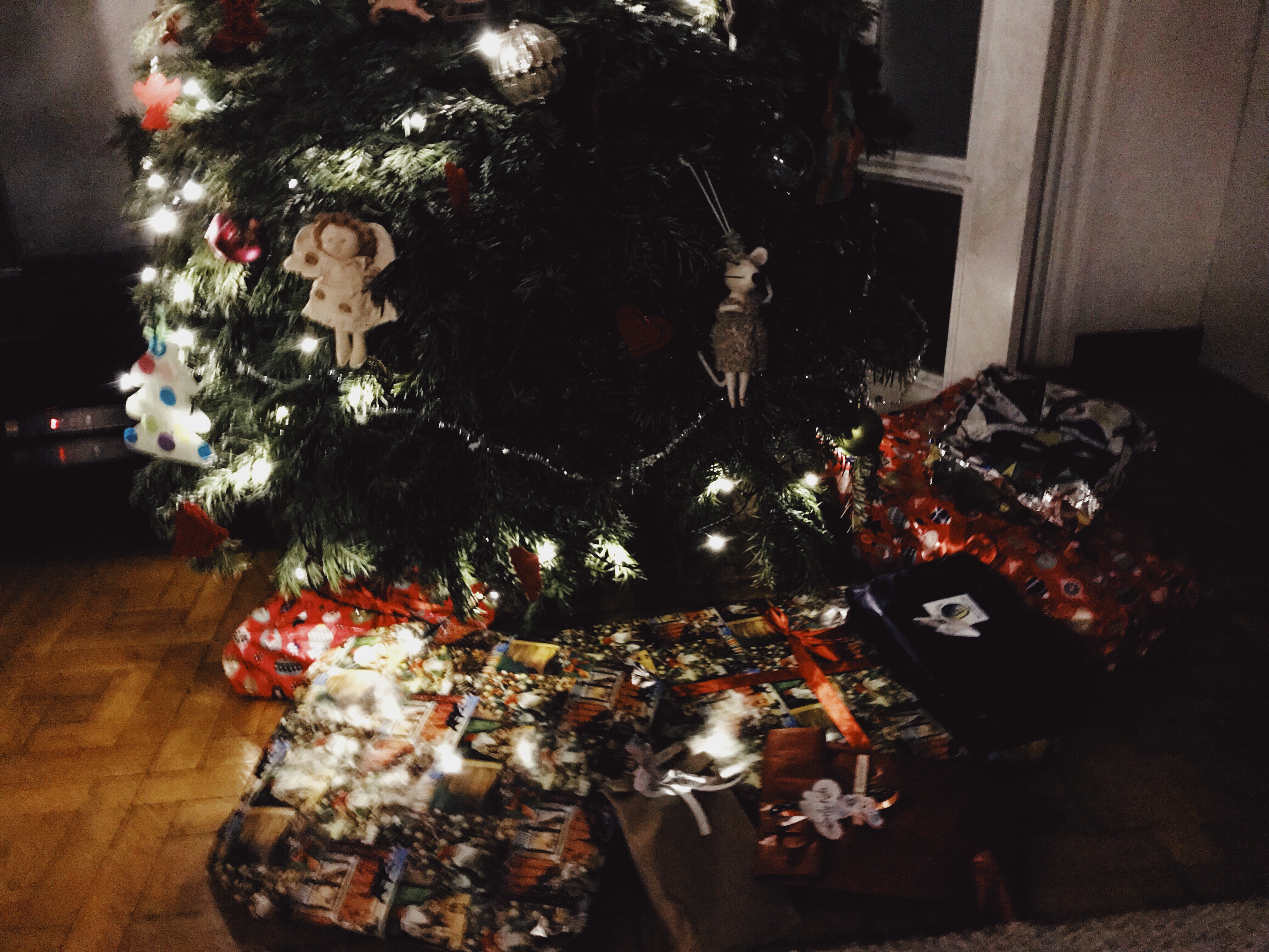 Vi alla var helt slut efteråt men när Juni och Hjalmar somnat stannade jag och Edu uppe en stund till och fixade i ordning för morgonen. Jag har sett så många amerikanska filmer när barnen får sina julklappar på morgonen så det kändes lite som jag var med i en sådan när vi smög omkring och slog i de sista paketen. Tro nu inte att vi ger Juni och Hjalmar en massa paket både på den åländska och spanska julen. Det skulle vi aldrig ha råd med. Nej, de fick några små hemma på Åland och sedan ett par större här i Barcelona. Och inte mer totalt än vad de skulle fått om vi firade en jul.