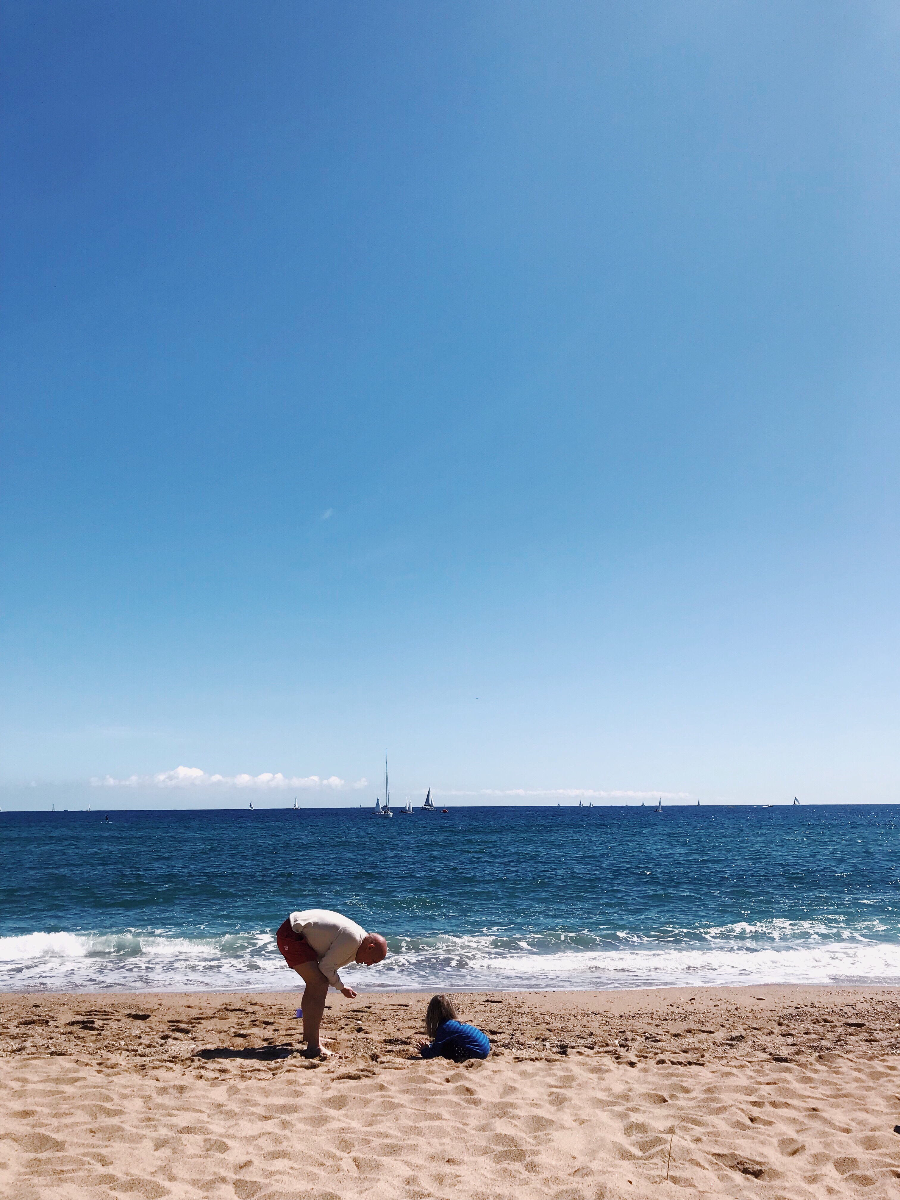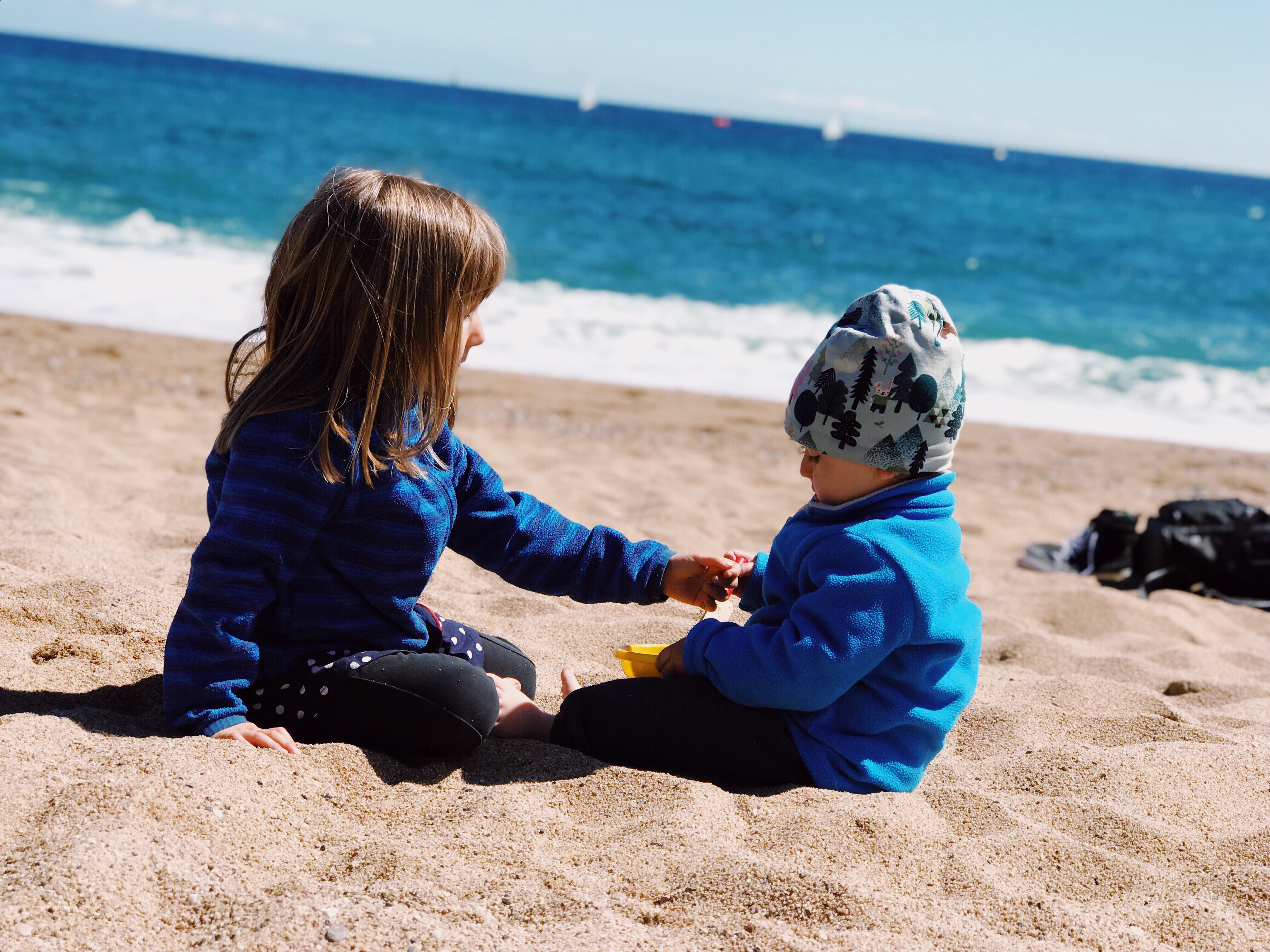På eftermiddags gick vi sedan ner till stranden. Det blåste lite men solen var varm och Juni och Edu letade snäckor.