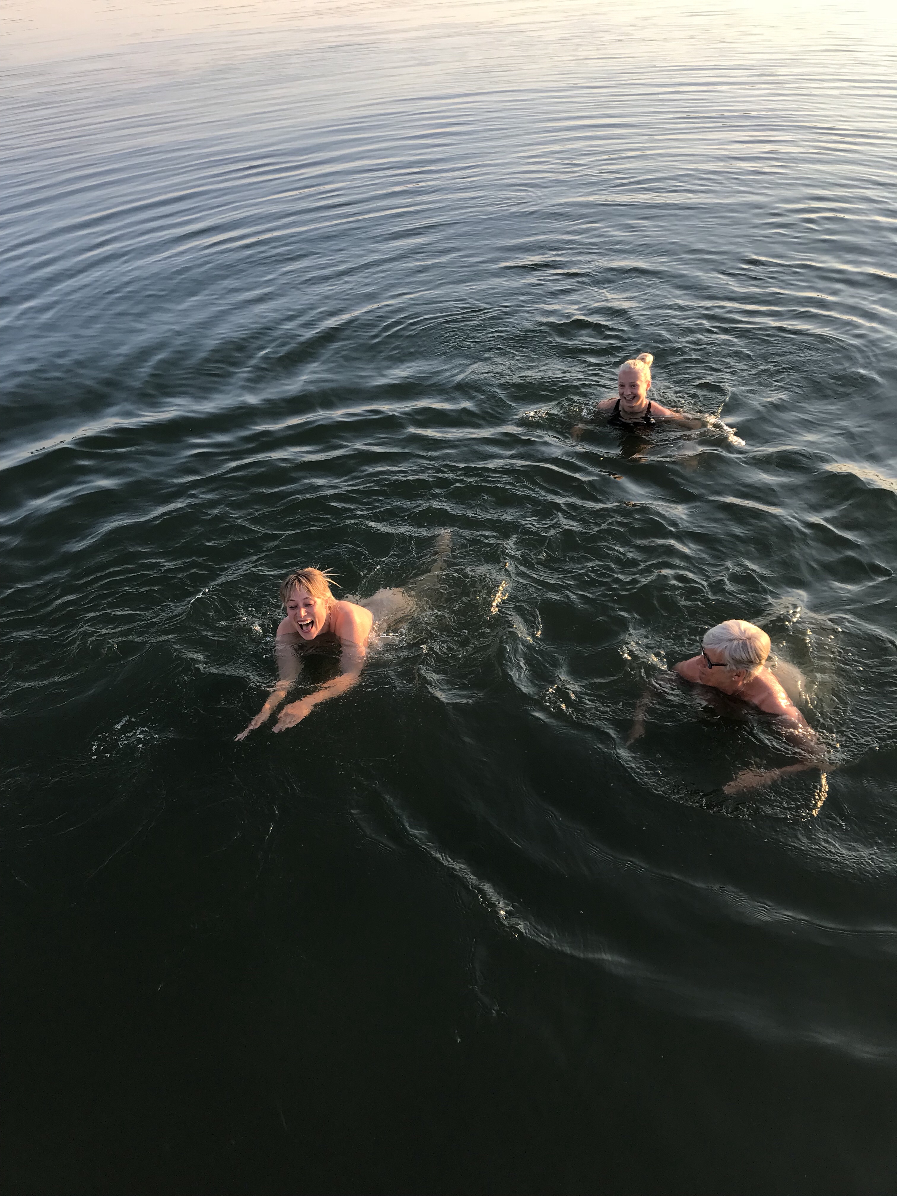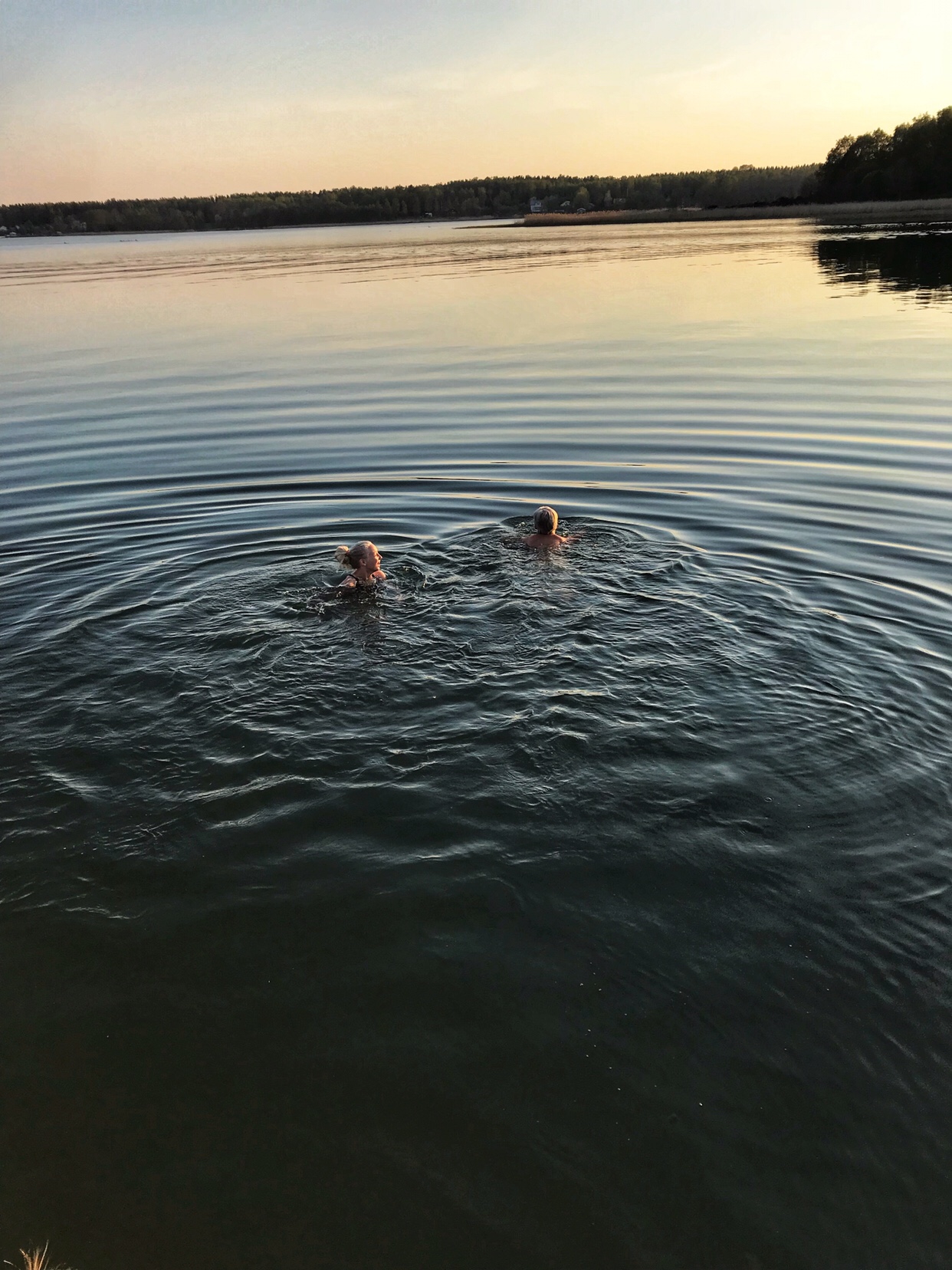 Sista kvällen hemma gick jag och mamma ner till sjön och tog oss ett dopp med Malva.