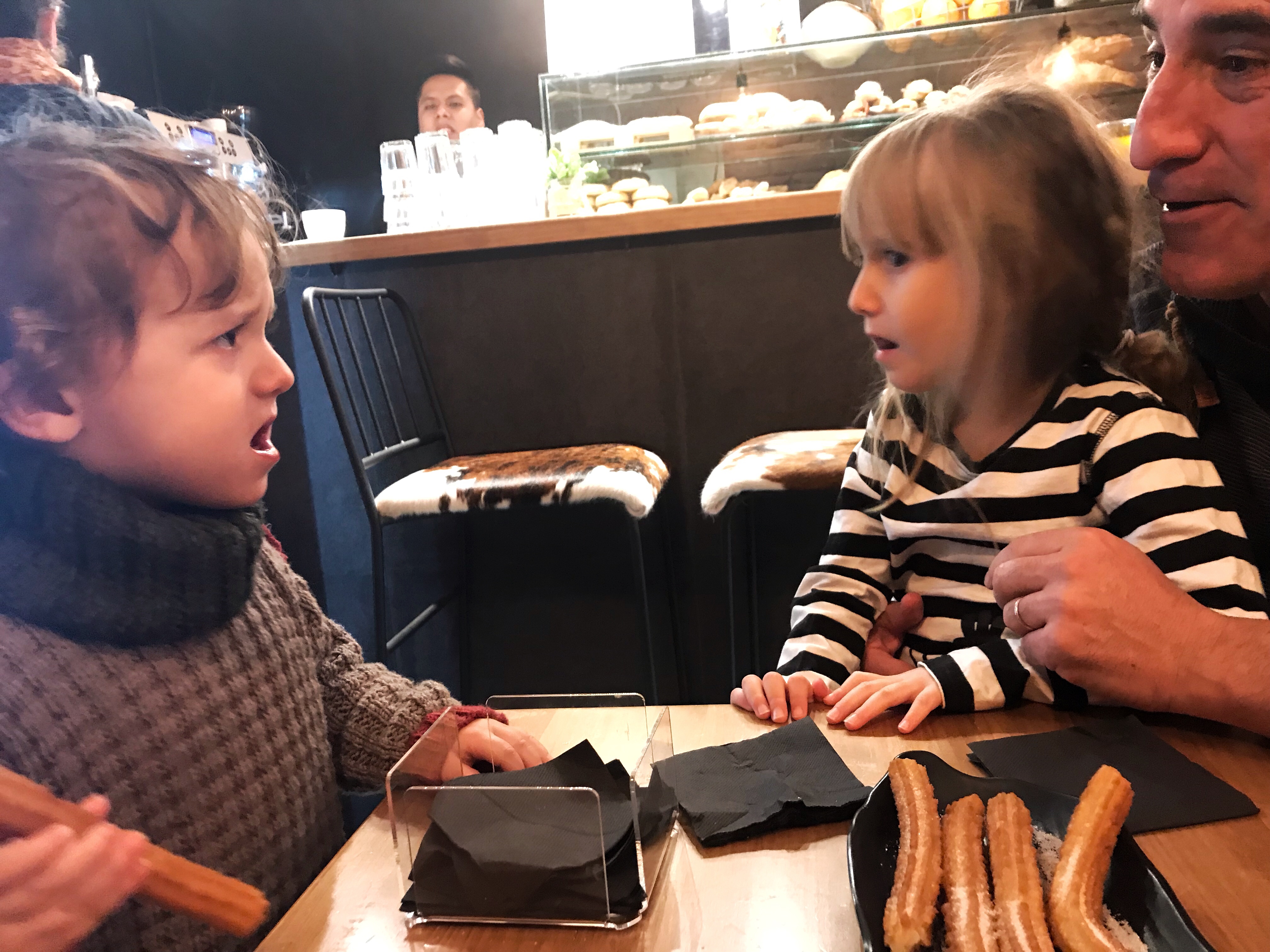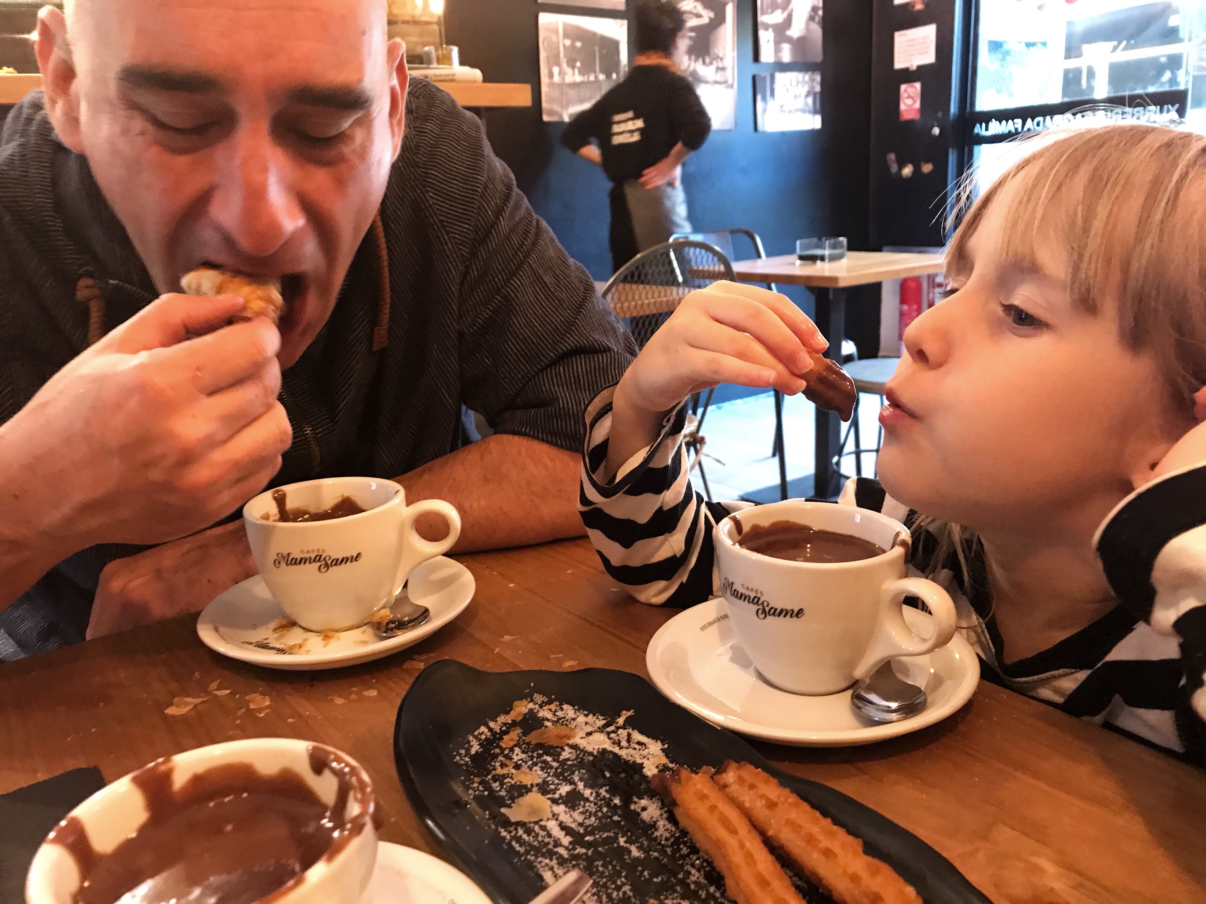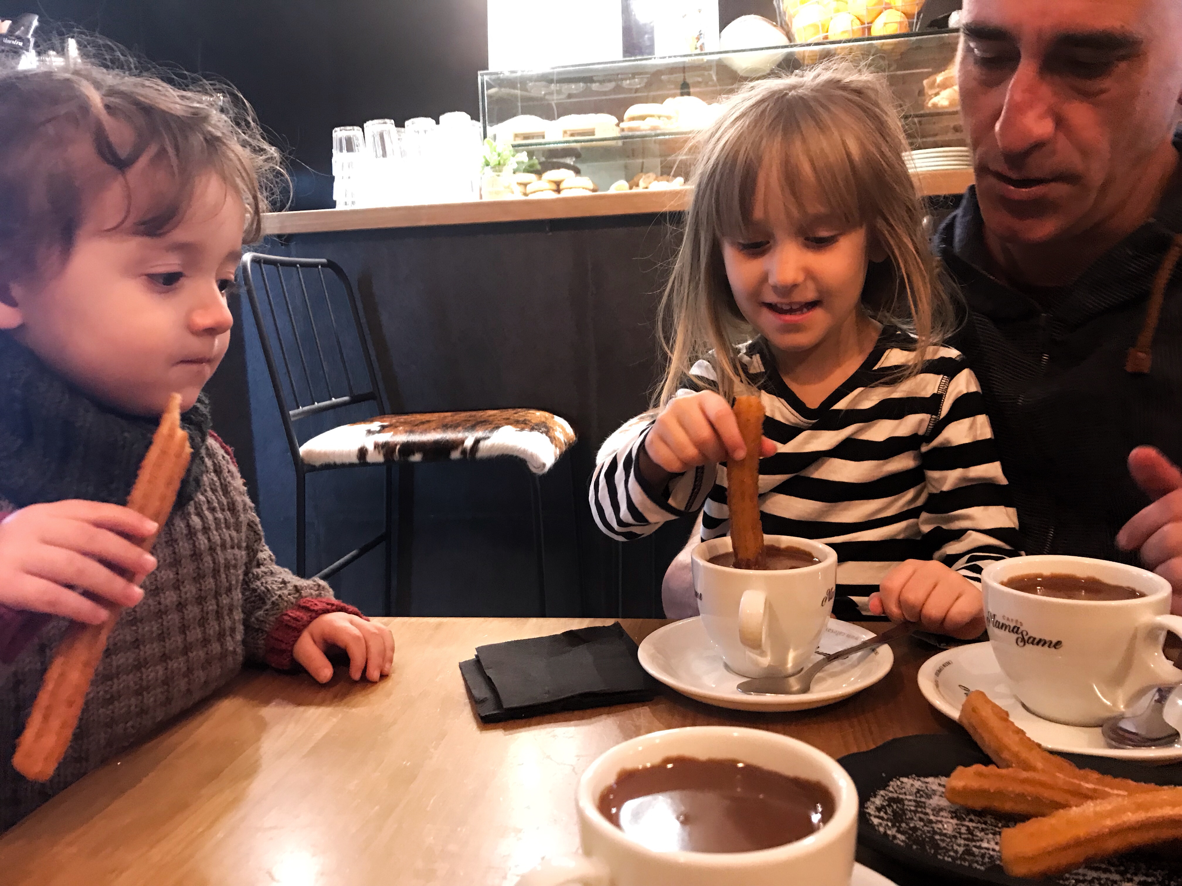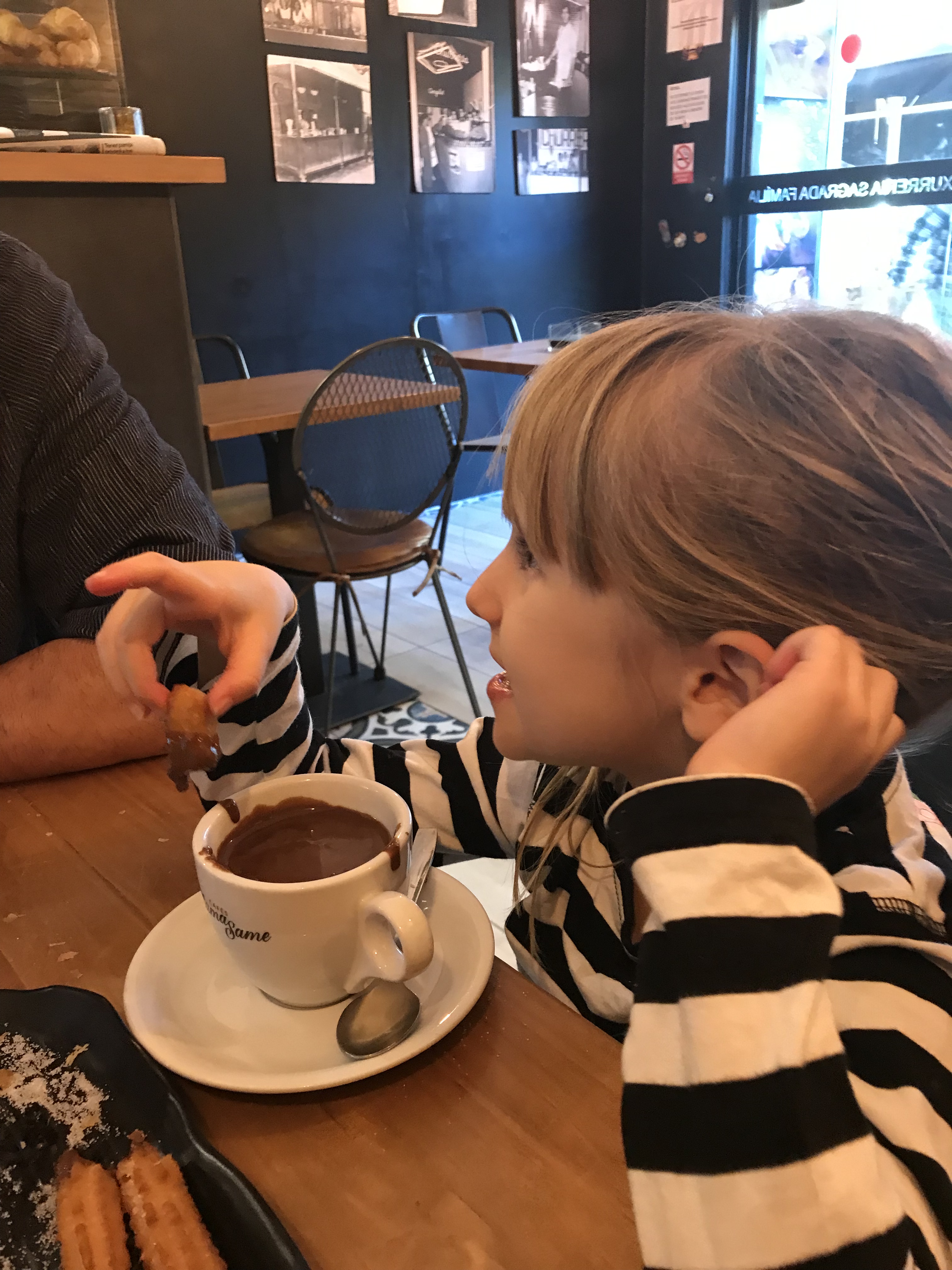Det är intressant hur man anammar traditionerna där man bor och till slut gör dem till sina. Churros con Chocolate, dessa munkliknande stänger som man doppar i varm choklad här, har blivit lika med vinter i Barcelona för mig så i lördagsmorse lurade jag med hela gänget till en churreria vid Sagrada Família för att njuta av vinterstämningen.