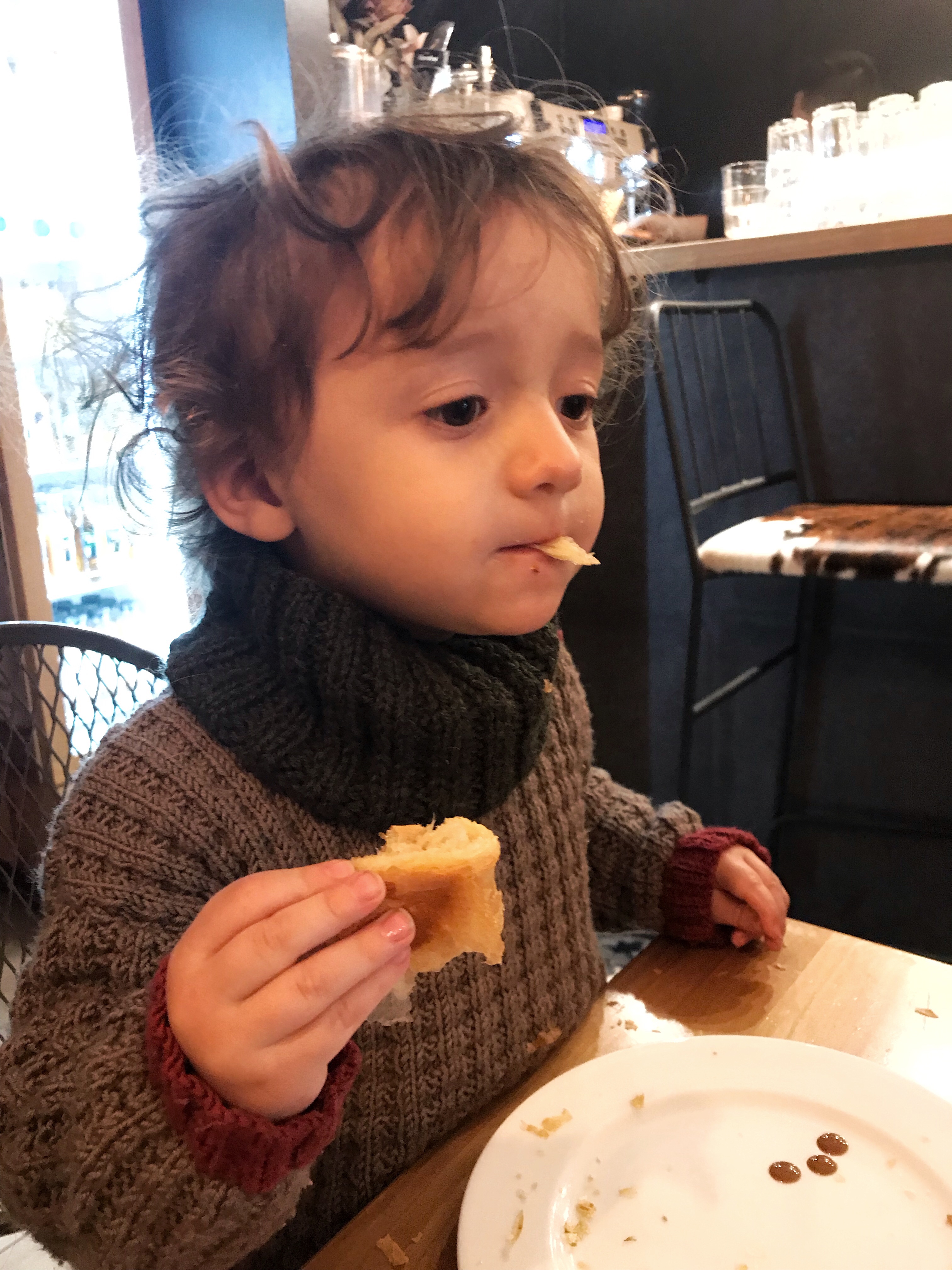 Så här kan det se ut när vi äter mysfrukost. Allt frid och fröjd
