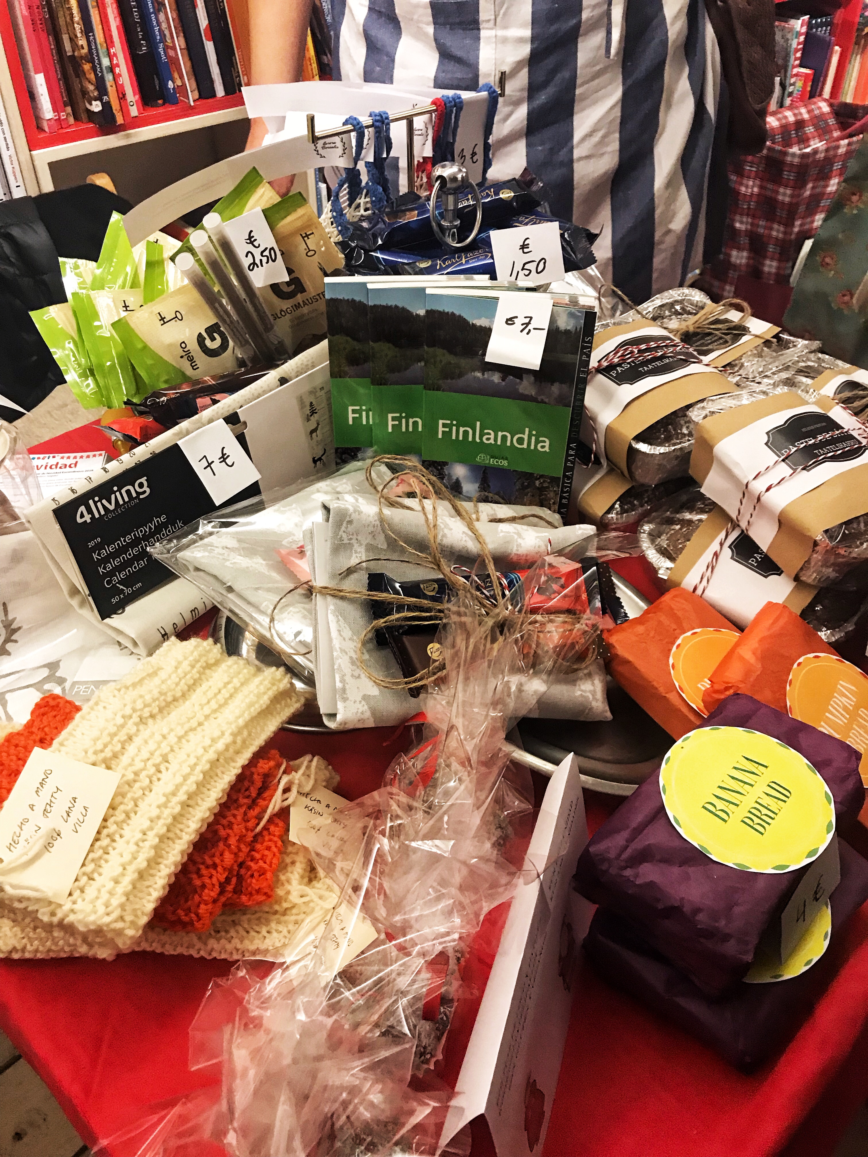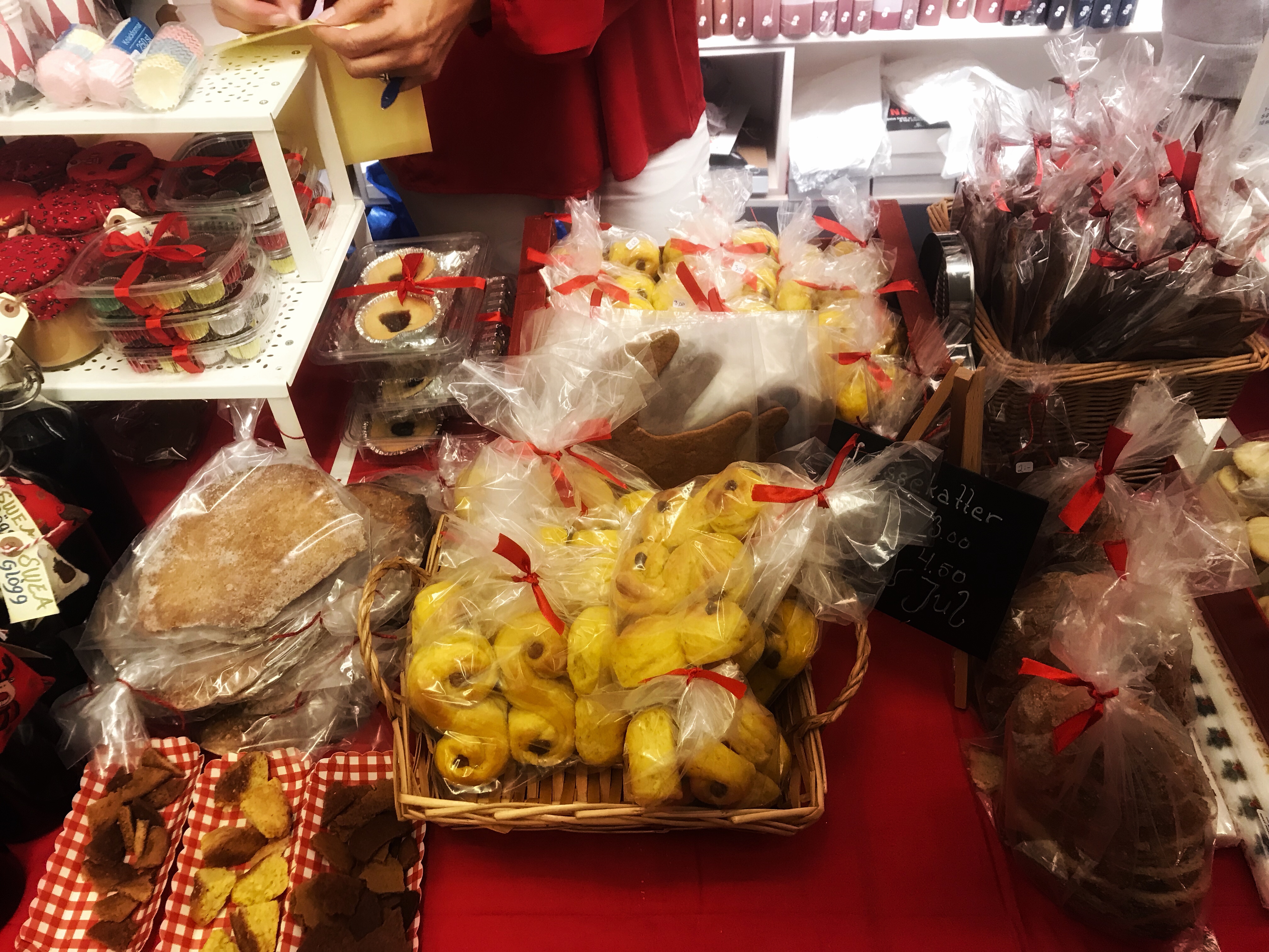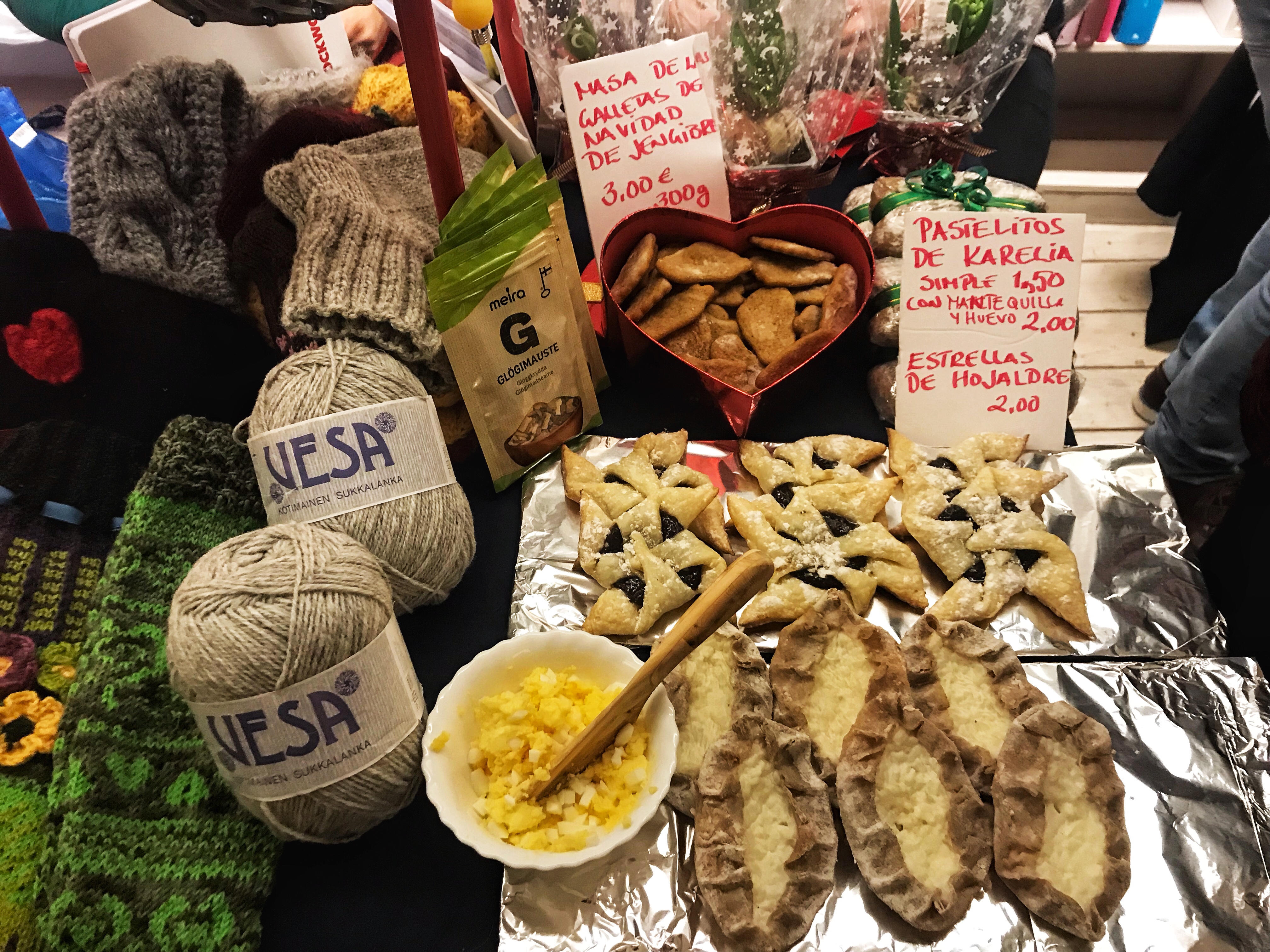 Medan jag spanade in de olika stånden. Så här såg ett finskt ut med karelska piroger och julstjärnor.