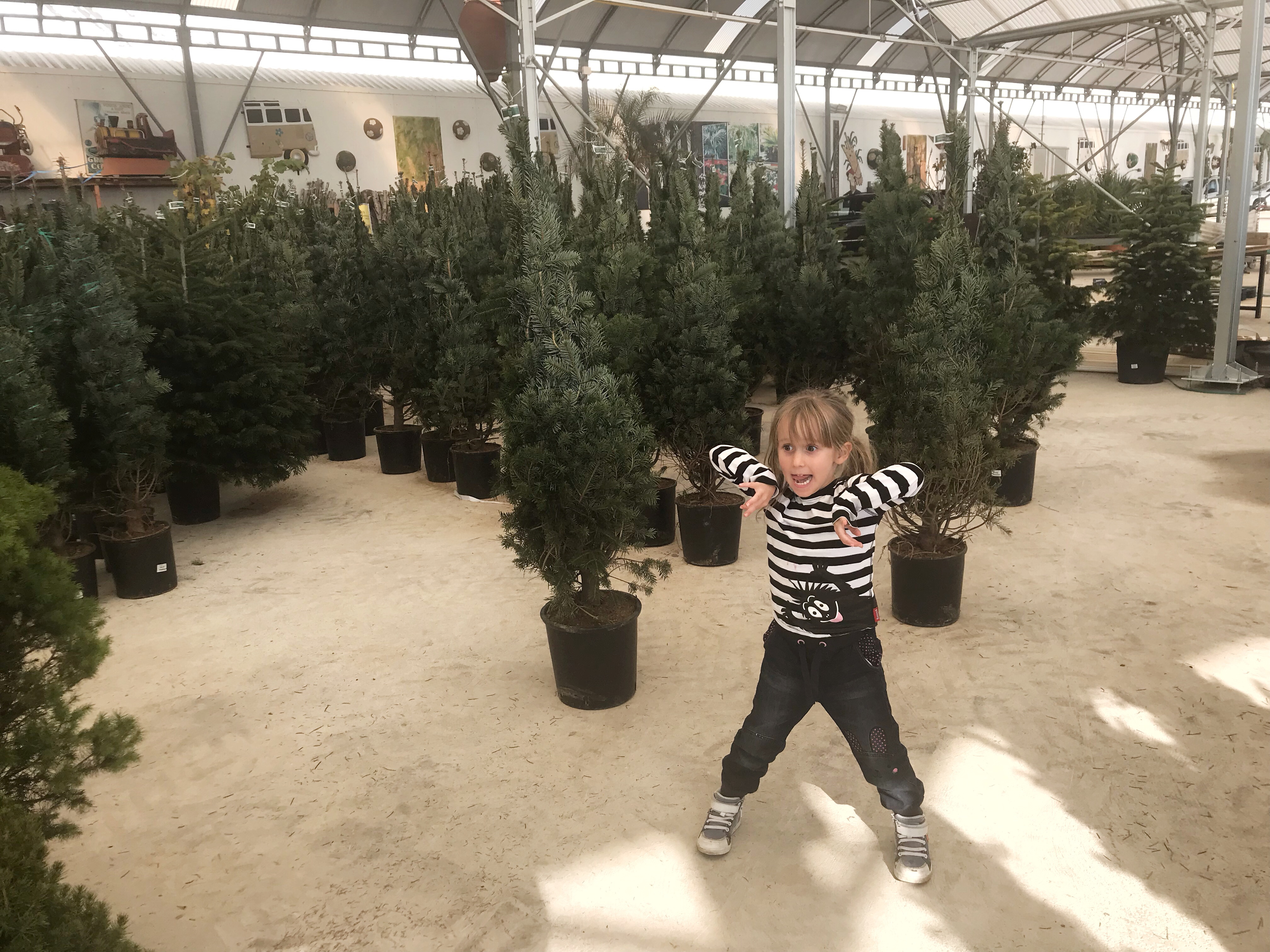 Sedan åkte vi vidare för att ta tag i vårt andra uppdrag för dagen. Nämligen att hitta en lilla julgran. Juni var så förväntansfull så hon gjorde olika grandanser.