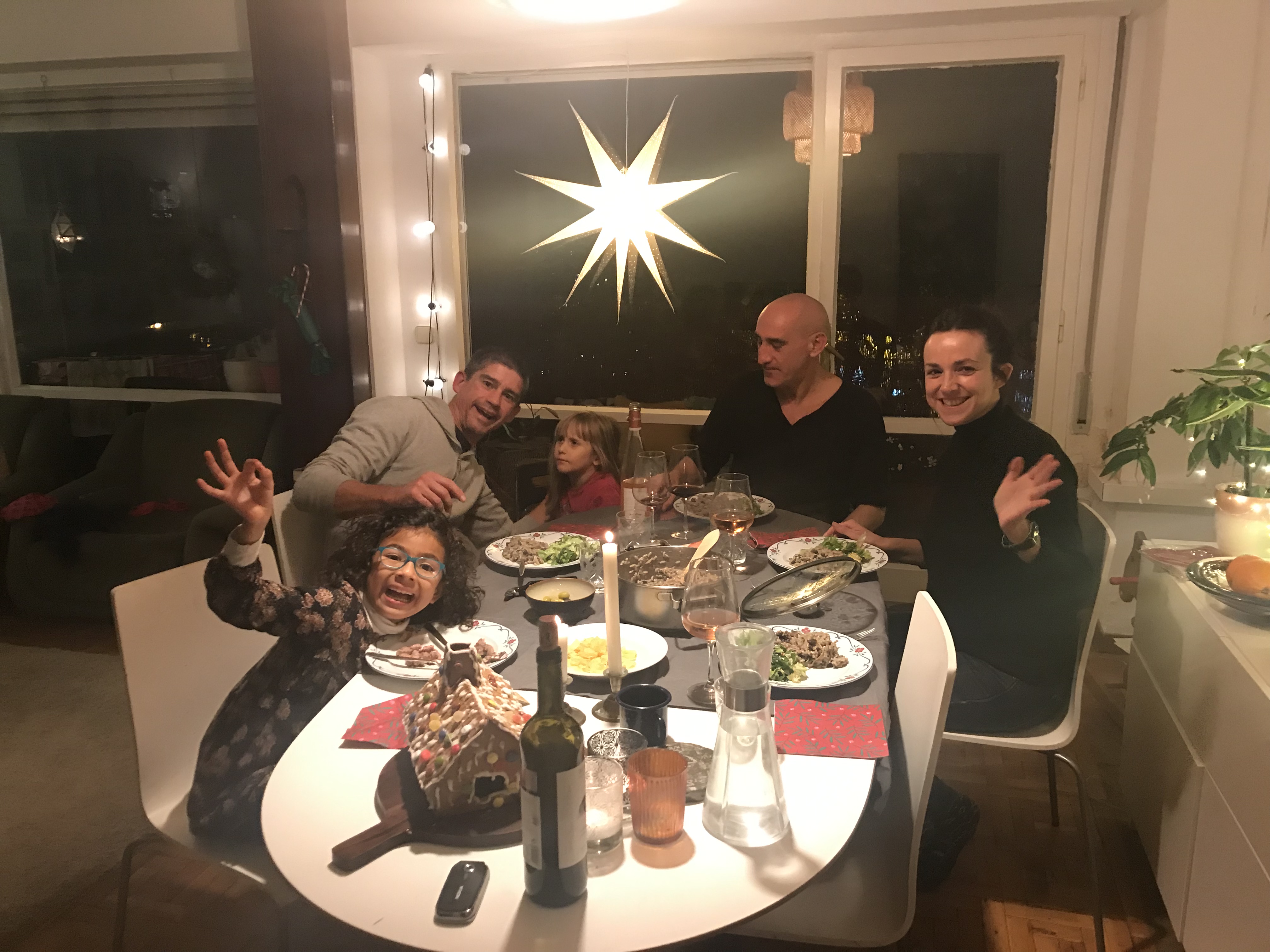 En kväll när Helios, Noemi och Sofia vad över på middag fixade vi pepparkakshuset