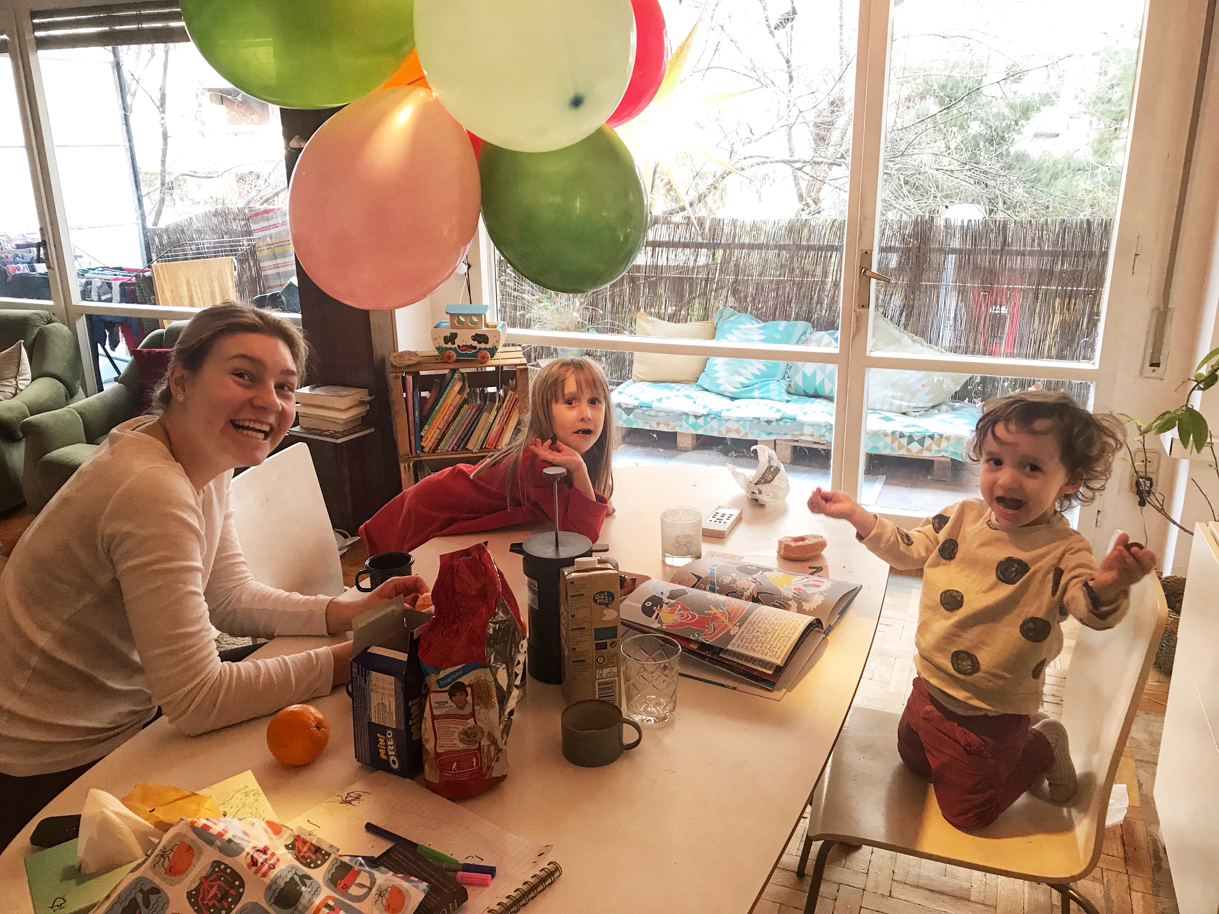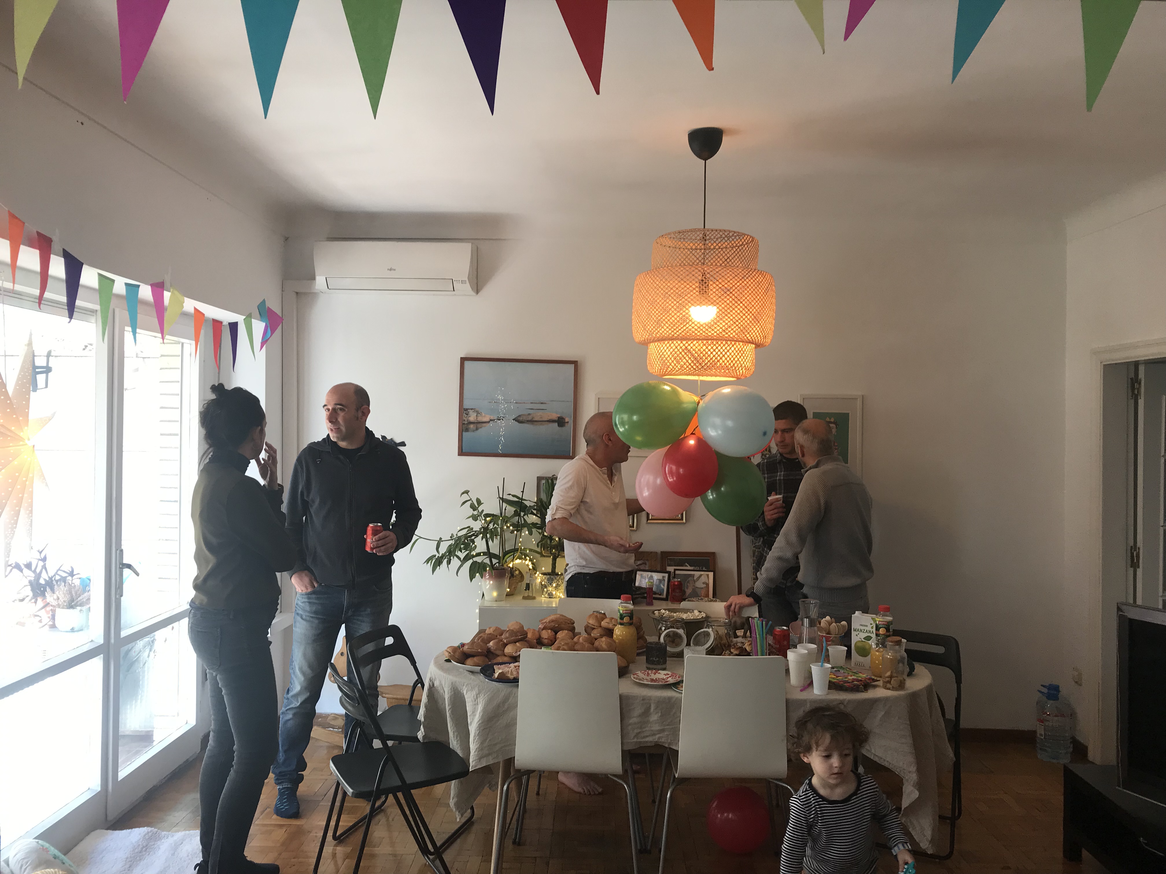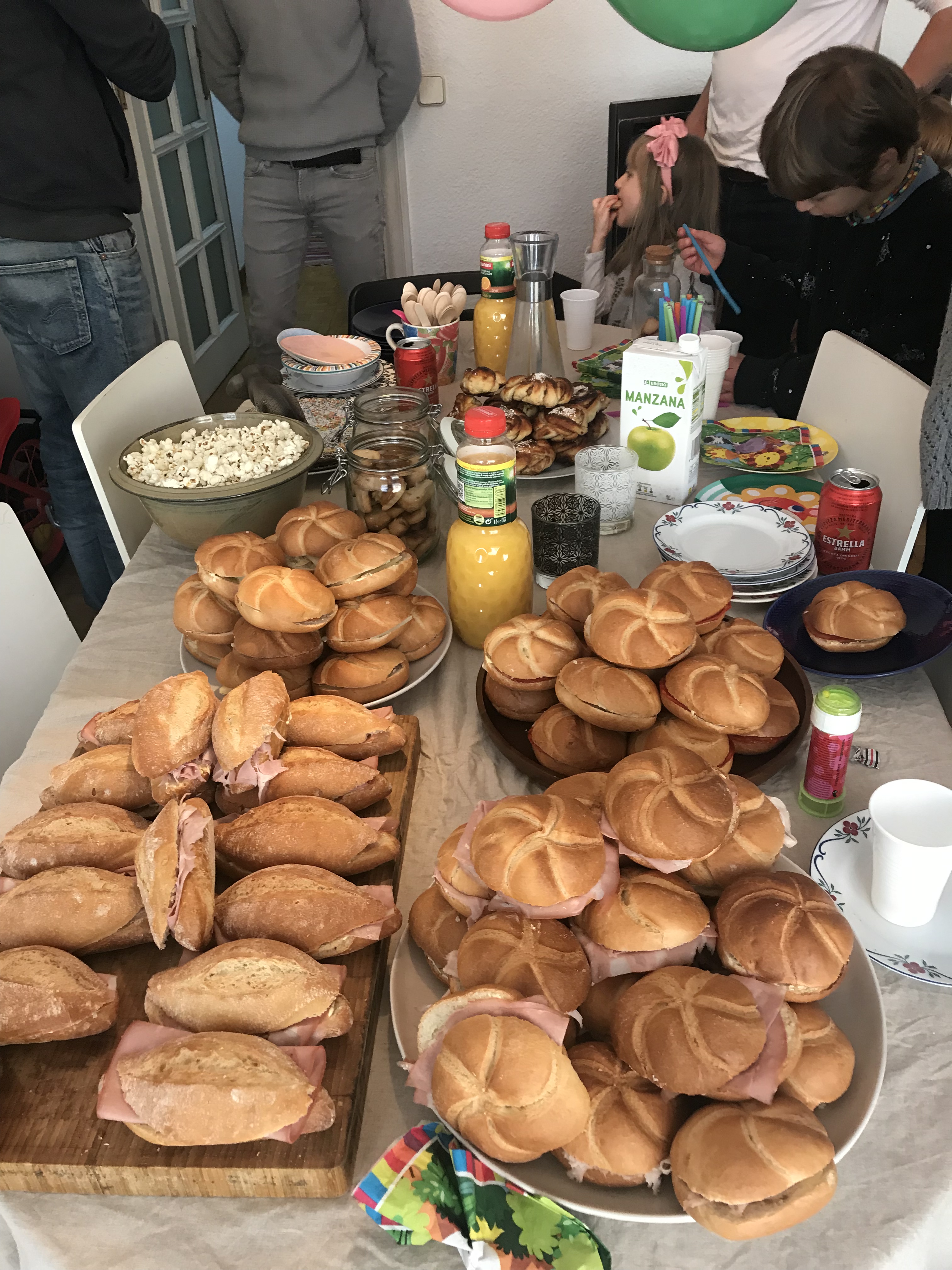 I Spanien börjar barnkalasen klockan 11 på förmiddagen så vi dukade upp med smörgåsar innan bullar, kakor