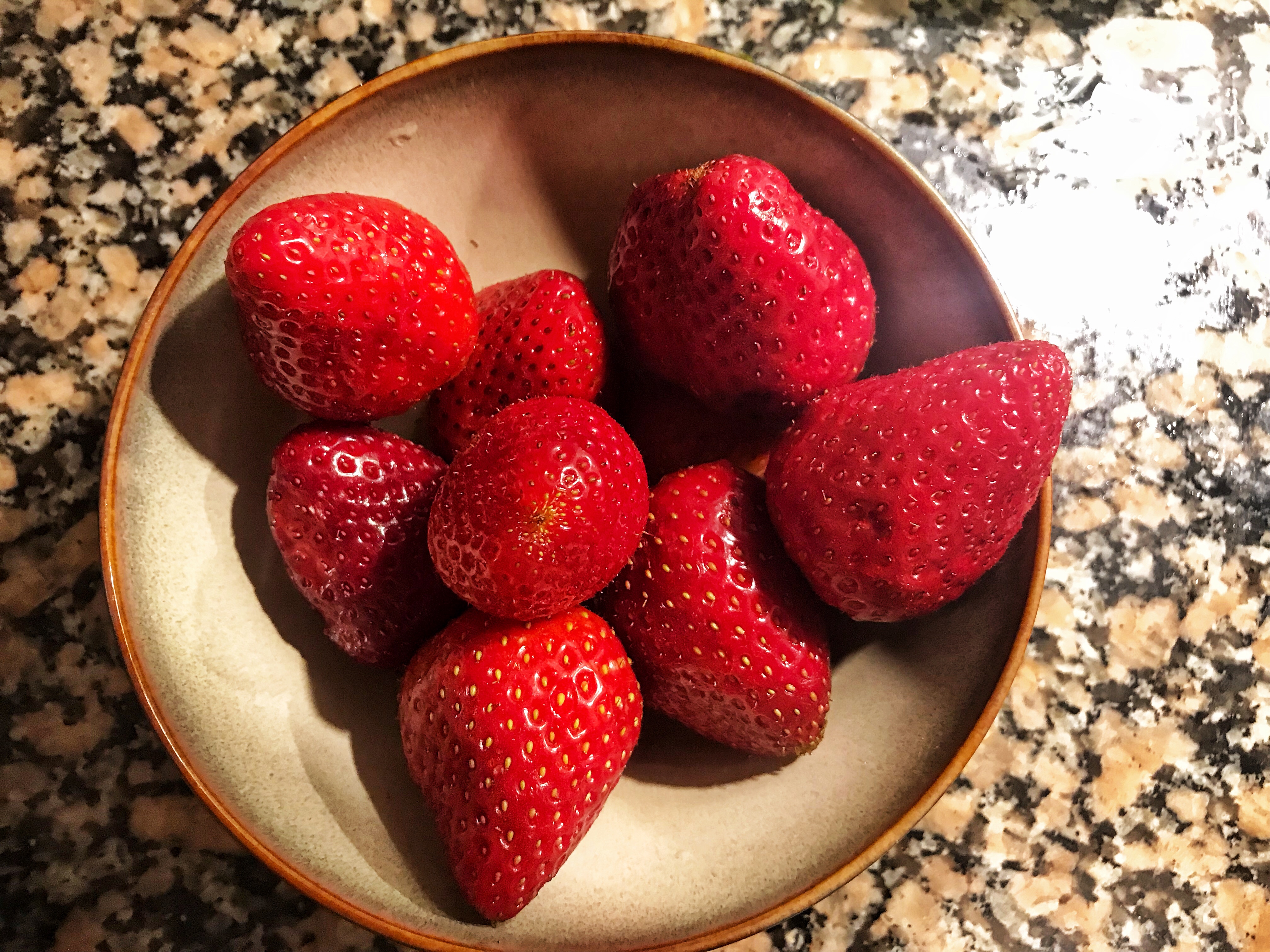 Vi åt årets första jordgubbar. ( Det är säsong här nu)