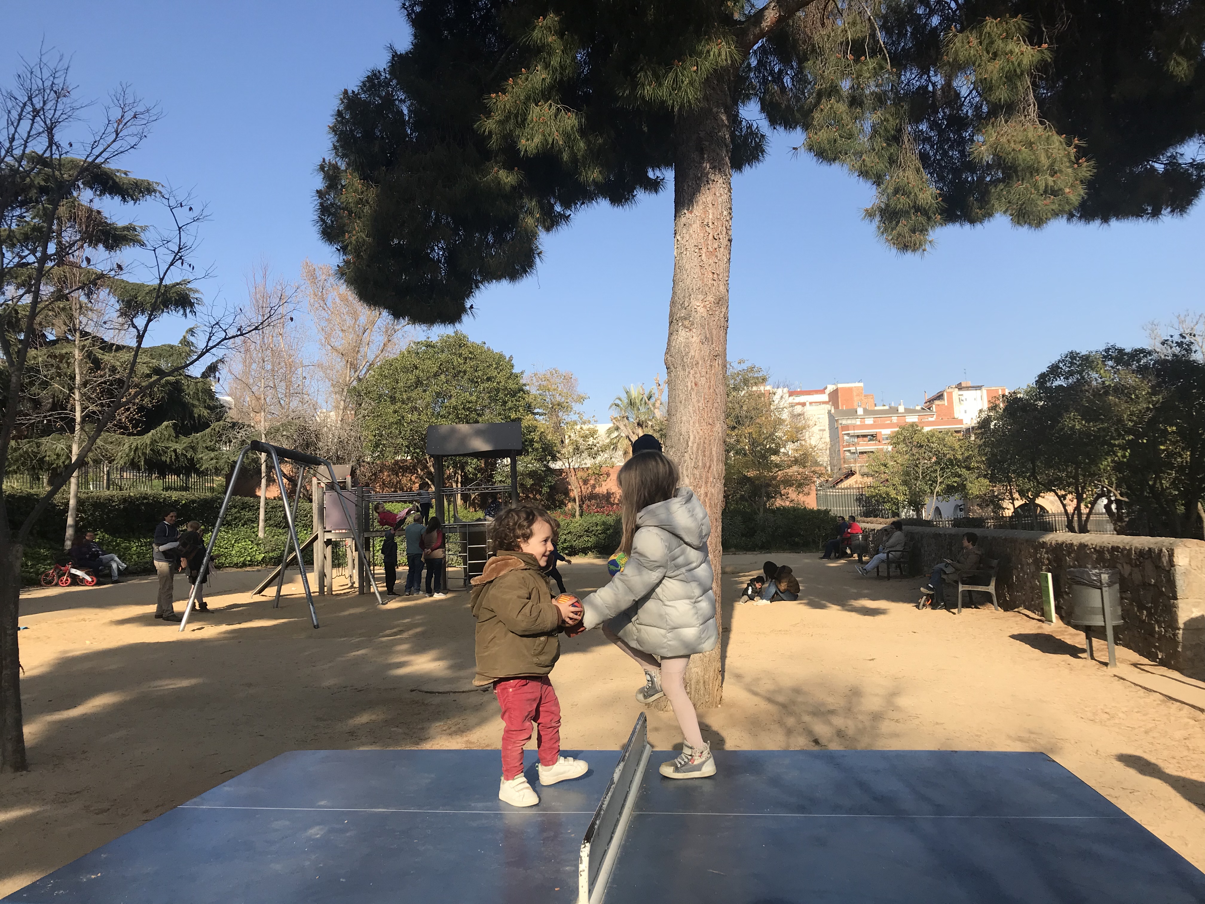 Jag tror inte riktigt pingisborden är tänkta för denna sport men Juni och Hjalmar gillade det.