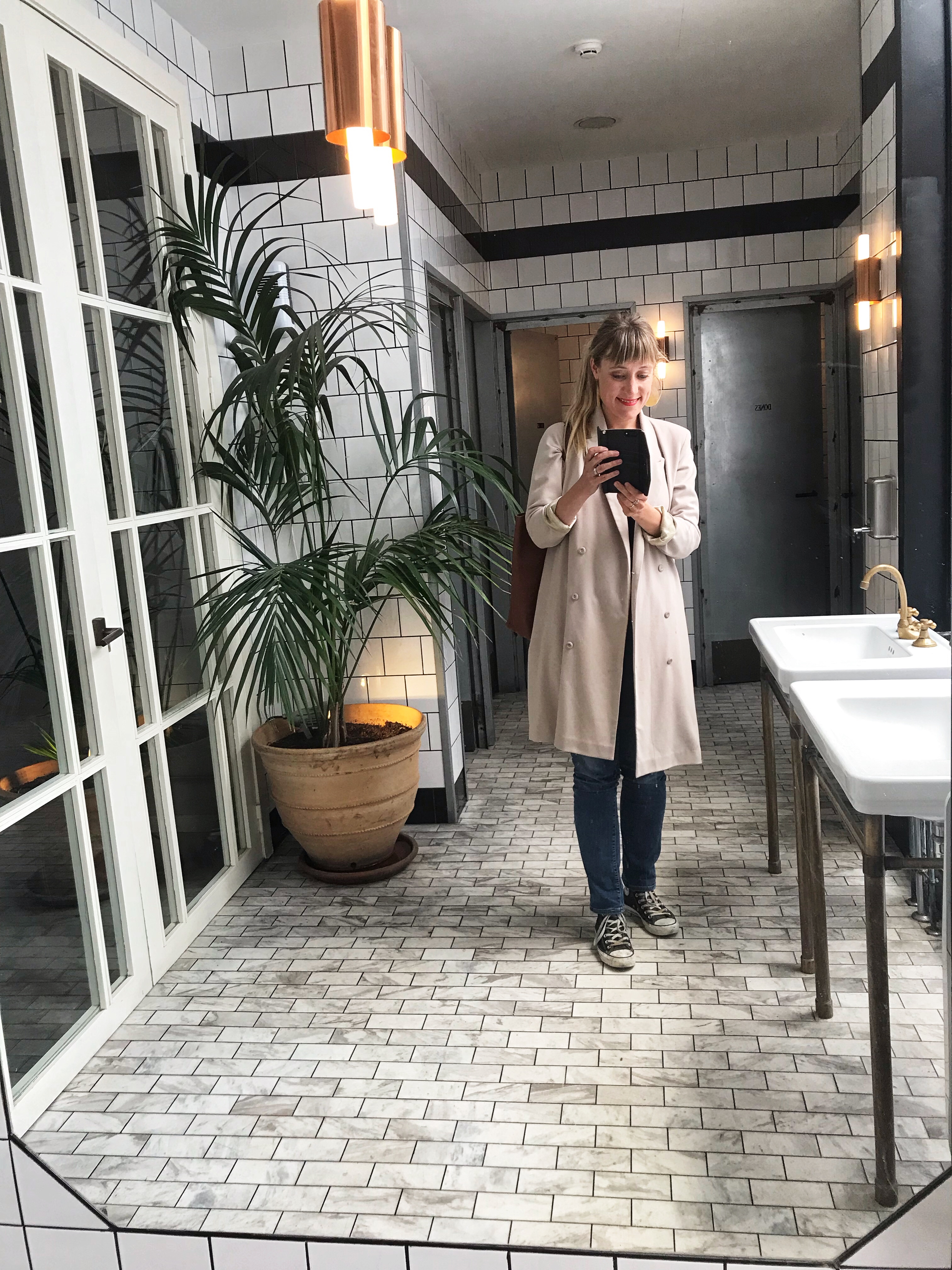 Här är jag på toaletten på restaurangen Flax & Kale som ni absolut måste spana in ifall ni kommer hit. De har så god mat och allt är vegetariskt och bra för hela din kropp. Dessutom är ju deras toalett så fin!