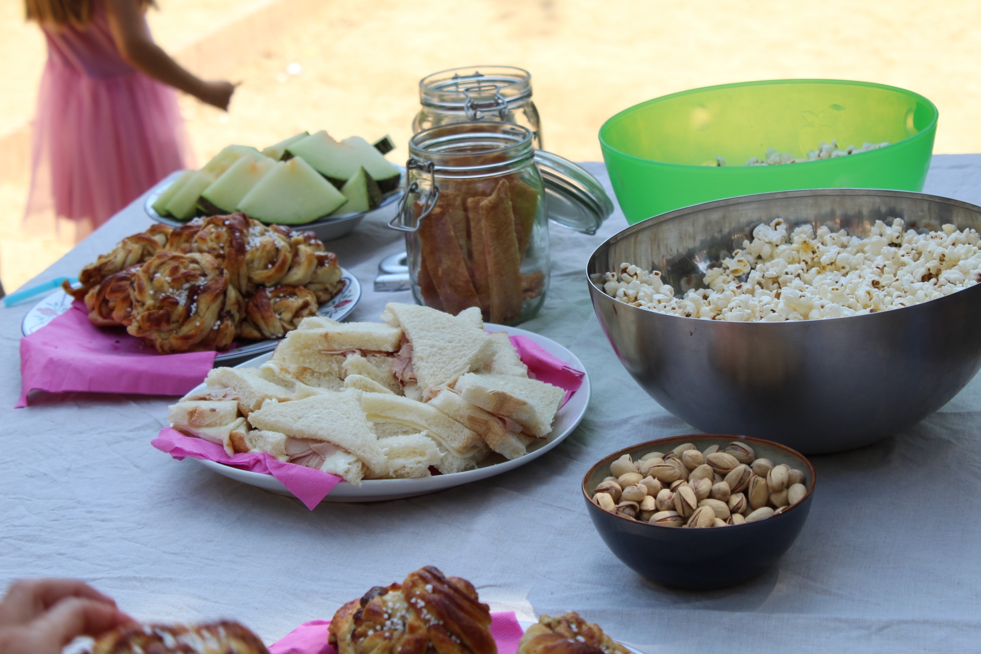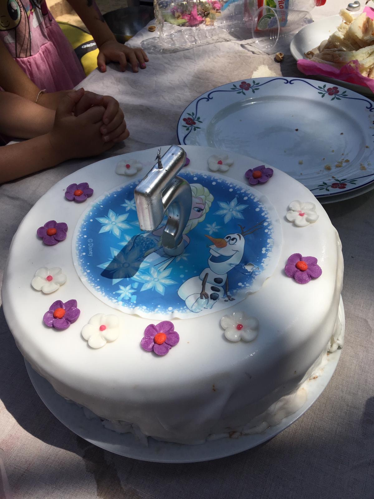 Det var så varmt ute och min stackars vän Camille som var höggravid höll på förgås i värmen. Jag och Juni hade bakat en frost-tårta och även den höll på smälta bort. Men det blev ändå ett fint kalas.