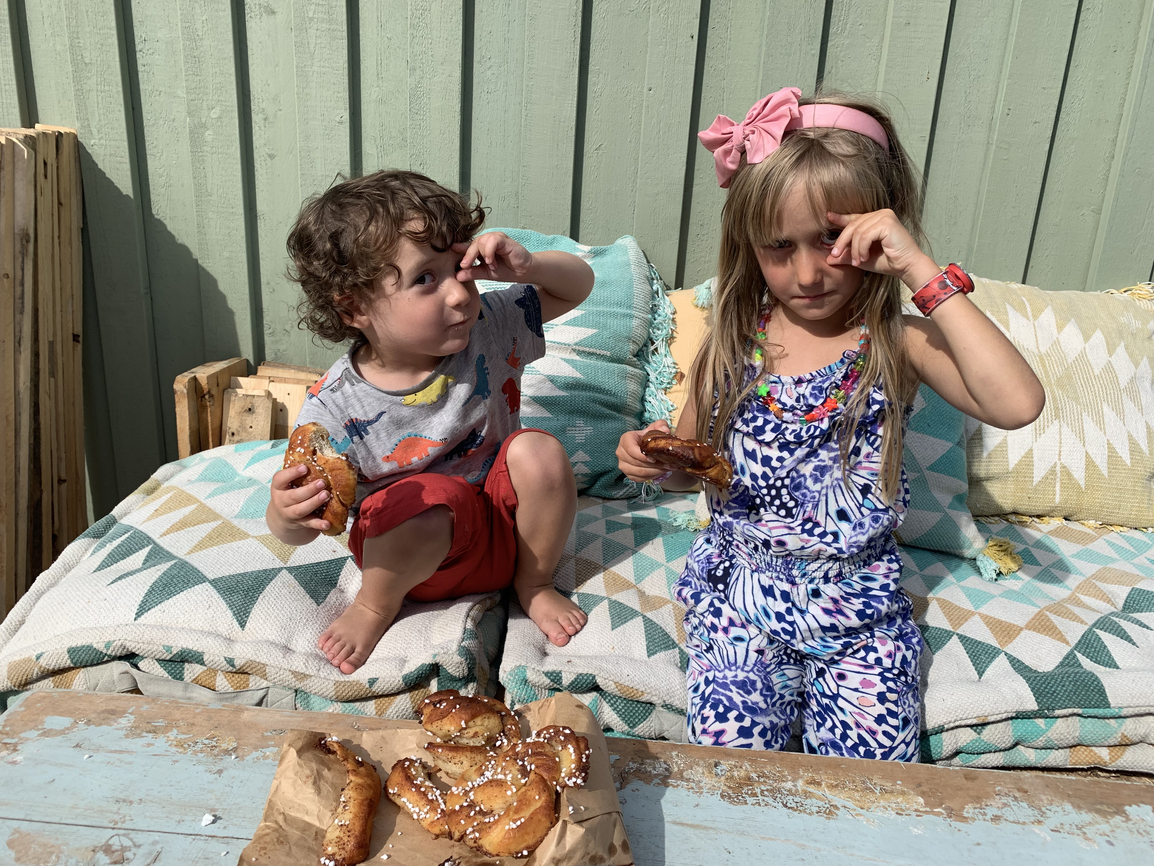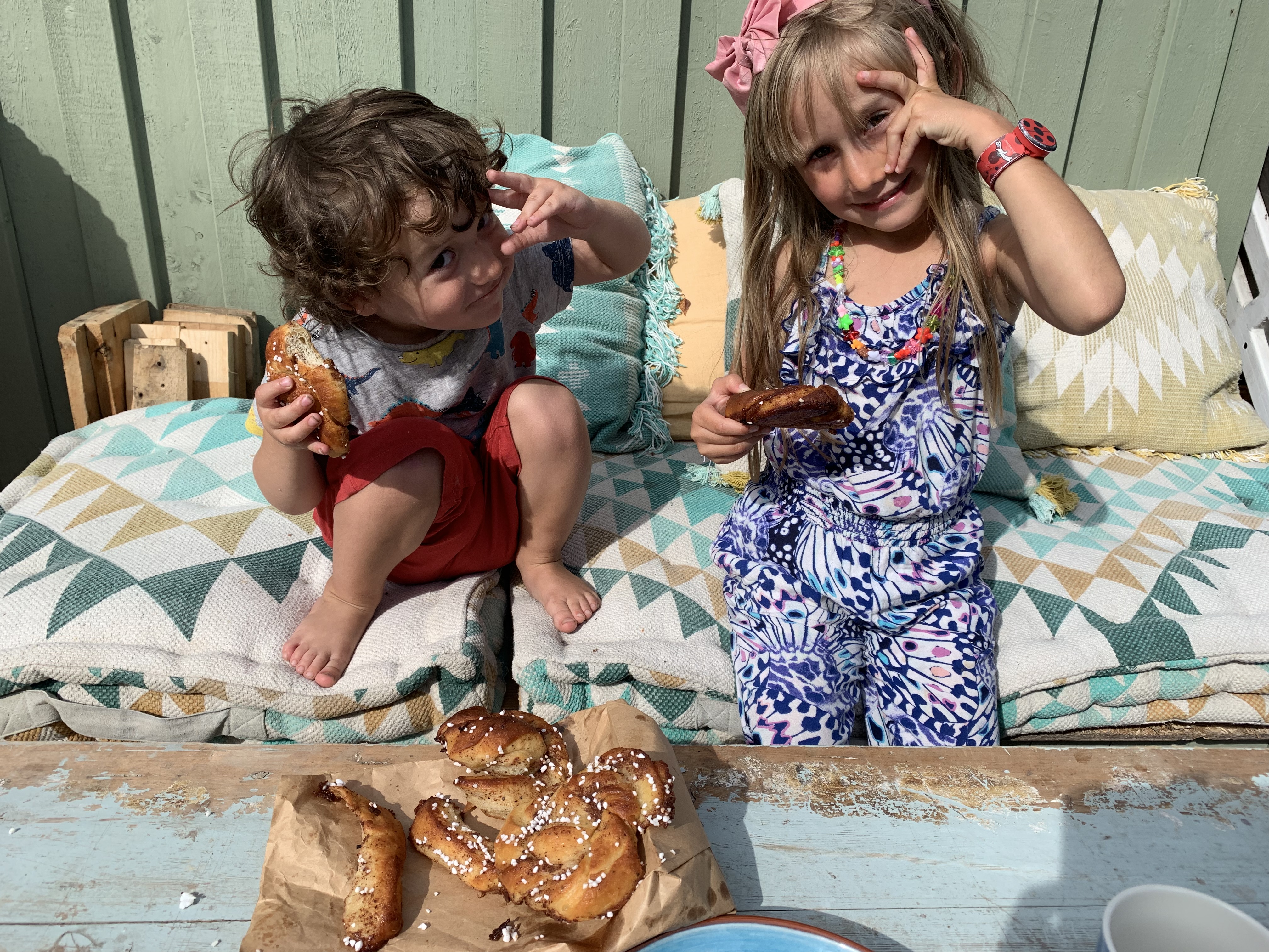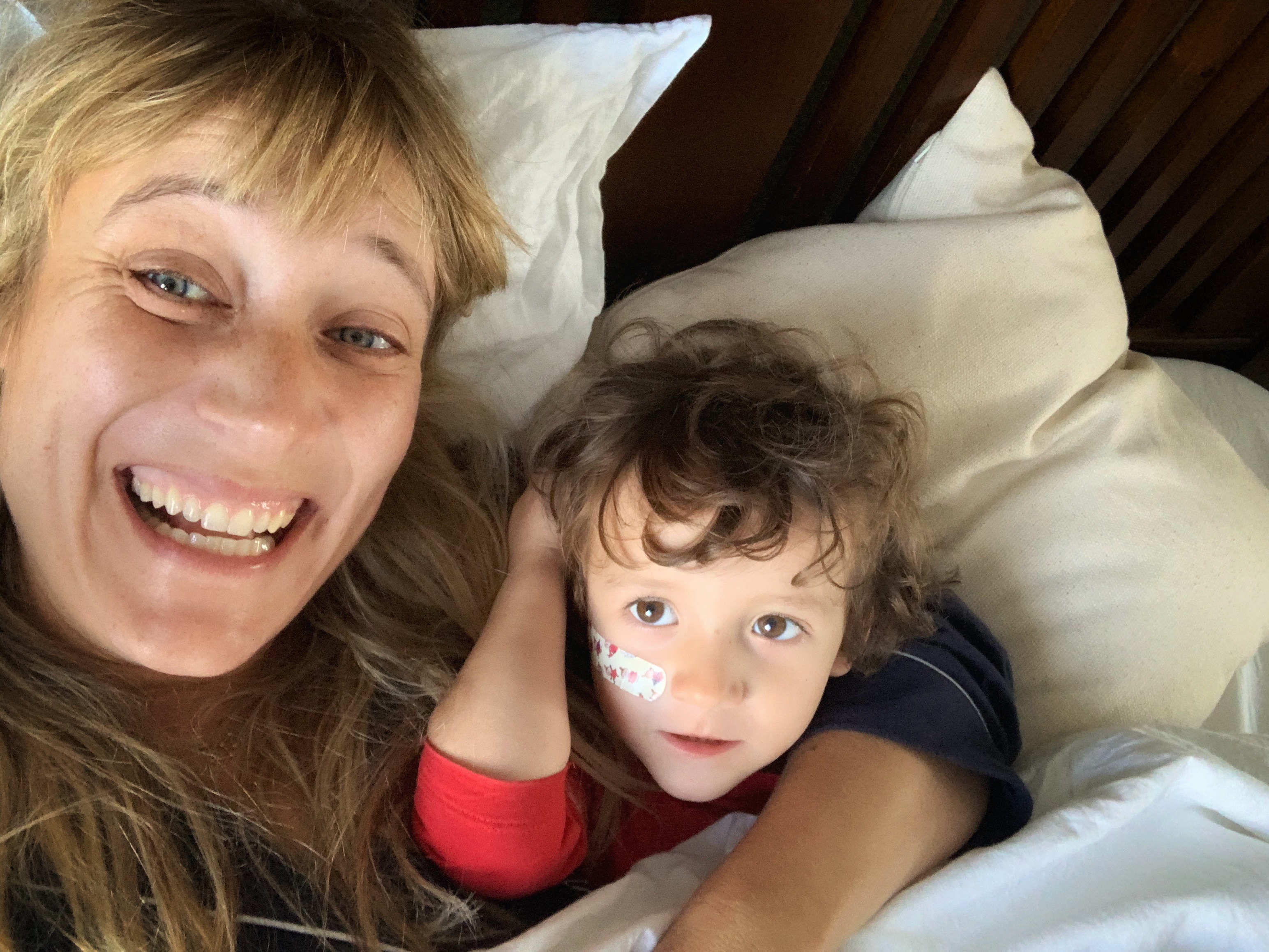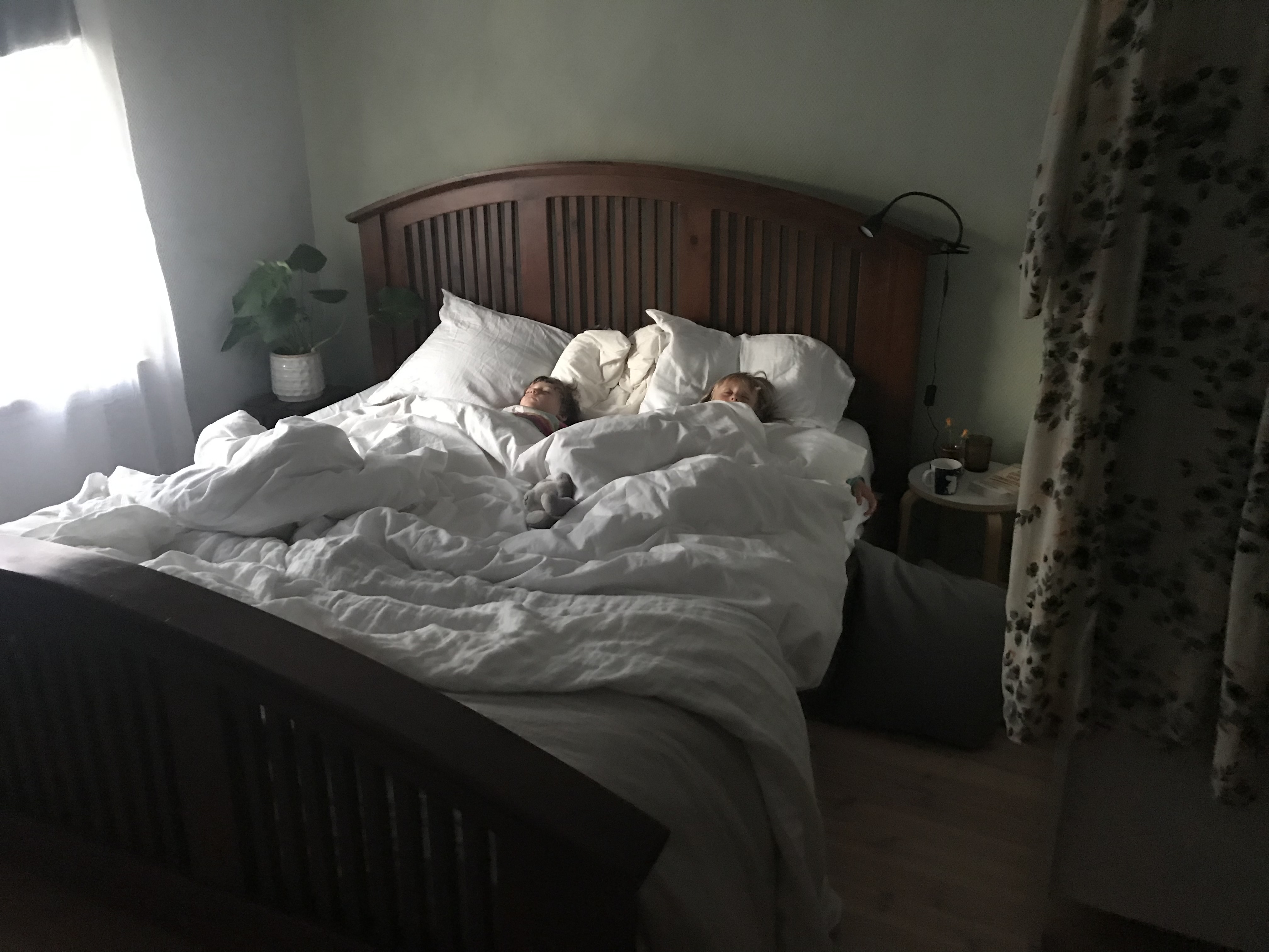 Och helgen. Speciellt om vi mest bara är och Hjalmar vill krypa ner i sängen, som här ovan, en gång till, efter frukost, och bara gosa. Det är också så mycket med det här att ha hus som vi njuter av just nu eftersom vi som familj aldrig haft det tidigare.