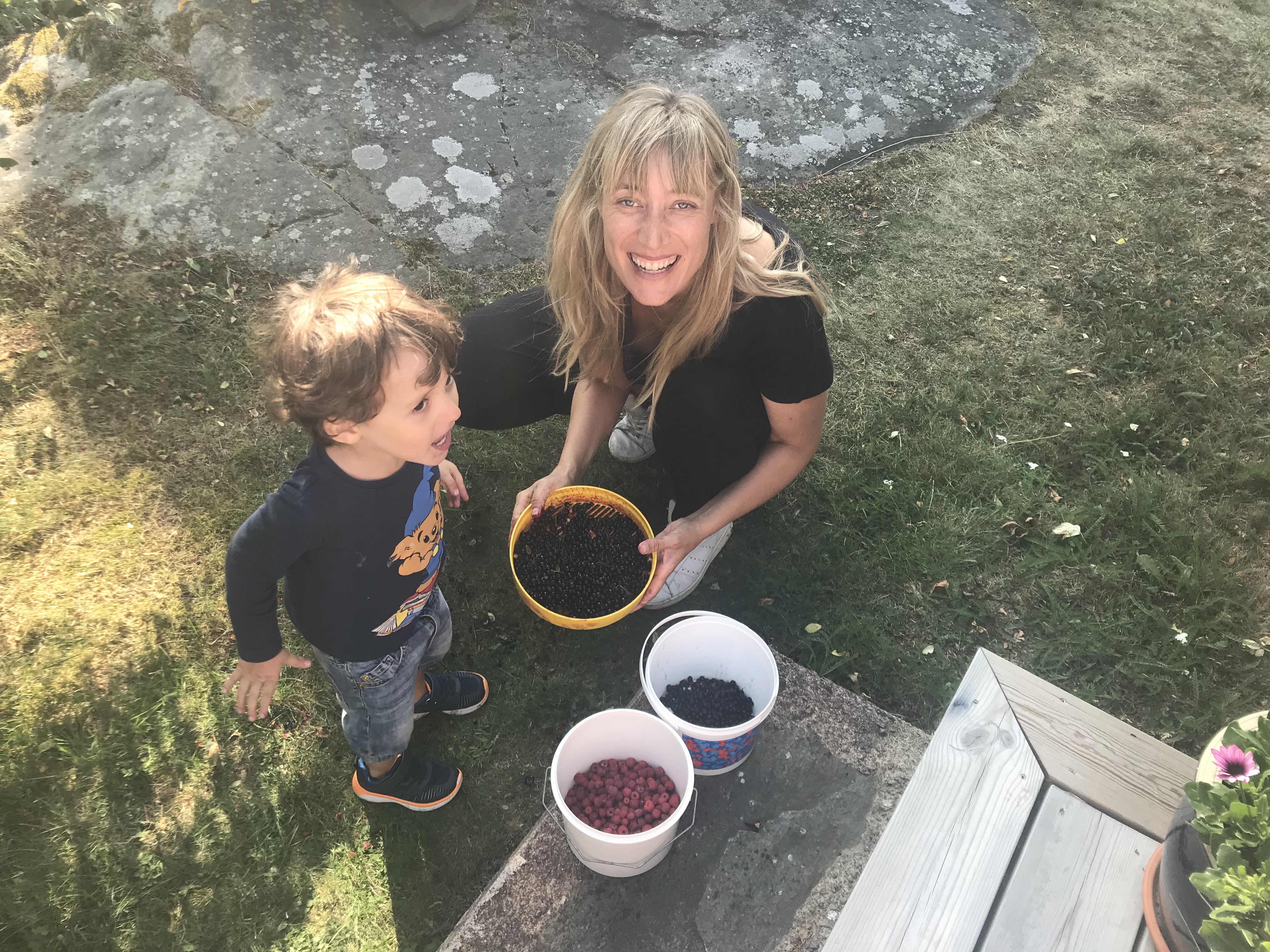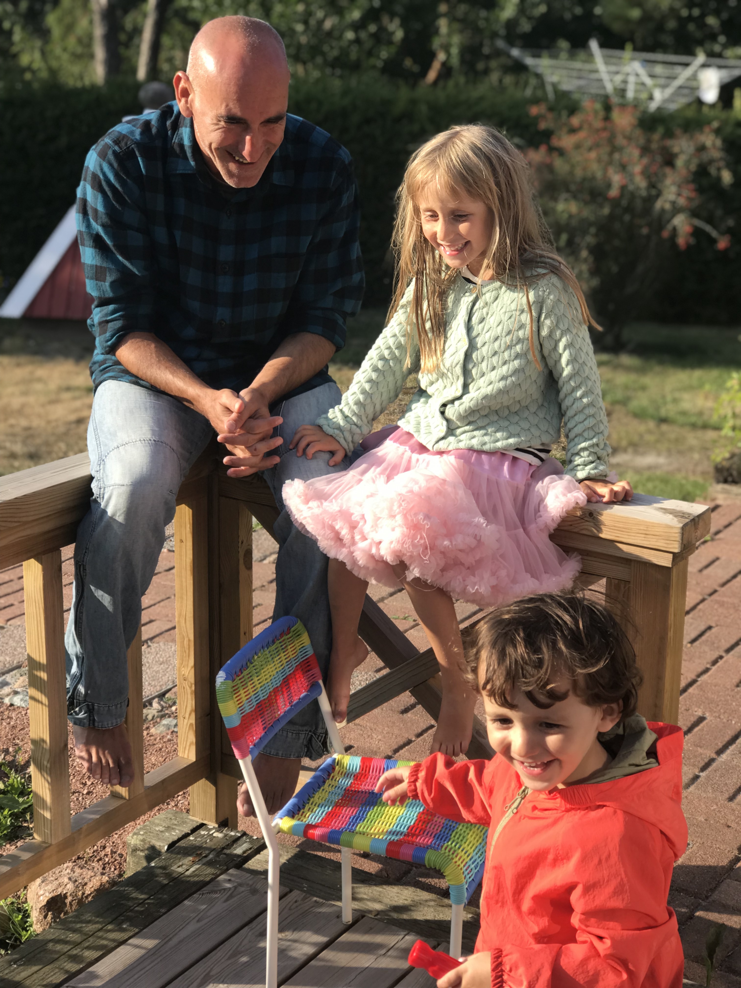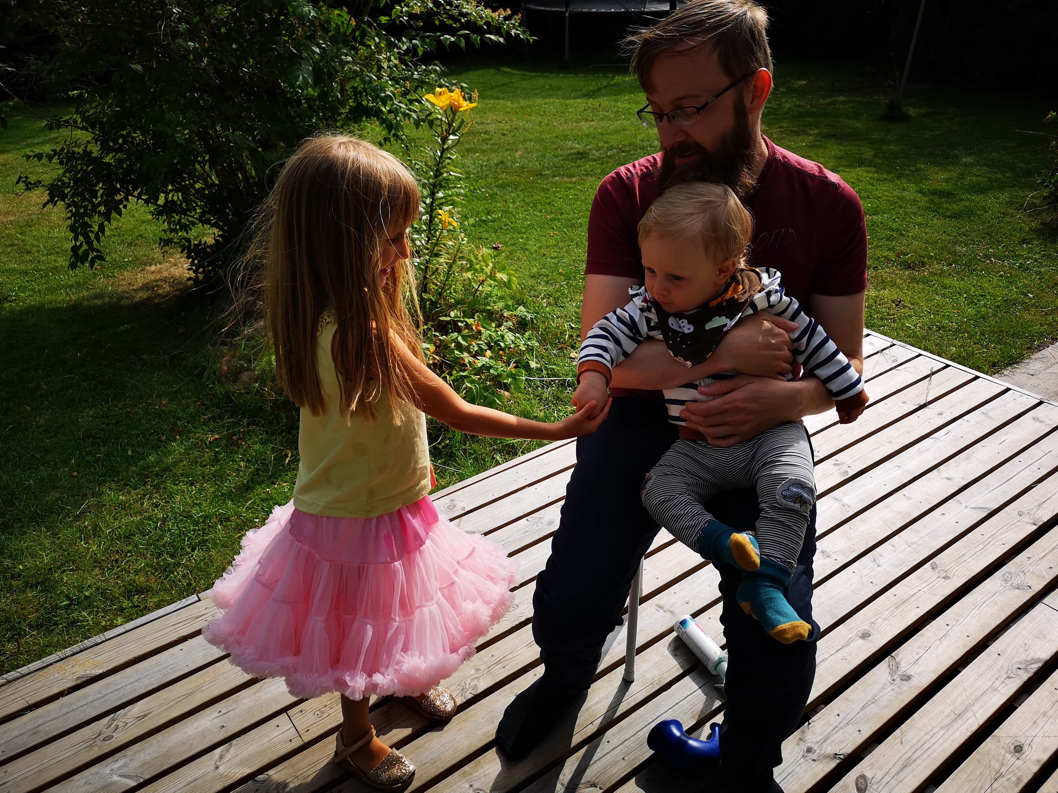 Allra lyckligast har vi nog varit över att ha en egen trädgård. För alla er som bott i lägenhet, vet hur bökigt det är att släpa ut vagn och barn och allt när man bara vill ut och få lite frisk luft. Jag njöt SÅ mycket i augusti över att kunna bara öppna dörren och kliva ut, ta en kaffe på altan medan barnen sprang omkring. Och Edu som aldrig i hela sitt liv bott i hus, tyckte det var så himla härligt!