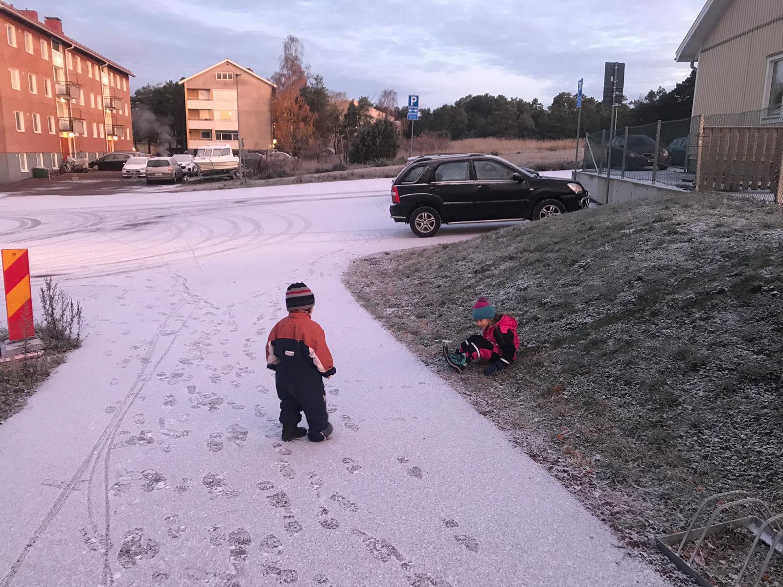 Själv vågade jag inte ta cykeln till jobb som jag hittills gjort hela hösten. Det blev en snabb promenad istället. Det var skönt det med och gick fortare än jag trodde