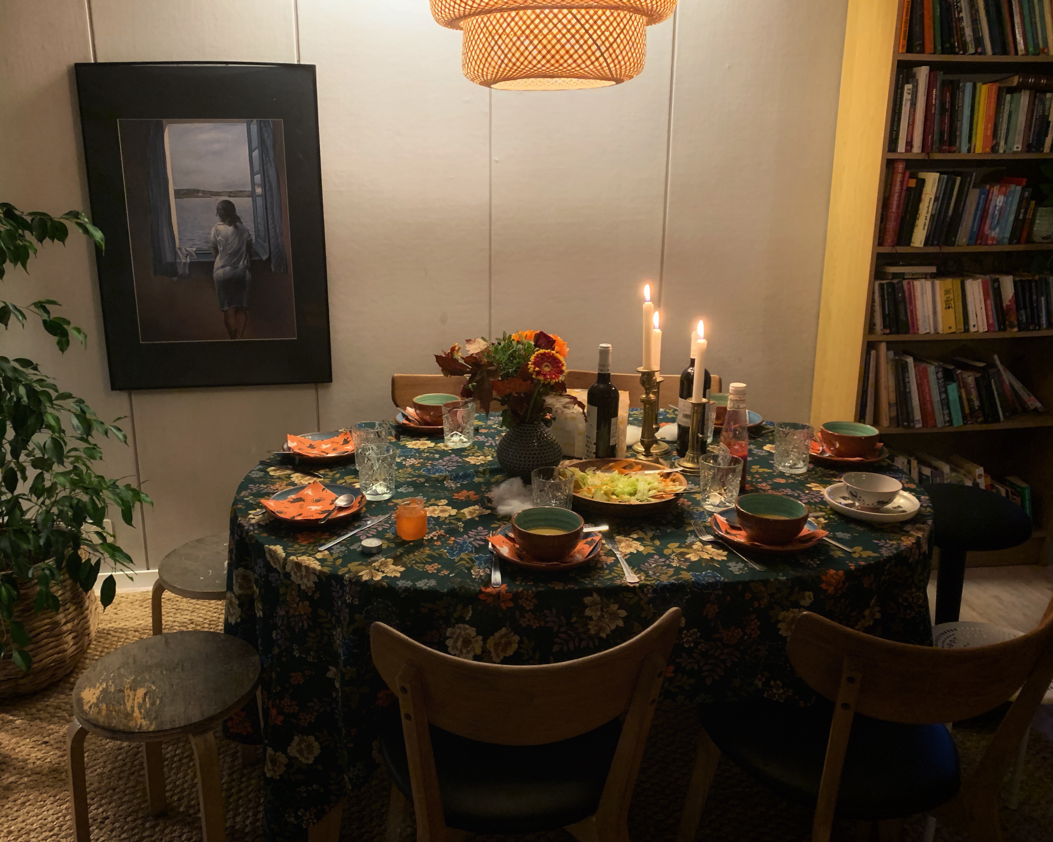 Förra veckan hade jag familjen hem på Halloween-middag. Jag lagade läskig korv och het pumpa-soppa. Sedan rostade kastanjer såsom man gör den här tiden på året i Barcelona. Så gott till lite rött vin och getost.