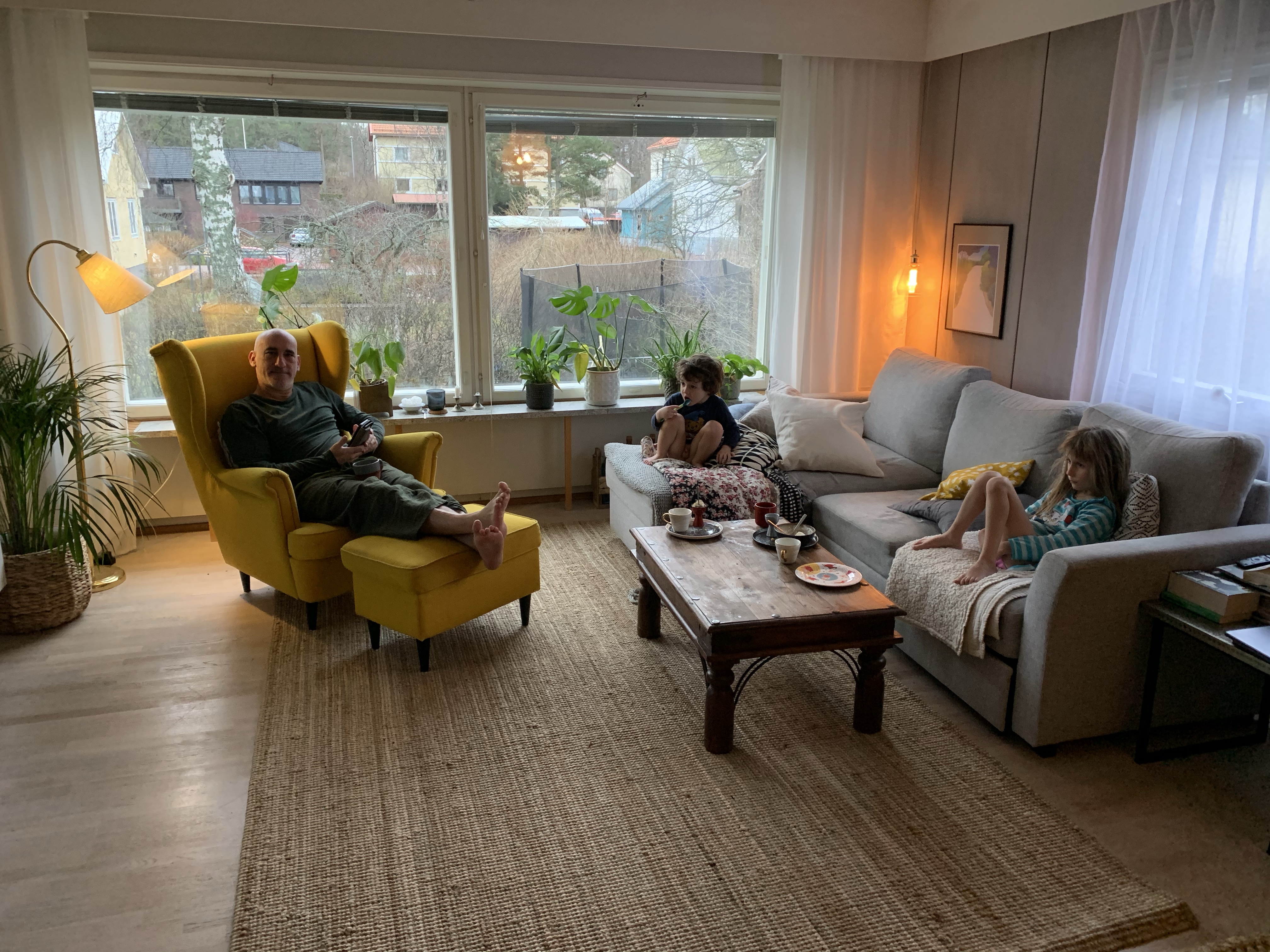 Sedan på lördagen hade vi en lugn hänga-hemma-i-soffan-dag. Juni börjar lära sig cykla och vill öva hela tiden och eftersom det inte finns någon snö i år går det ju bra. Vi var därför utomhus en hel del också.