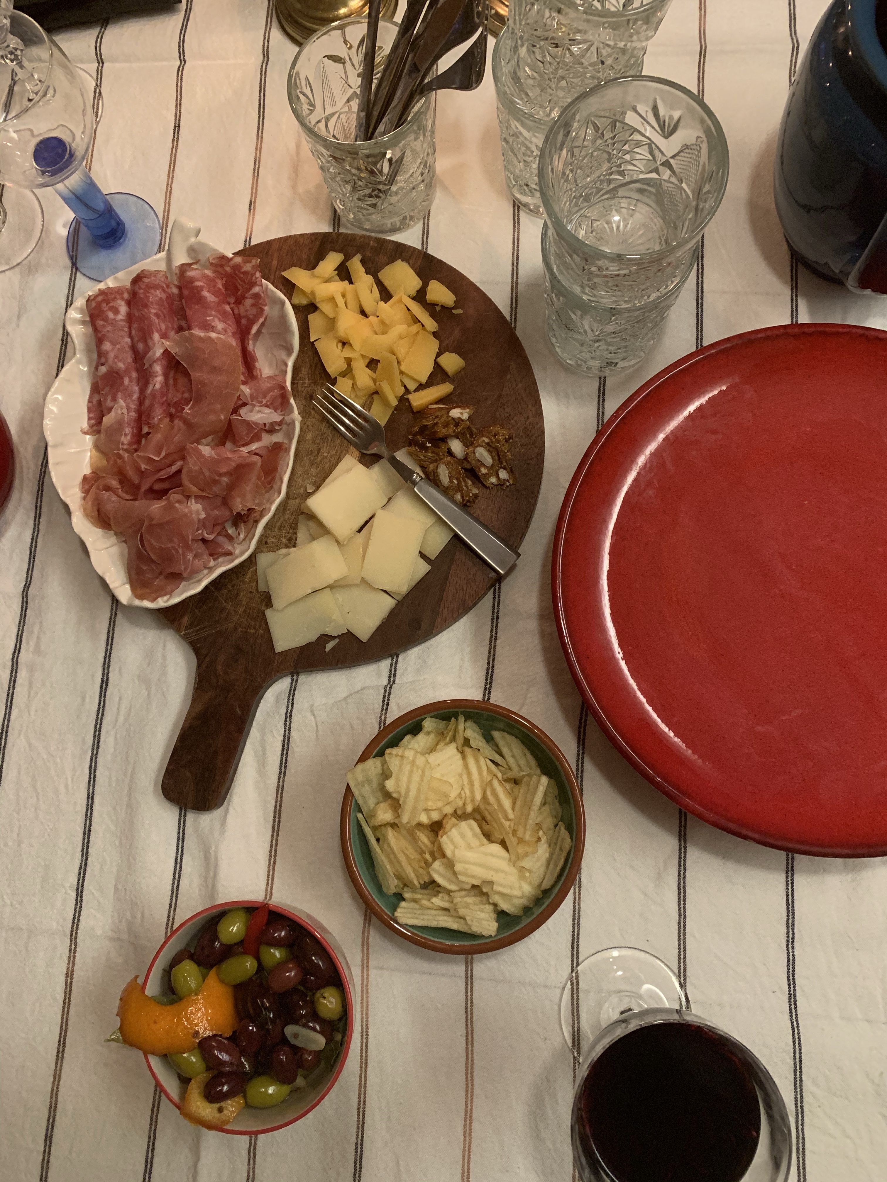 Och sen på kvällen hade vi middag igen. Min kompis Emelie och hennes kille Mark kom över och det var så himla fint att se dem. Edu lagade spanska köttbullar och det blev lite tapas denna gång också.