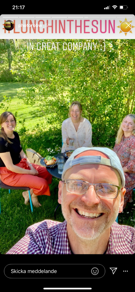 Jag jobbar fortfarande hemifrån men nu är det bara jag. Edu är tillbaka på sitt kontor och barnen på dagis. Igår var jag till med mina fina kollegor till Eckerö där Mari bor och åt lunch. Så roligt att träffas i riktiga livet igen. Och det var så himla somrigt att sitta ute i hennes trädgård och äta lunch och höra hur fåglarna kvittrade. Den känslan av sommar vill jag försöka ha i mig varje dag i mig.
